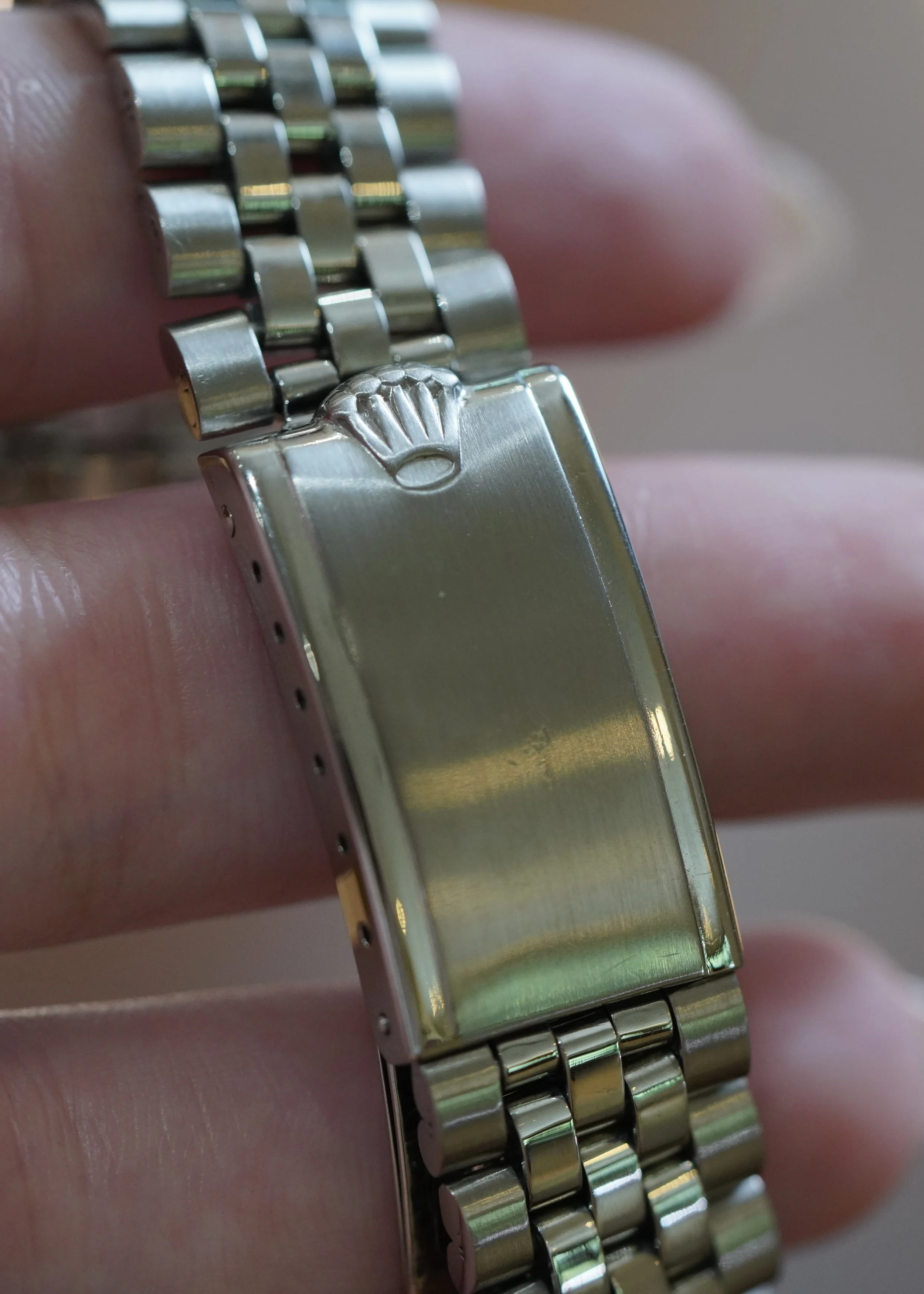 This Rolex Jubulee bracelet is a very nice example. The bracelet would look great on a period correct Datejust. It comes with 55 end links and is approximately 6 inches in length. It dates to 1964.