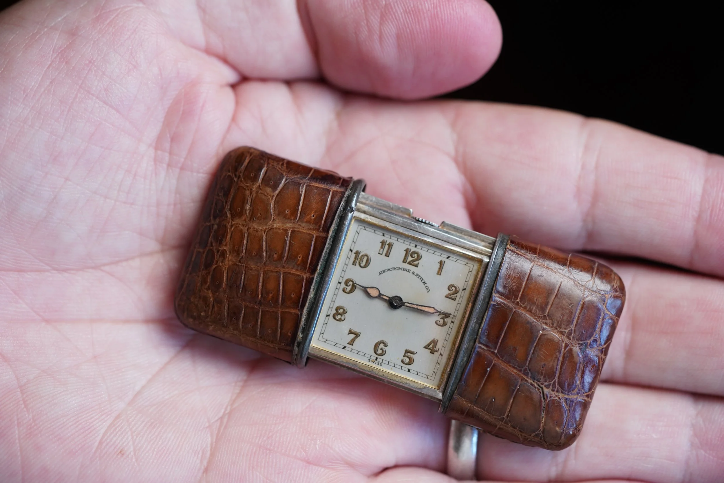 The Movado Ermeto “purse watch” is one of the coolest horological accessories. These watches are super interesting and have some great variations in both material on the sterling silver cases, as well as dial variants and complications. This example is a fantastic example from Abercrombie & Fitch. The watch dates to the 1940s.