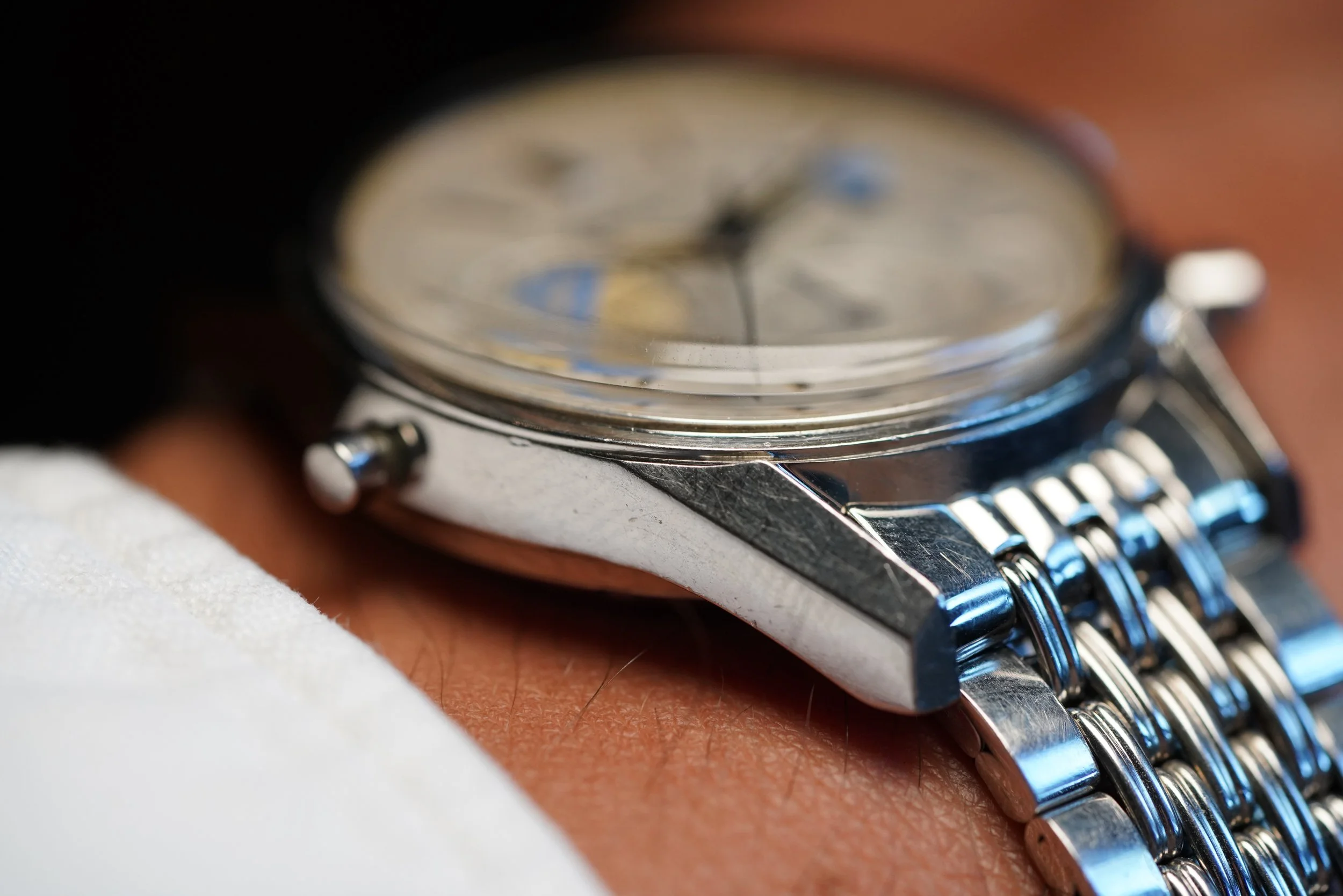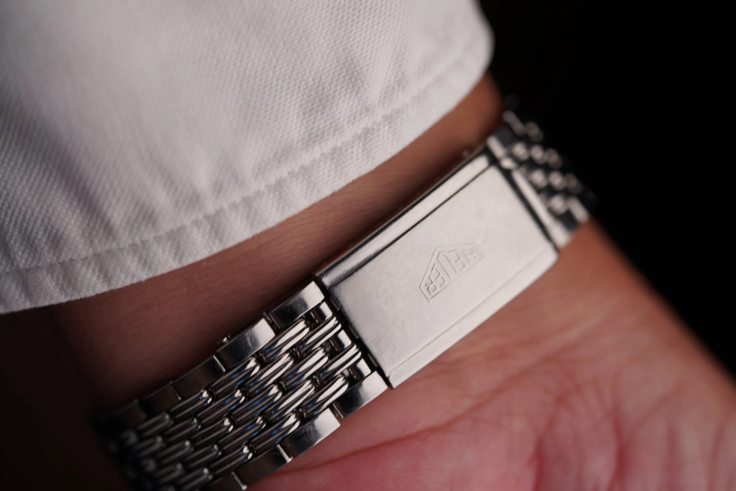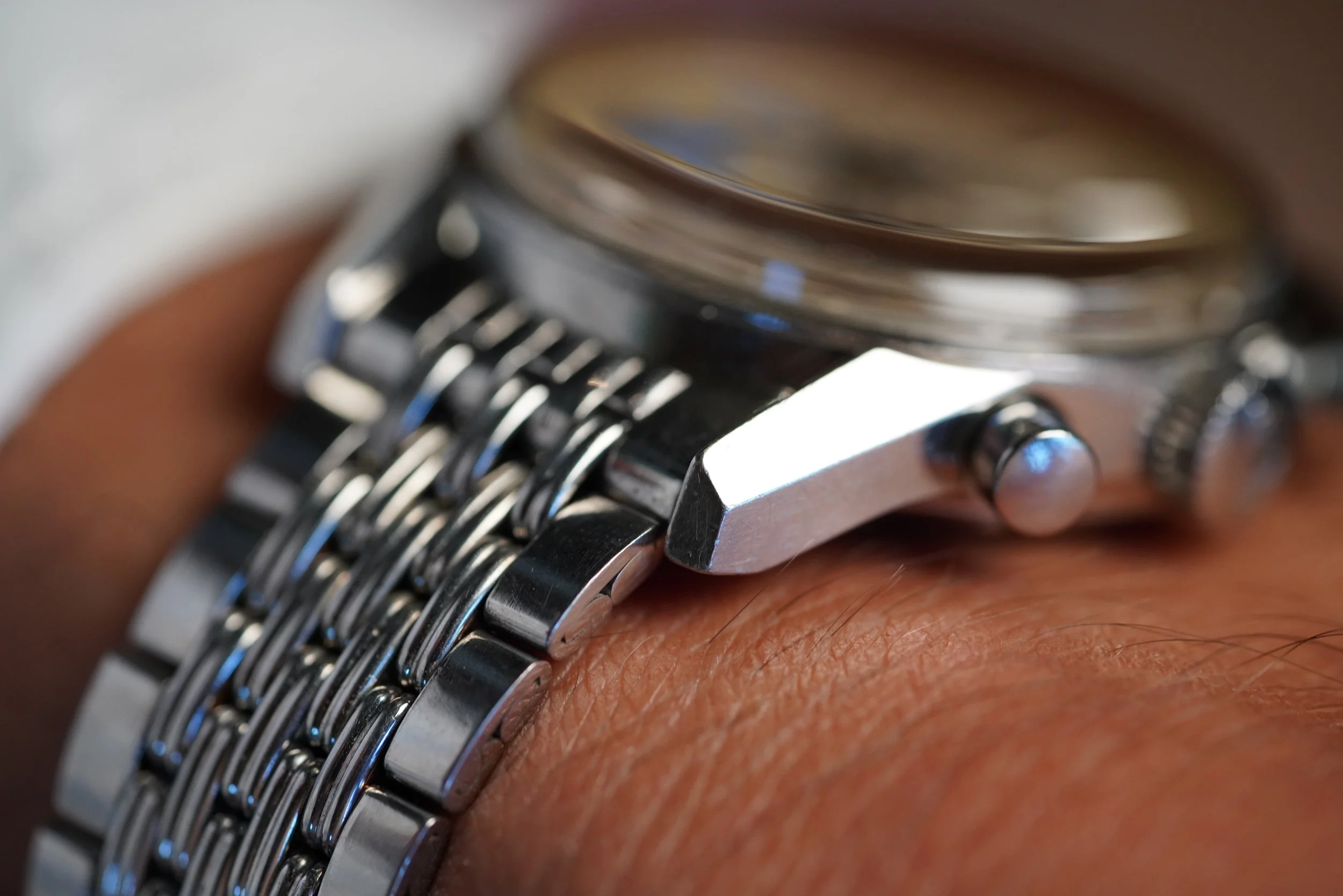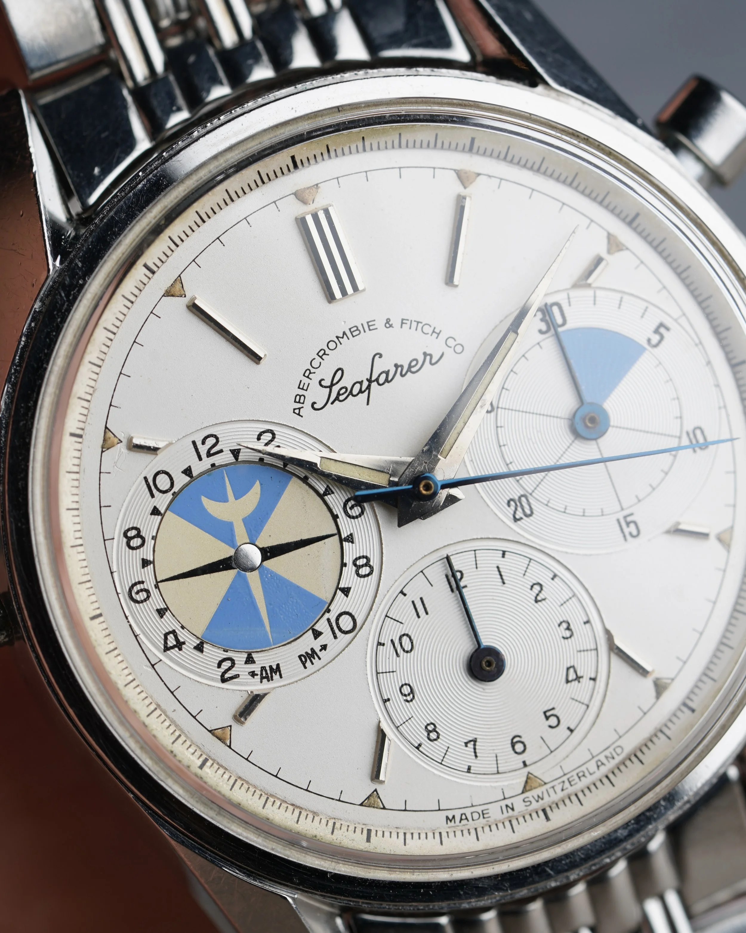 I’m thrilled to offer exceptional vintage watches that I personally would love to own. This Abercrombie & Fitch reference 2447SF is just out of this world. These watches are extremely rare, and only around 20 are known. It is a very early example dating to circa 1965 with a non T dial. It is paired on a later Gay Frères bracelet for Heuer which looks brilliant. The case is unpolished and in incredible condition.