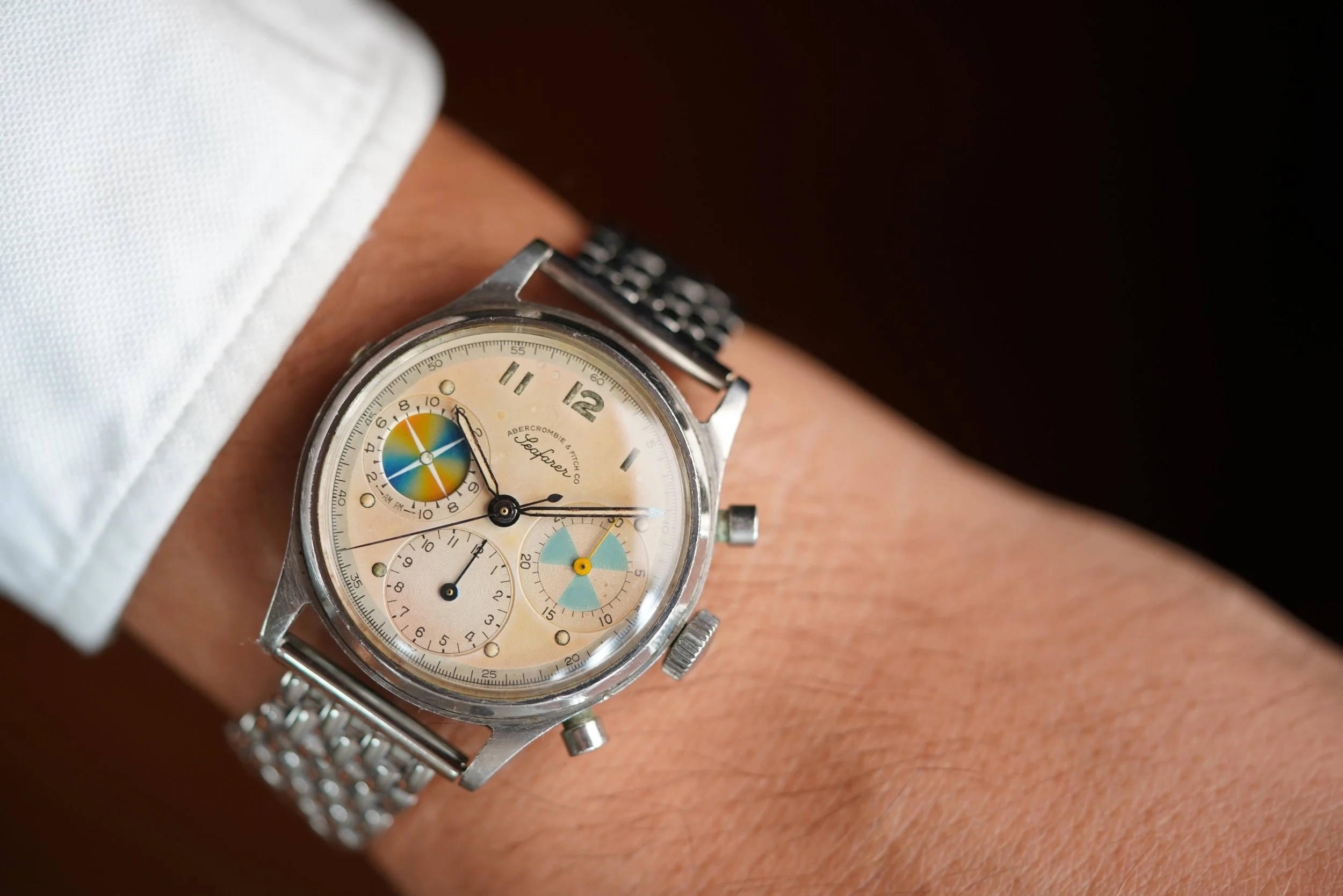 Before Abercrombie & Fitch was the “middle of the mall store” as Jeff Stein coined it, the company was the preeminent destination for outdoor sporting apparel. Among the high-quality goods you would expect to find were the incredible sports watches by Heuer. The most desirable models from the retailer would be the Seafarer.