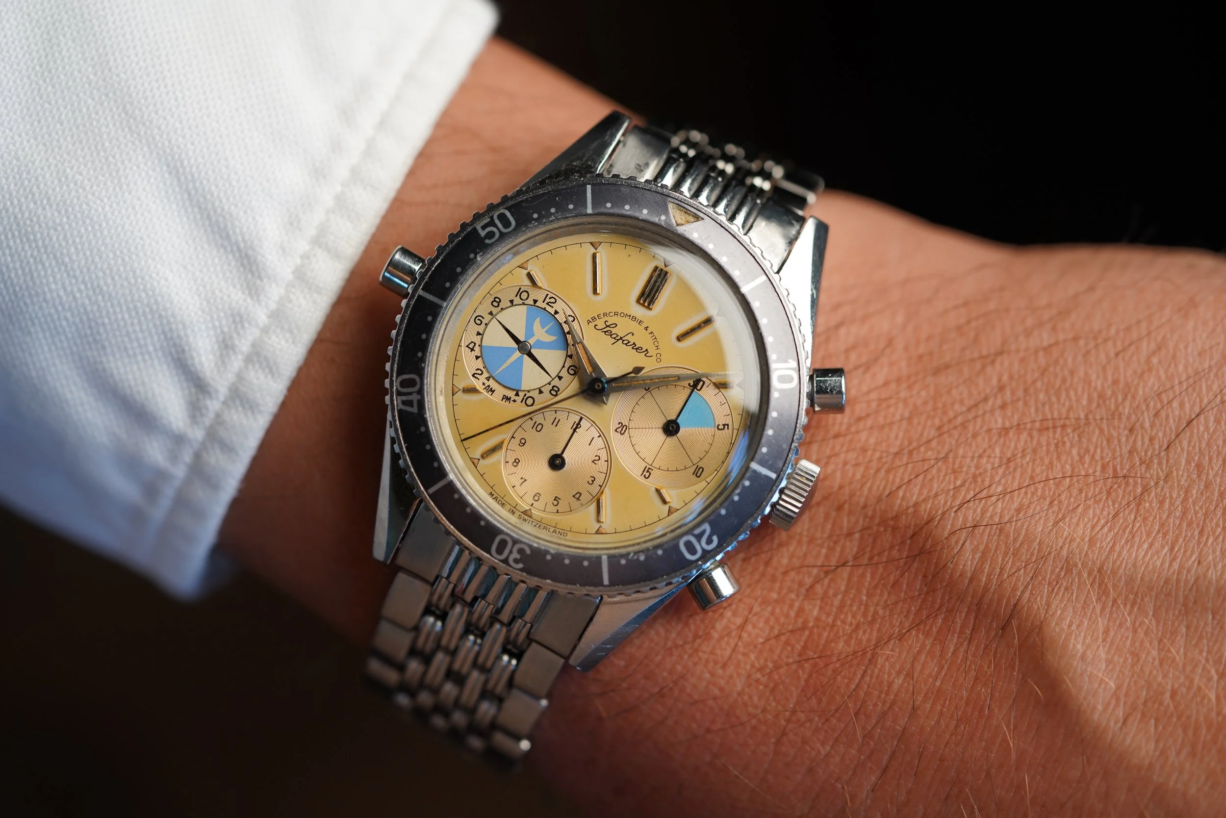 The Heuer Autavia is recognized by collectors as one of the great sports chronographs of the 1960s. Even rarer than the Heuer Autavia reference 2446 are the incredible Abercrombie & Fitch Seafarer reference 2446 variants.