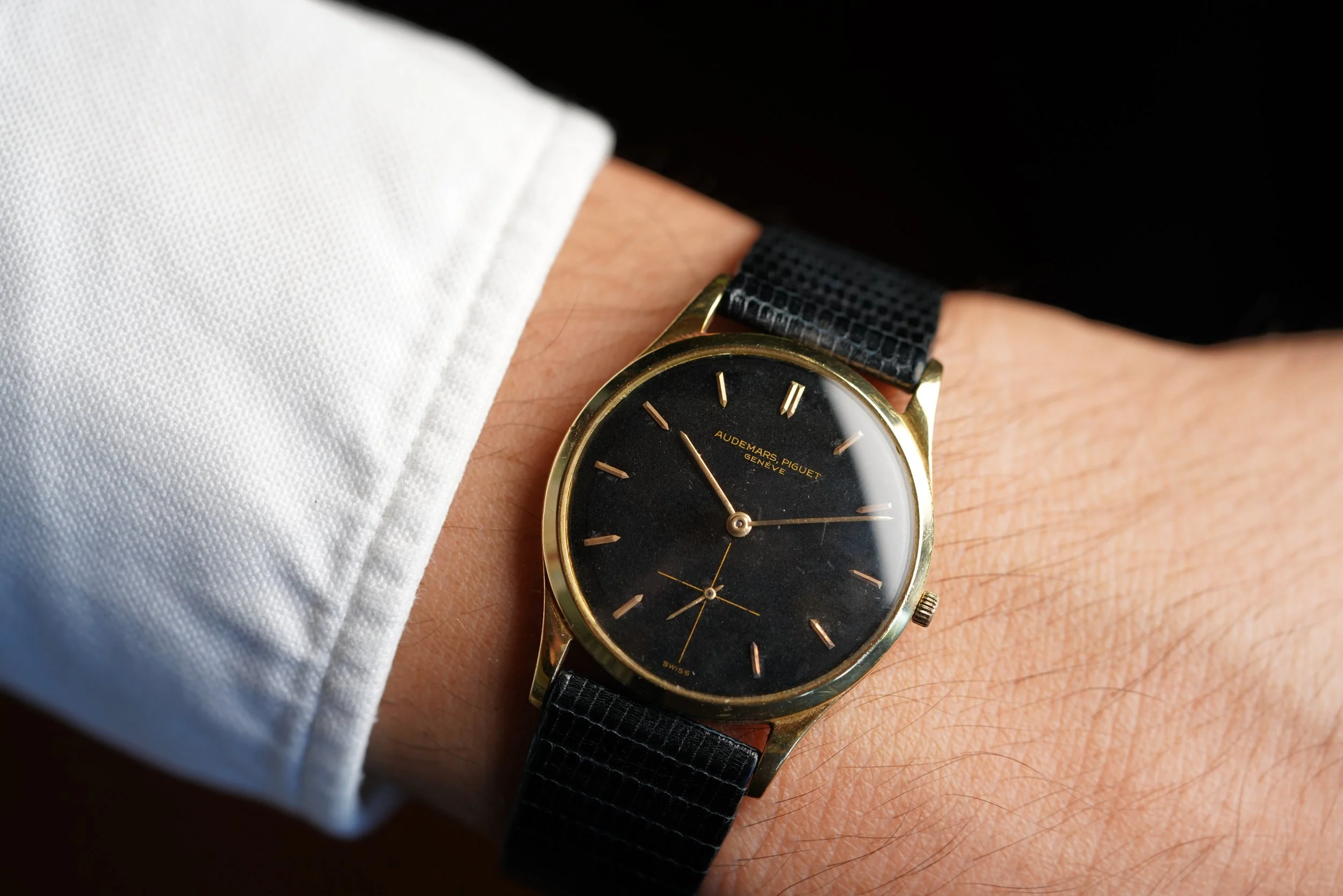 Audemars Piguet Black Dial Time Only Model in 18K Yellow Gold Unpolished