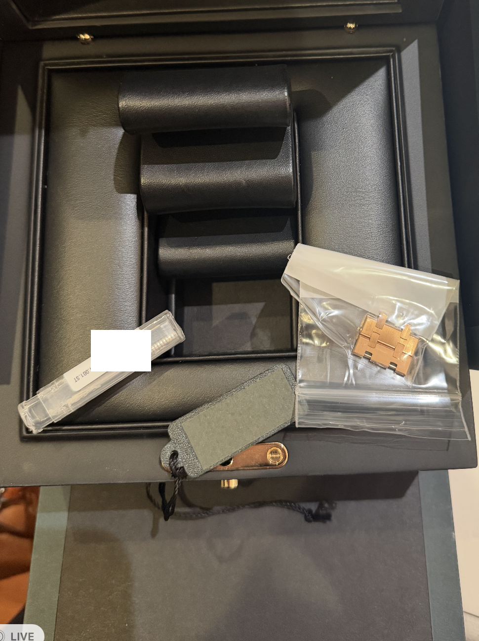 The watch comes with a box and papers. We do not know the service history but it is running well. We believe the watch dates to 2022.
