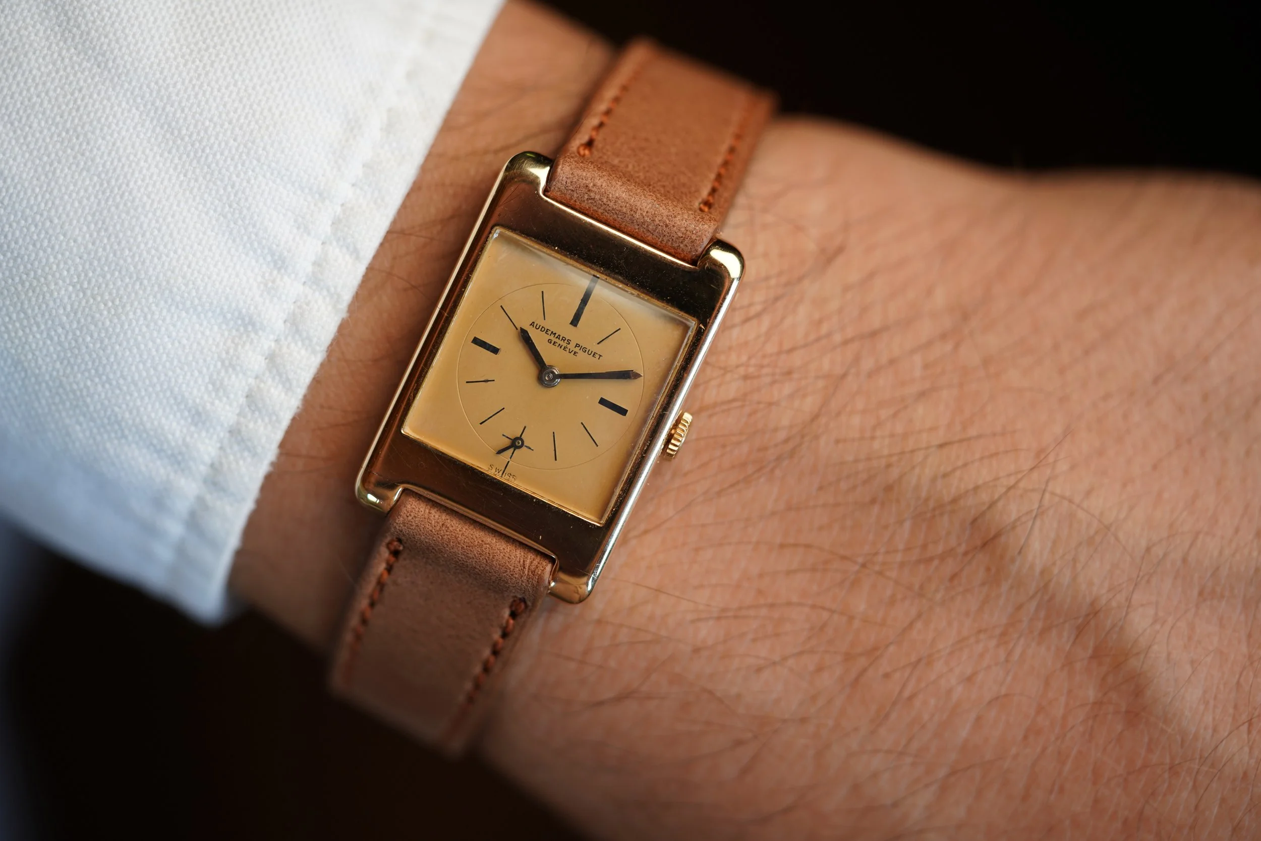 This Audemars Piguet is a beautiful timepiece dating to the 1930s-1940s. It measures 22mm in diameter by 33mm in length. The 18k rose gold case has been polished. It is an elegant manual wind timepiece which appears to be similar to the calibre 9’90. It features a beautiful rose dial.