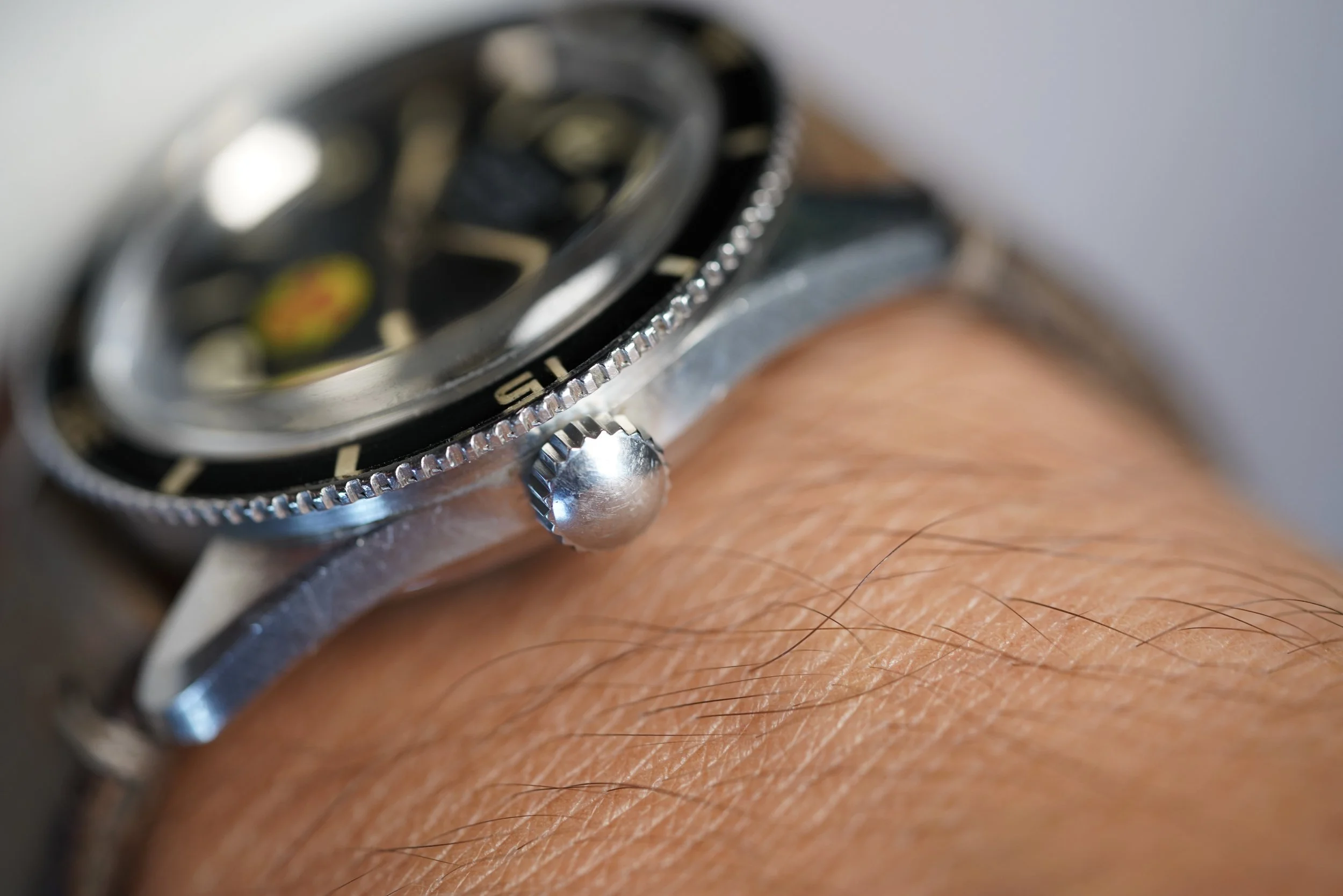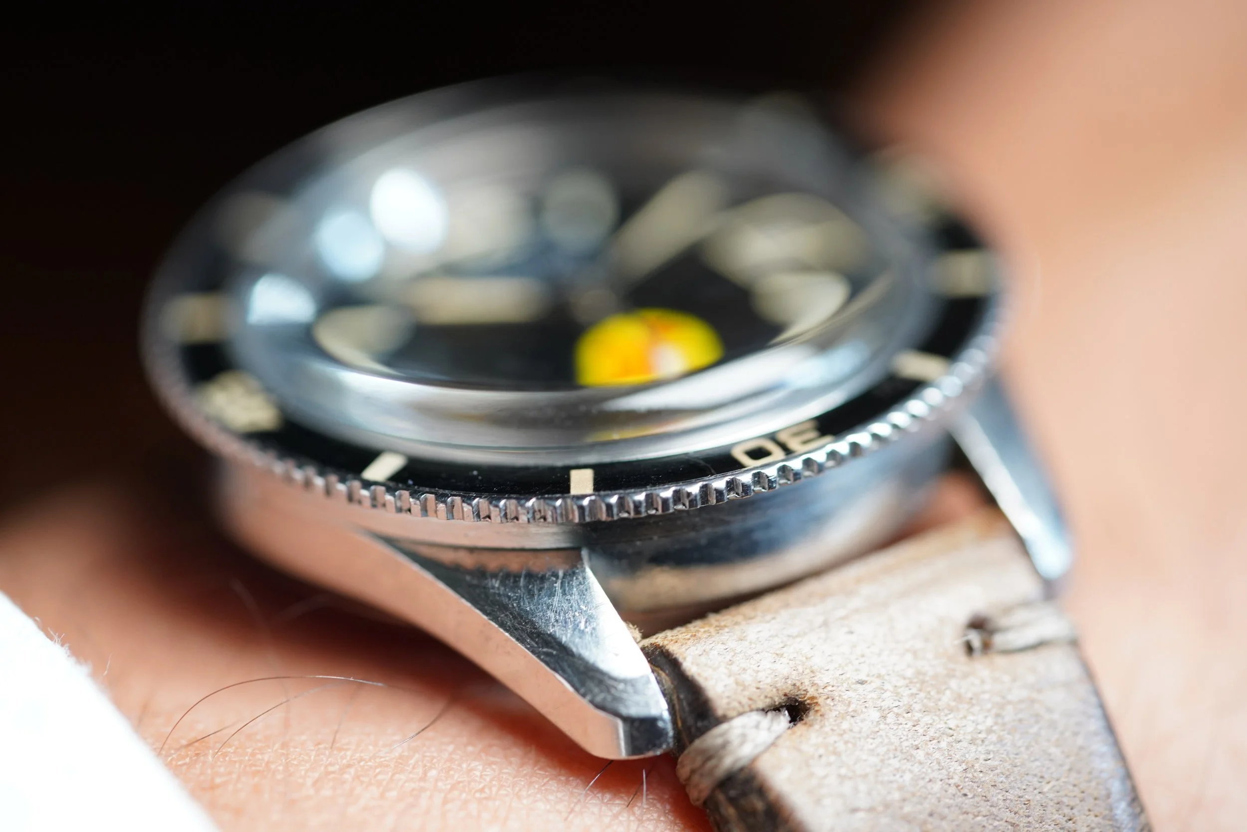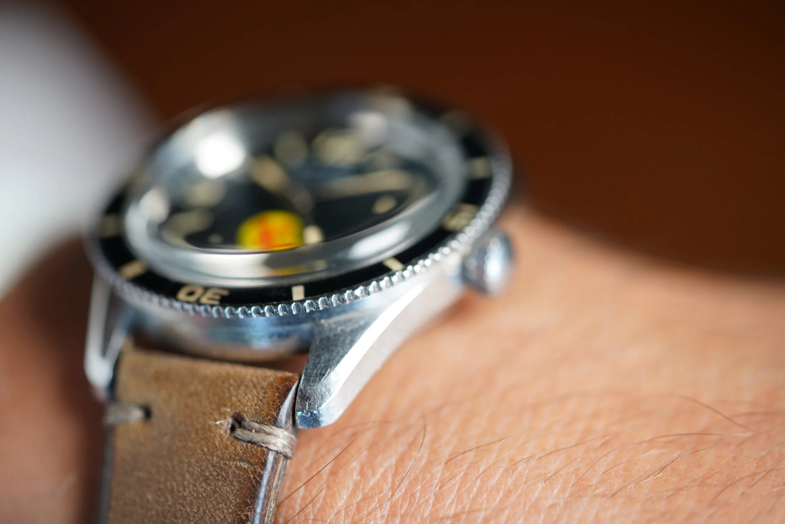 This Blancpain Aqua Lung automatic calendar is an extremely cool watch. The glossy dial features a “No Radiations” logo at 6 o’clock. The case measures 37mm in diameter and approximately 43mm lug-to-lug. The case appears to be unpolished.