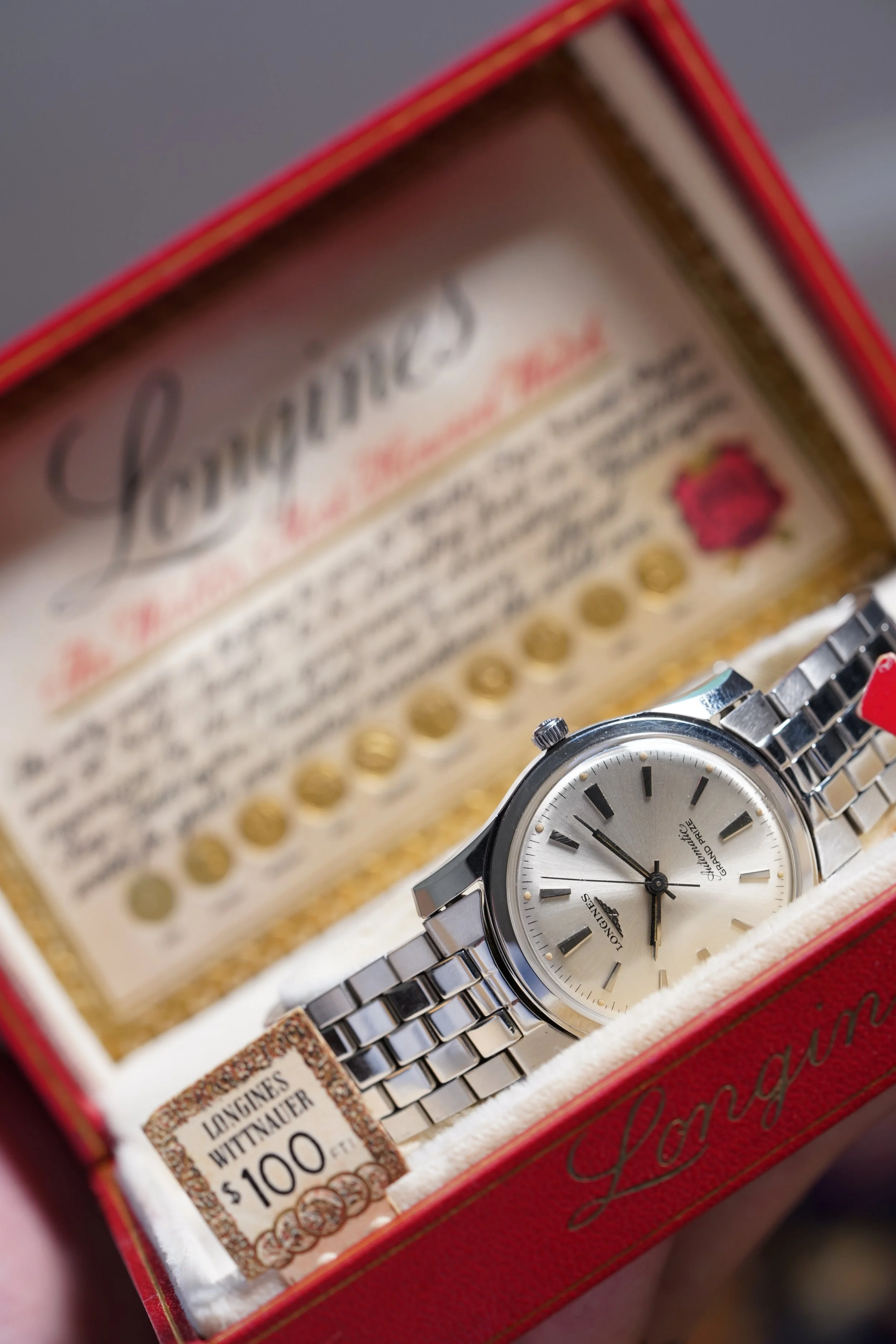 Vintage 1960s Longines Time-Only Automatic Stainless Steel Watch, Ref. No. 2554-340 “Full Set”