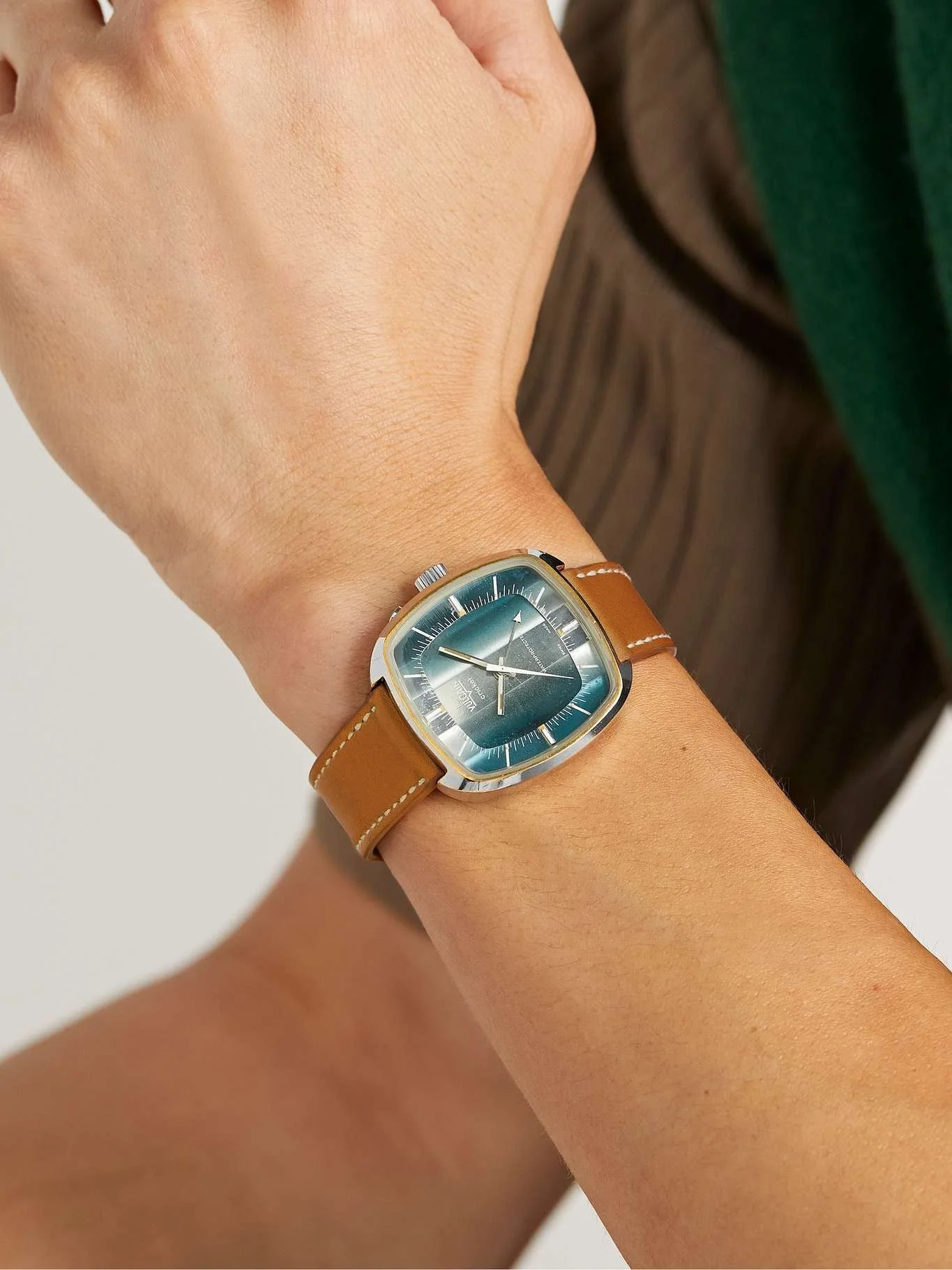 Vintage 1970s Vulcain Cricket Hand-Wound 37mm Chrome-Plated and Leather Watch, Ref. No. 6001