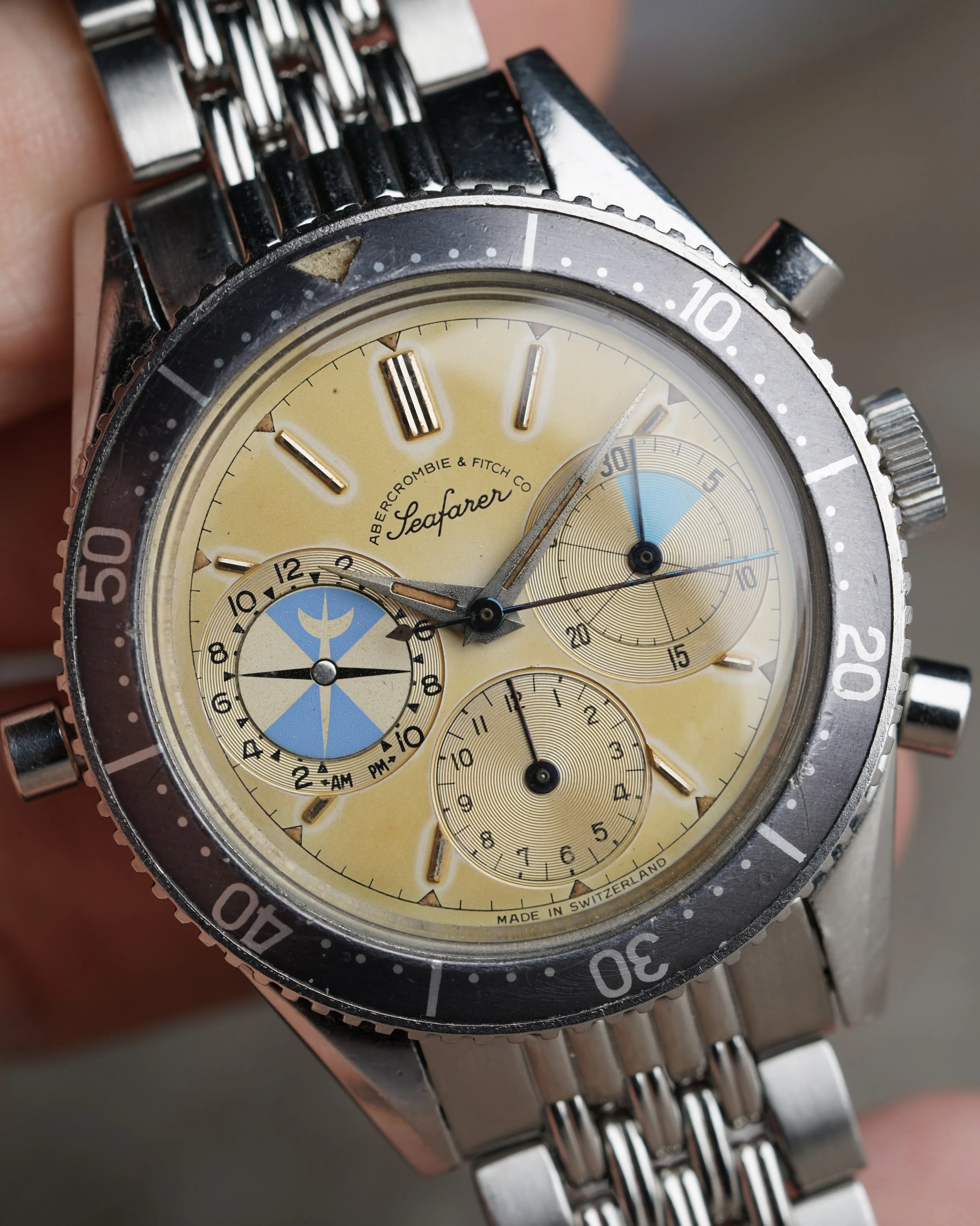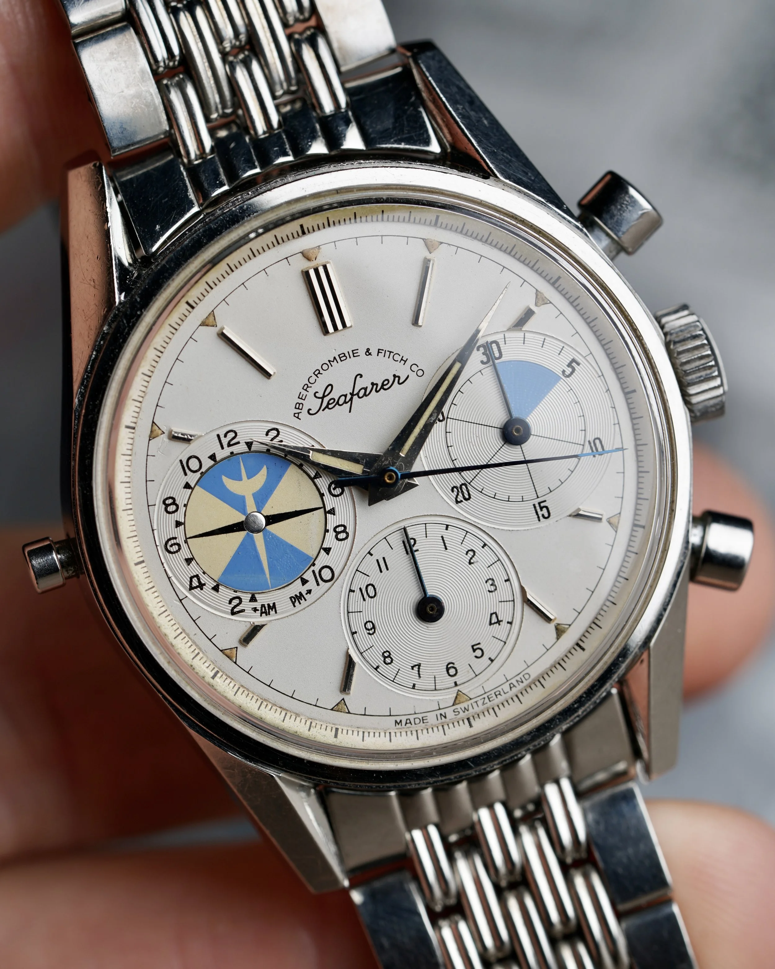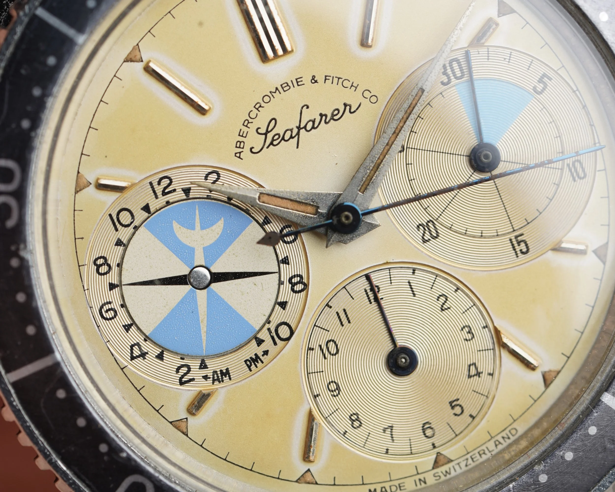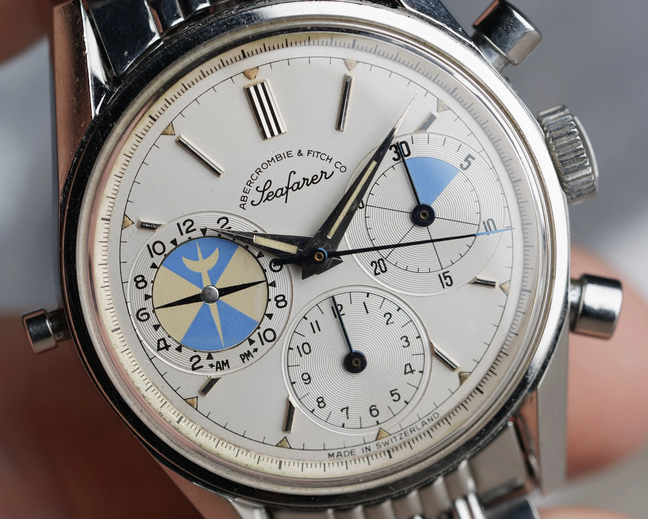 When one thinks about Abercrombie & Fitch, the first thing that comes to mind is for most people is cologne, denim, tight bright t-shirts, or perhaps the 1999 classic Summer Girls by LFO. For vintage watch collectors, it is the iconic Seafarer chronographs made by Heuer. Before the brand became the apparel company designated in the middle of every mall within the United States, Abercrombie & Fitch was the upscale and preeminent retailer for outdoorsmen catering to hunting, fishing and camping products. The New York-based retailer began to retail wristwatches in the 1940s (and possibly earlier), and would work with manufacturers such as Movado and Mido. However, Abercrombie & Fitch had the closest relationship with Heuer due to the strong association with chronographs and the willingness to create modified movements for Abercrombie & Fitch’s clientele.