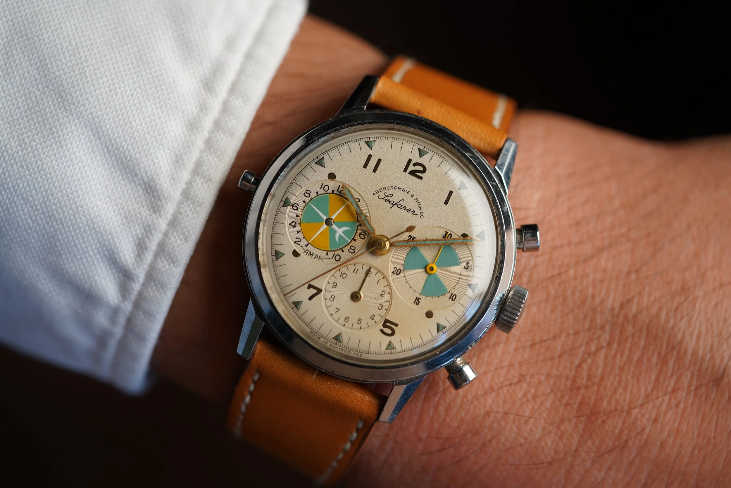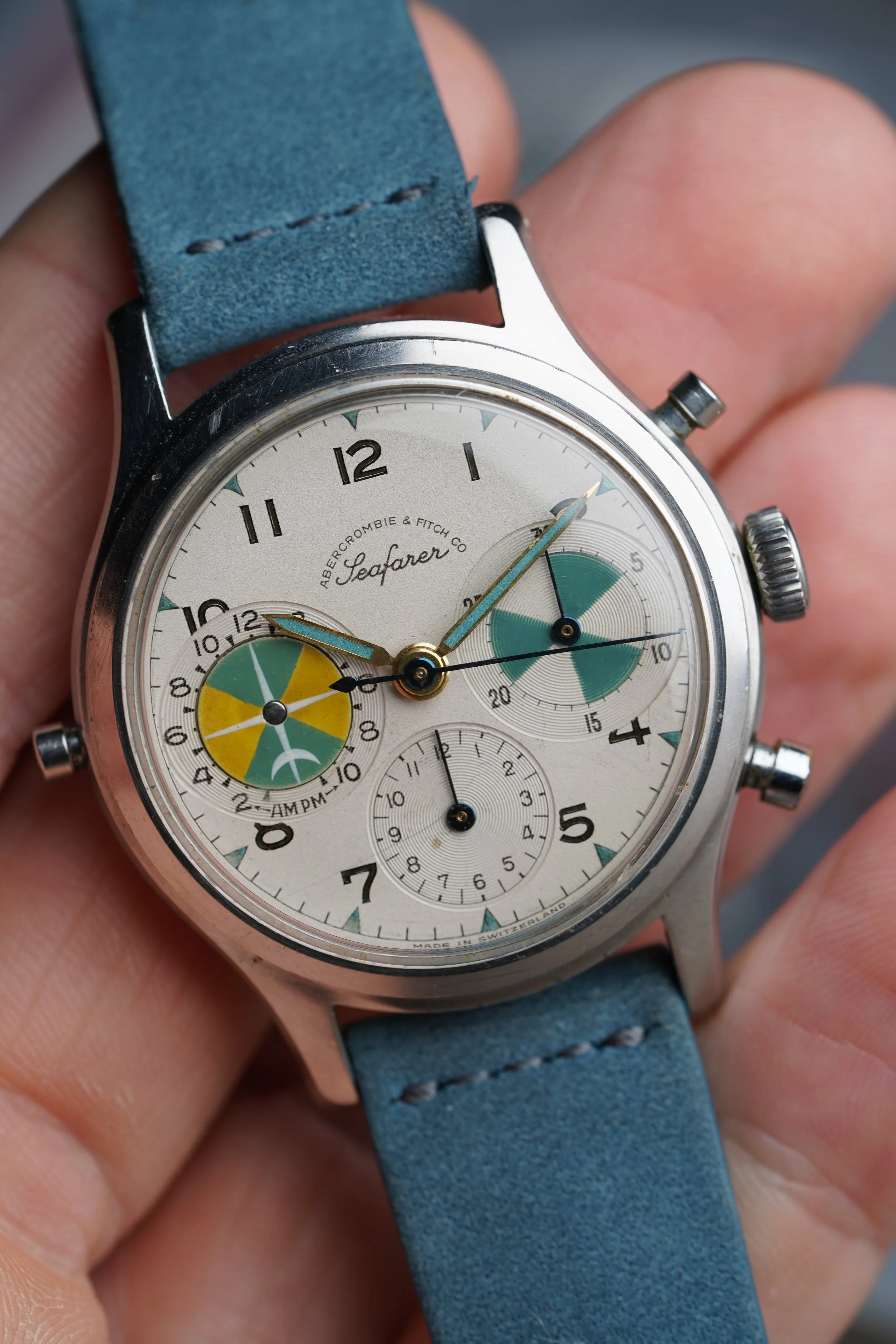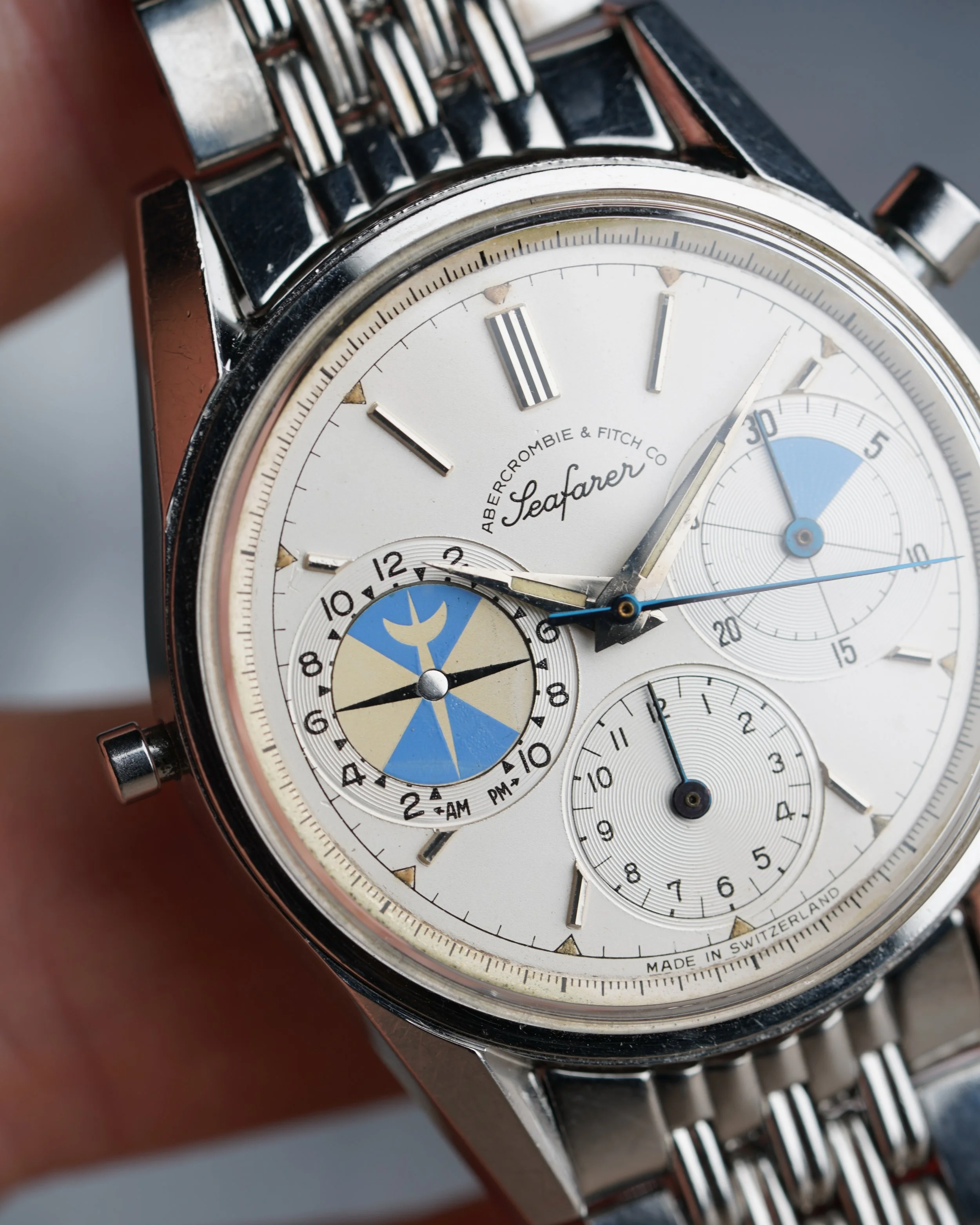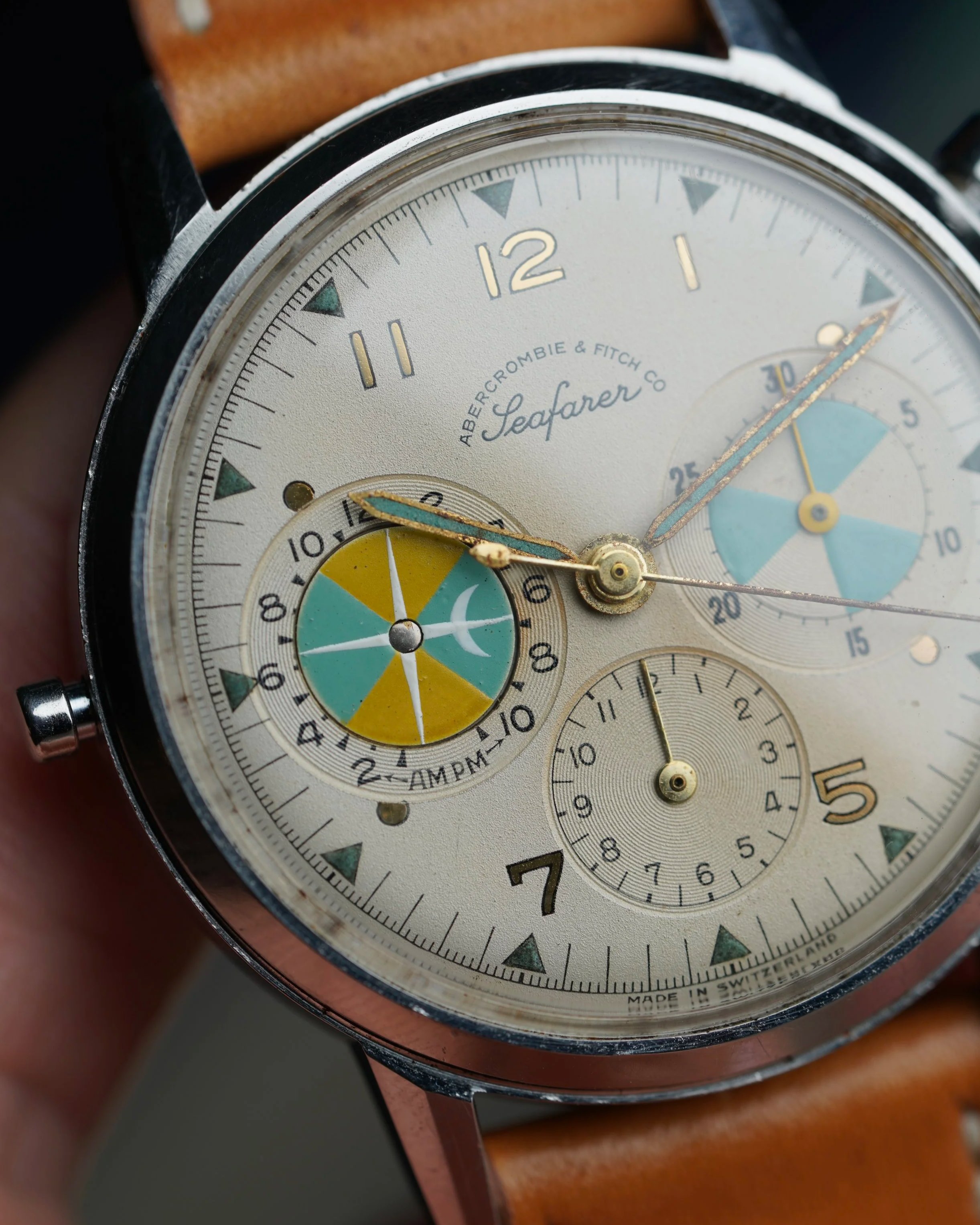 When one thinks about Abercrombie & Fitch, the first thing that comes to mind is for most people is cologne, denim, tight bright t-shirts, or perhaps the 1999 classic Summer Girls by LFO. For vintage watch collectors, it is the iconic Seafarer chronographs made by Heuer. Before the brand became the apparel company designated in the middle of every mall within the United States, Abercrombie & Fitch was the upscale and preeminent retailer for outdoorsmen catering to hunting, fishing and camping products. The New York-based retailer began to retail wristwatches in the 1940s (and possibly earlier), and would work with manufacturers such as Movado and Mido. However, Abercrombie & Fitch had the closest relationship with Heuer due to the strong association with chronographs and the willingness to create modified movements for Abercrombie & Fitch’s clientele.