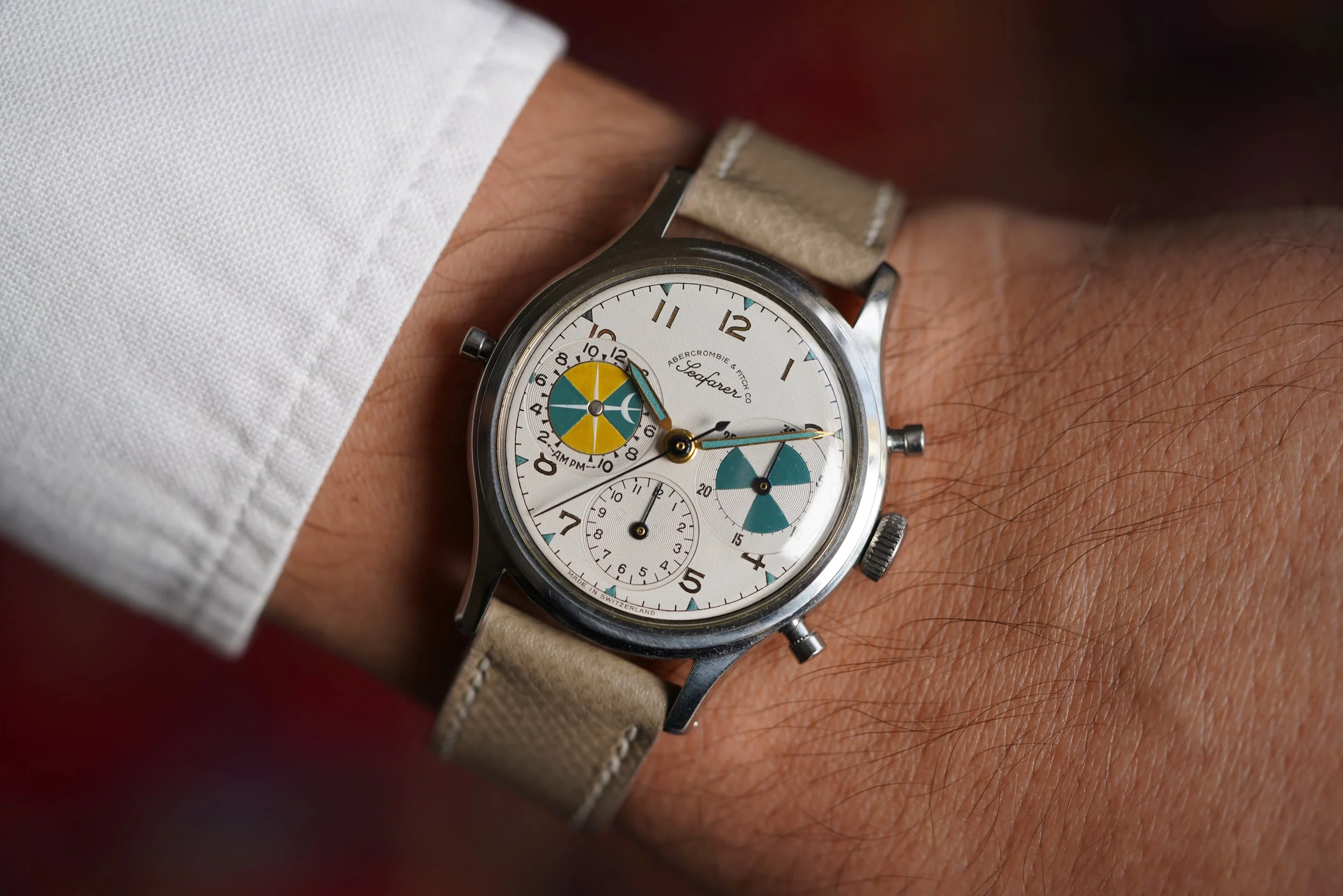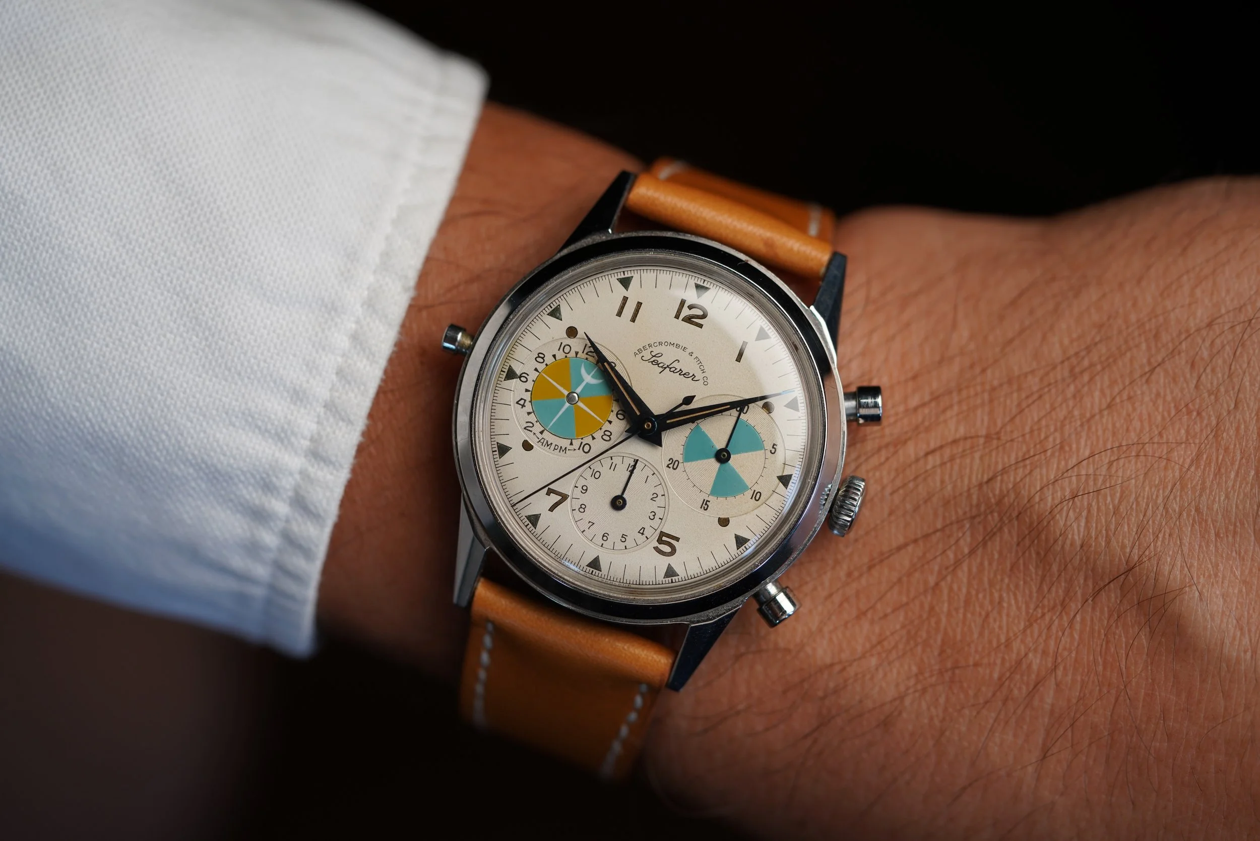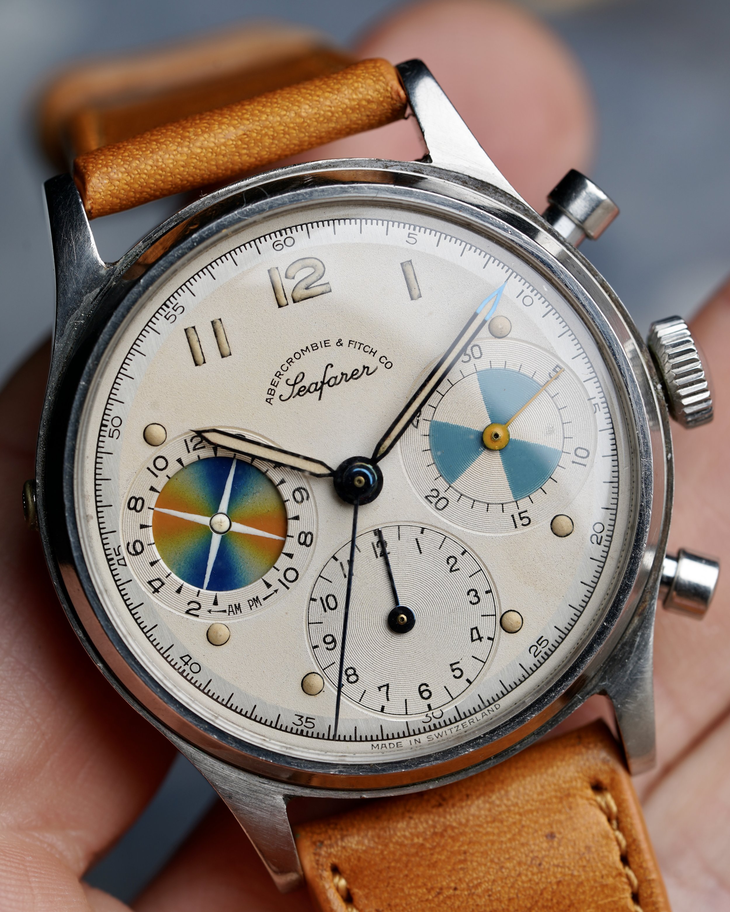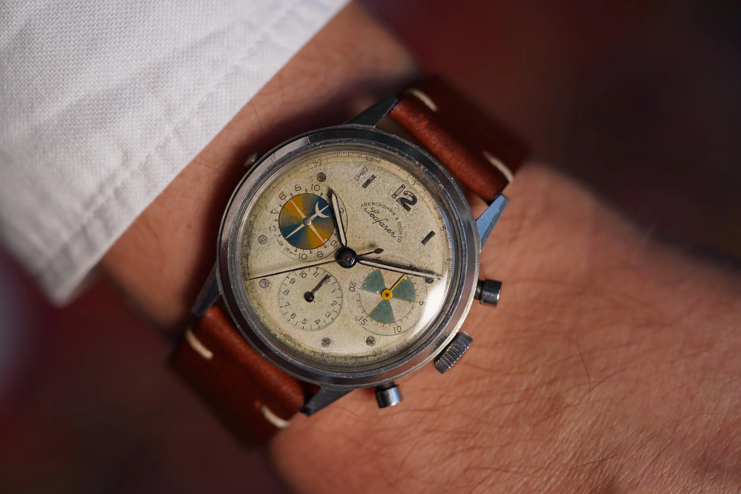 When one thinks about Abercrombie & Fitch, the first thing that comes to mind is for most people is cologne, denim, tight bright t-shirts, or perhaps the 1999 classic Summer Girls by LFO. For vintage watch collectors, it is the iconic Seafarer chronographs made by Heuer. Before the brand became the apparel company designated in the middle of every mall within the United States, Abercrombie & Fitch was the upscale and preeminent retailer for outdoorsmen catering to hunting, fishing and camping products. The New York-based retailer began to retail wristwatches in the 1940s (and possibly earlier), and would work with manufacturers such as Movado and Mido. However, Abercrombie & Fitch had the closest relationship with Heuer due to the strong association with chronographs and the willingness to create modified movements for Abercrombie & Fitch’s clientele.