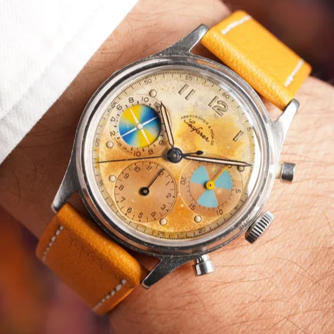 Abercrombie & Fitch Seafarer reference 2447 is the quintessential option for any vintage Heuer collector looking into Abercrombie & Fitch Seafarers. It is the same case style as the iconic Heuer reference 2447, except with the modified complicated movement and dial accents in blue. These dials are consistent within the reference 2447 and are often well preserved due the the superior case designs from the late 1940s and 1950s. These make for a compelling watch to Carrera collectors as there are few comparable vintage Carreras with blue (these include the slightly darker blue on the Heuer Decimal Carrera 3647D / 2447D and the Heuer “Yachting” Carrera reference 2447S). For many collectors of chronographs and vintage Daytonas, the Abercrombie & Fitch Seafarer reference 2447 is among the grail Abercrombie in the sense it has the most iconic case design. These watches were produced from circa 1964 through the late 1960s. These dials are similar to the early “Eggshell” Carreras, but slightly more silver.