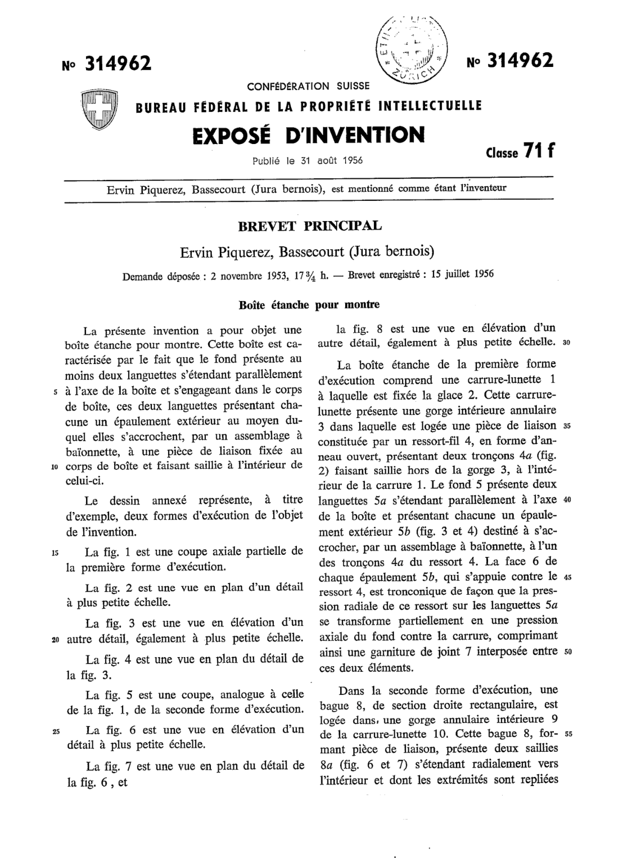 The Ultradive and broader collection of Enicar dive watches are characterized by their Super Compressor cases produced by Erivin Piquerez (EPSA). You can recognize EPSA cases by the cross-hatched crowns. Also, many of the cases feature the EPSA filed patents engraved into their case backs. Piquerez would file 200 patents and register 8,000 designs over the course of his career. Just about every manufacturer would commission EPSA throughout 1960s-1970s to compete with the offerings from Rolex. Incredibly, one of the greatest case manufacturer would achieve this with a staff of only 160 employees by the early 1970s. Piquerez was integrally involved in many highly-coveted vintage sports watches including the Breitling Cosmonaute, the Vulcain Nautical Cricket, Heuer’s Carrera and Monaco, the Jaeger-LeCoultre Polaris and more!
