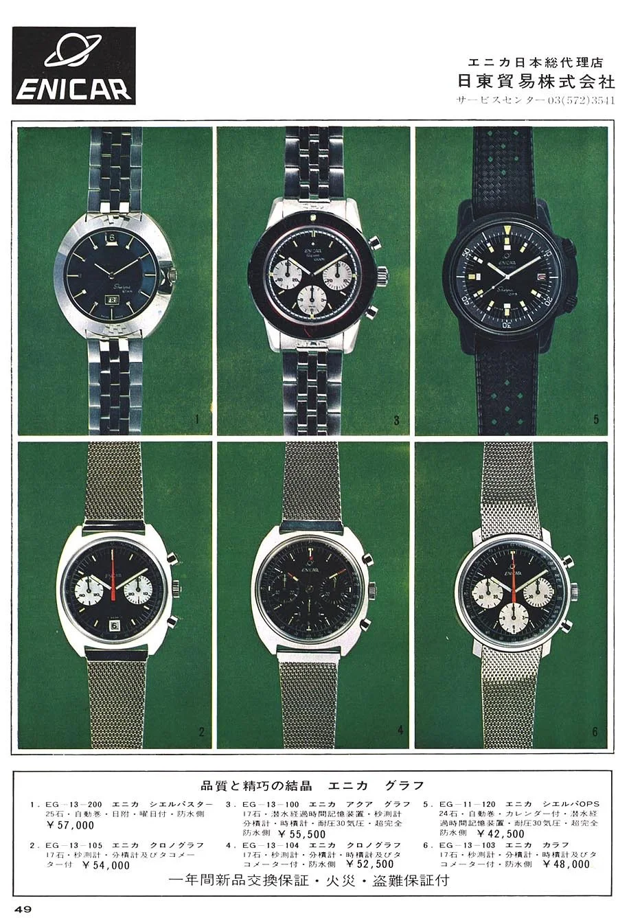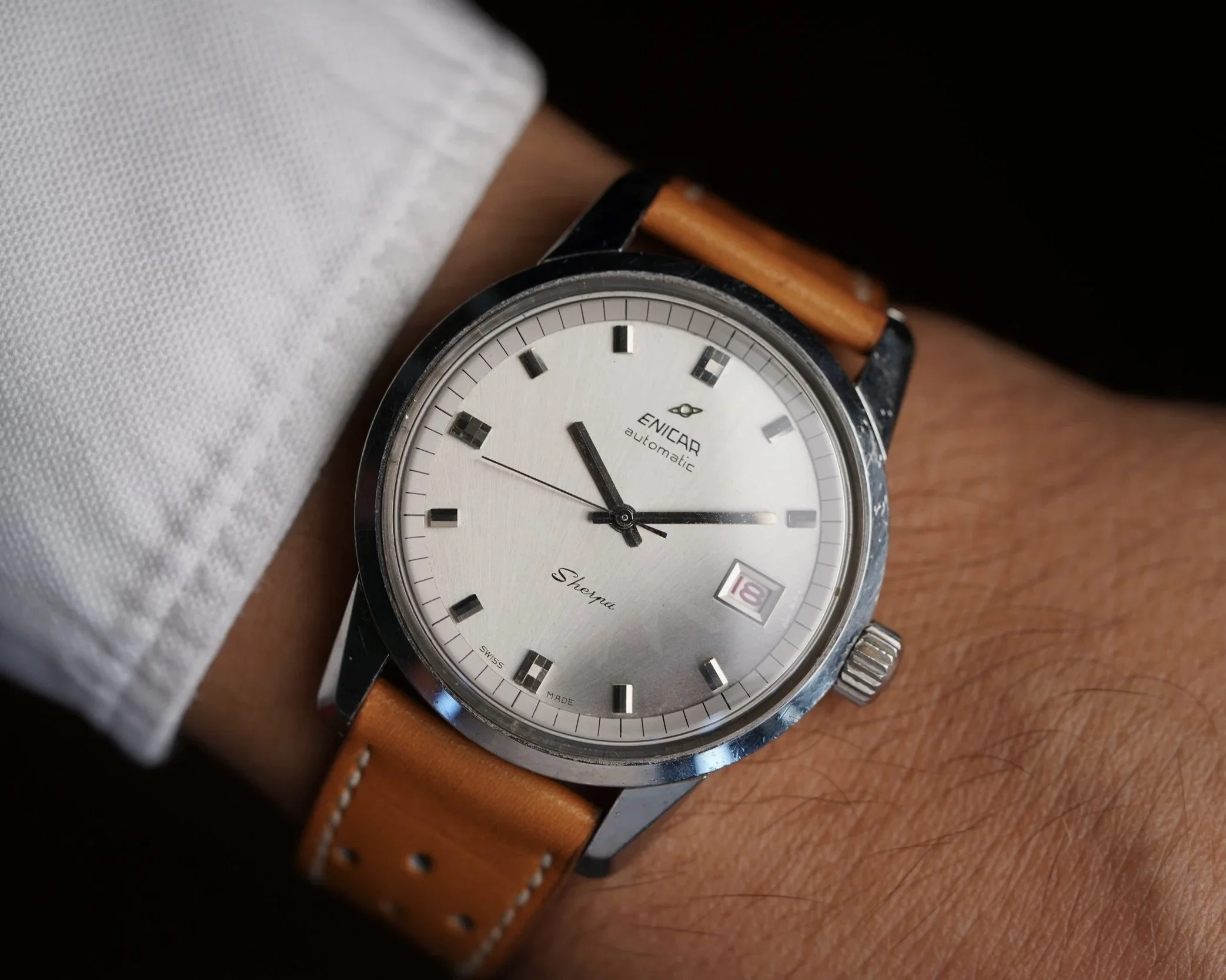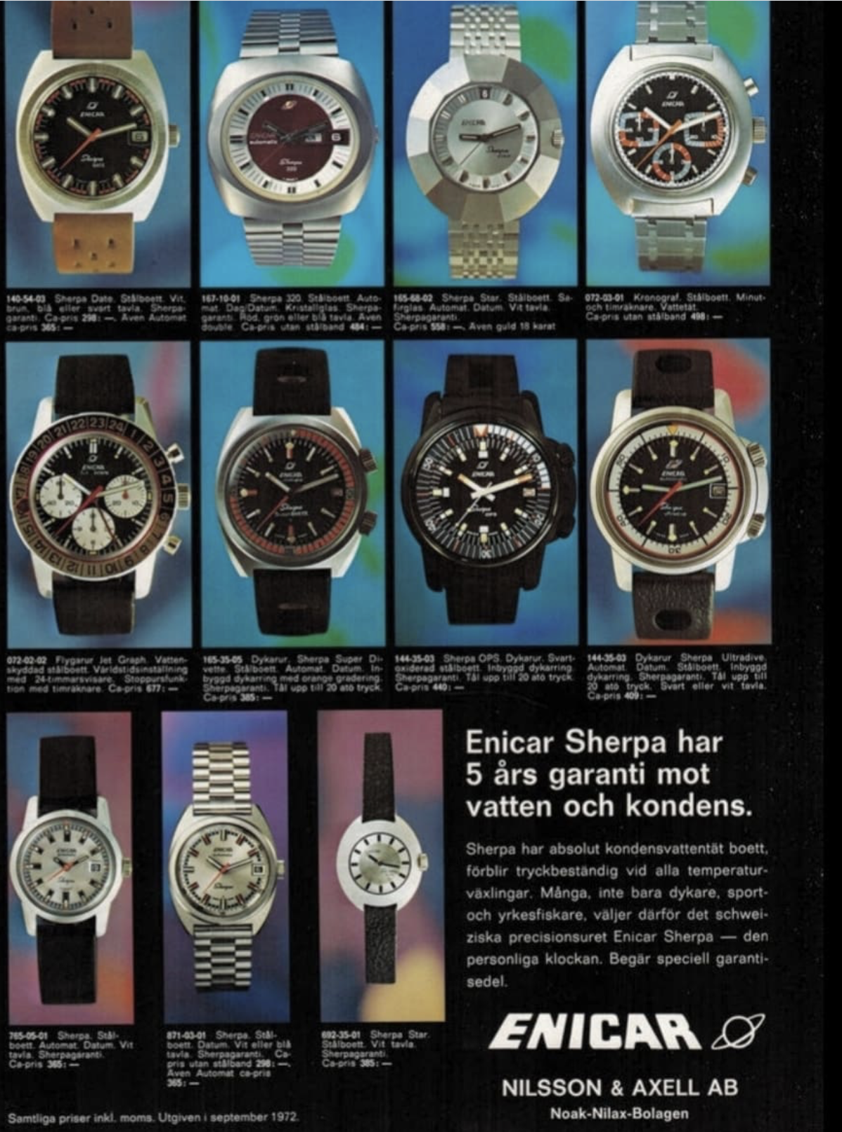 If I were to infer on the production dates based on advertisements, it appears this watch was first marketed in 1966. The watch seems to have been produced for a few years, fading from catalogs into the 1970s. The marketing material for this model is slim to say the least (perhaps due to it not having an expansive production run). However, die-hard Enicar enthusiasts have done a tremendous gesture for curious collectors like myself desperate for details by providing their discoveries online. Some great areas are certainly enicar101.com, enicar.org, enicarforums.com. These feature the tropic straps which indicate the style they were sold on (along with the ultra rare bracelet).