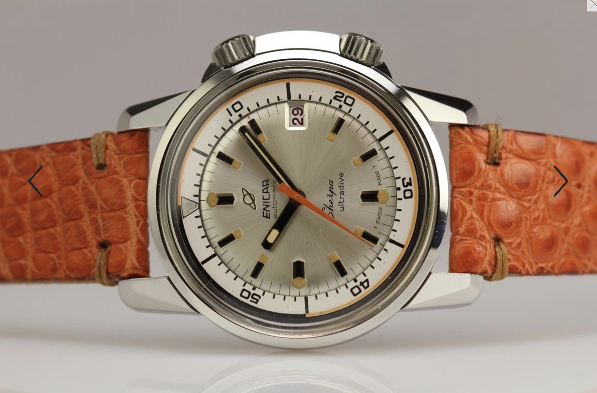 There’s quite a good amount of variation which is fun, but I am not convinced I can give concrete guidance on which dial and handset came by which year. Speaking with Nico, I was assured the dial/hand variants was somewhat of an ambiguous evolution - as he had researched these for 5 years and did not have a definitive pattern for the variants. “It seems the cases were built initially and then Enicar assembled movements and dial variants in the Ultradive when ready for distribution. Although it’s not as though they built 1,000 watches from serial 1-1,000 in 1965, 2,000 to 3,000 in 1966 and so on. The case numbers are almost random. There is a pattern of evolving dials, but it doesn’t match with the chronological order of the cases. The double lollipop second hand would come first, followed by the lollipop, then triangles. This is coherent with the other Enicar models, so this is a fair assessment in the Ultradive”