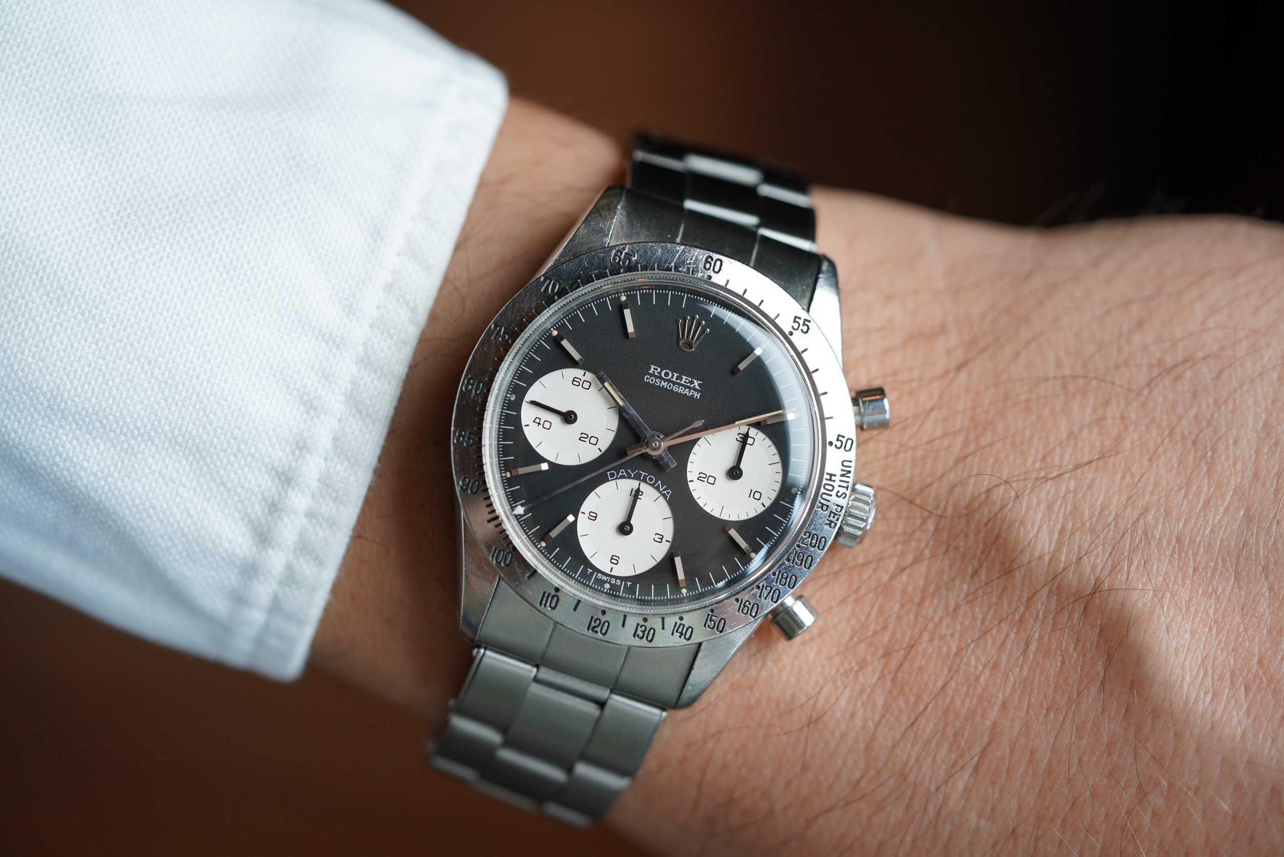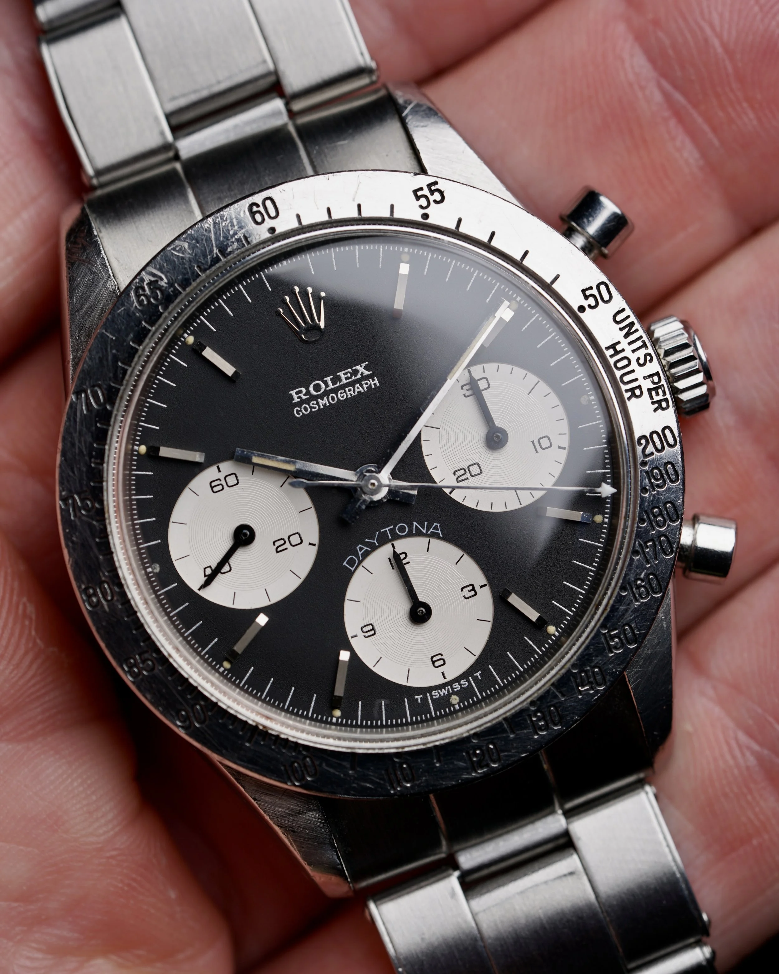 These examples feature a light blue “DAYTONA” font. Similar to the secondary stamping on Submariner reference 5512s, this color is slightly differs from the main text of the dial - in the 6262, the white “ROLEX COSMOGRAPH” font found below the coronet. Collectors love the “Blue” Daytona’s understated nature. It is a If you know, you know type of watch. The louder “Big Red” Daytona is certainly iconic, and the Paul Newman is the pinnacle. However, the “Blue” Daytonas are very similar to the stealthiness found in the cult-classic Carrera models. This dial variant is perhaps the closest comp to the classic Heuer Carrera reference 2447N and reference 2447NS in its minimalism. The contrasting outer track on a “Paul Newman” and numerals make for a more dynamic dial, whereas the the “Blue” Daytona is as pure as it gets. The font on these dials can be quite appealing in that the “ROLEX COSMOGRAPH” text has a subtle grey flakey texture that aligns with “T SWISS T” the demarcations on the outer dial. The light blue “DAYTONA” font is extremely sharp, but a subtle standout color making for a low-key flex. The “Blue” Daytona is a fantastic and rare chronograph worthy of discussion and worthy of any astute collection.