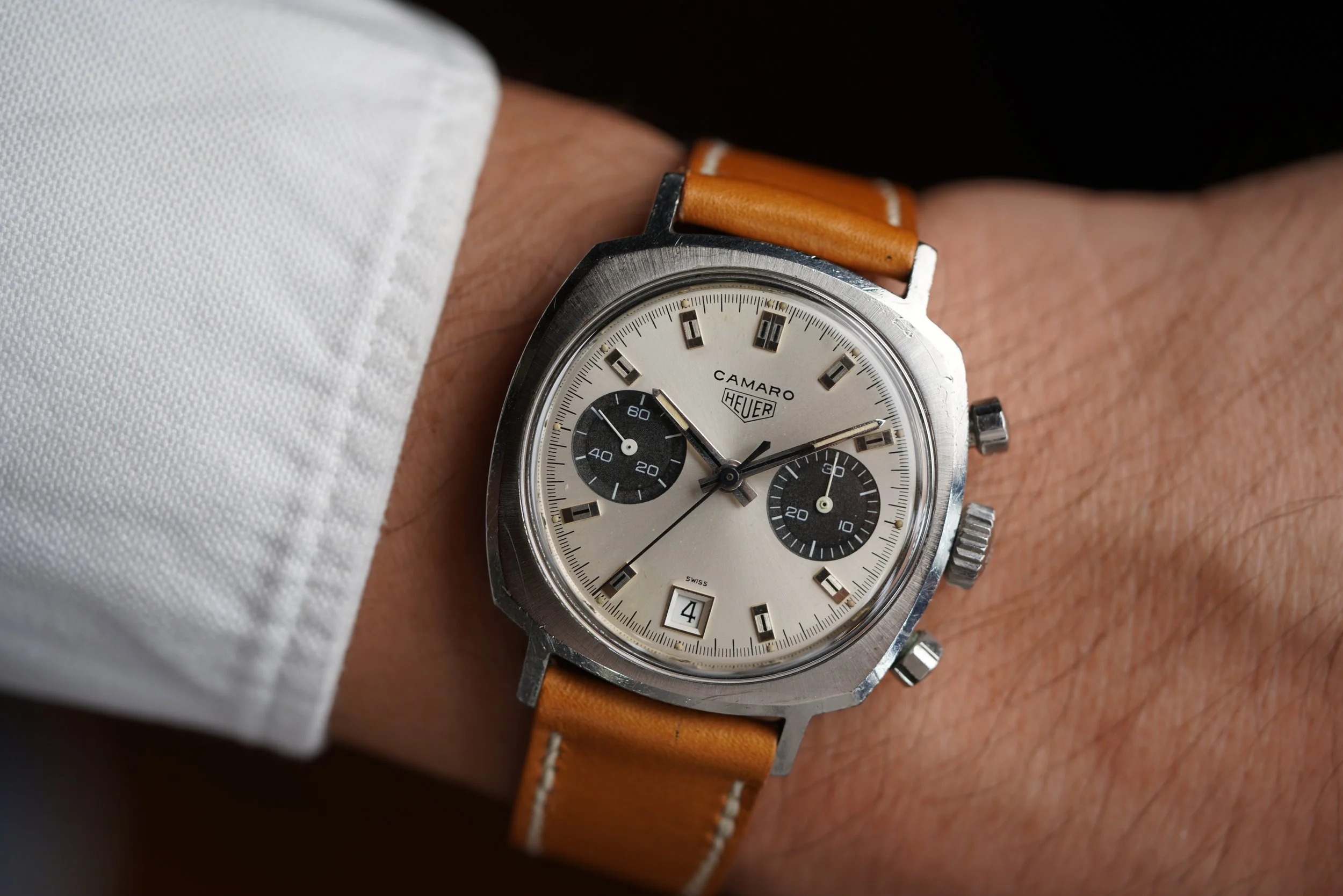 Heuer is renowned for its rich history with automotive raving, and one of the great models from the golden age of the brand is the Camaro. The Camaro line has always been a sleeper when compared to the more discussed siblings, such as the Autavia and Carrera. The case appears to be unpolished.