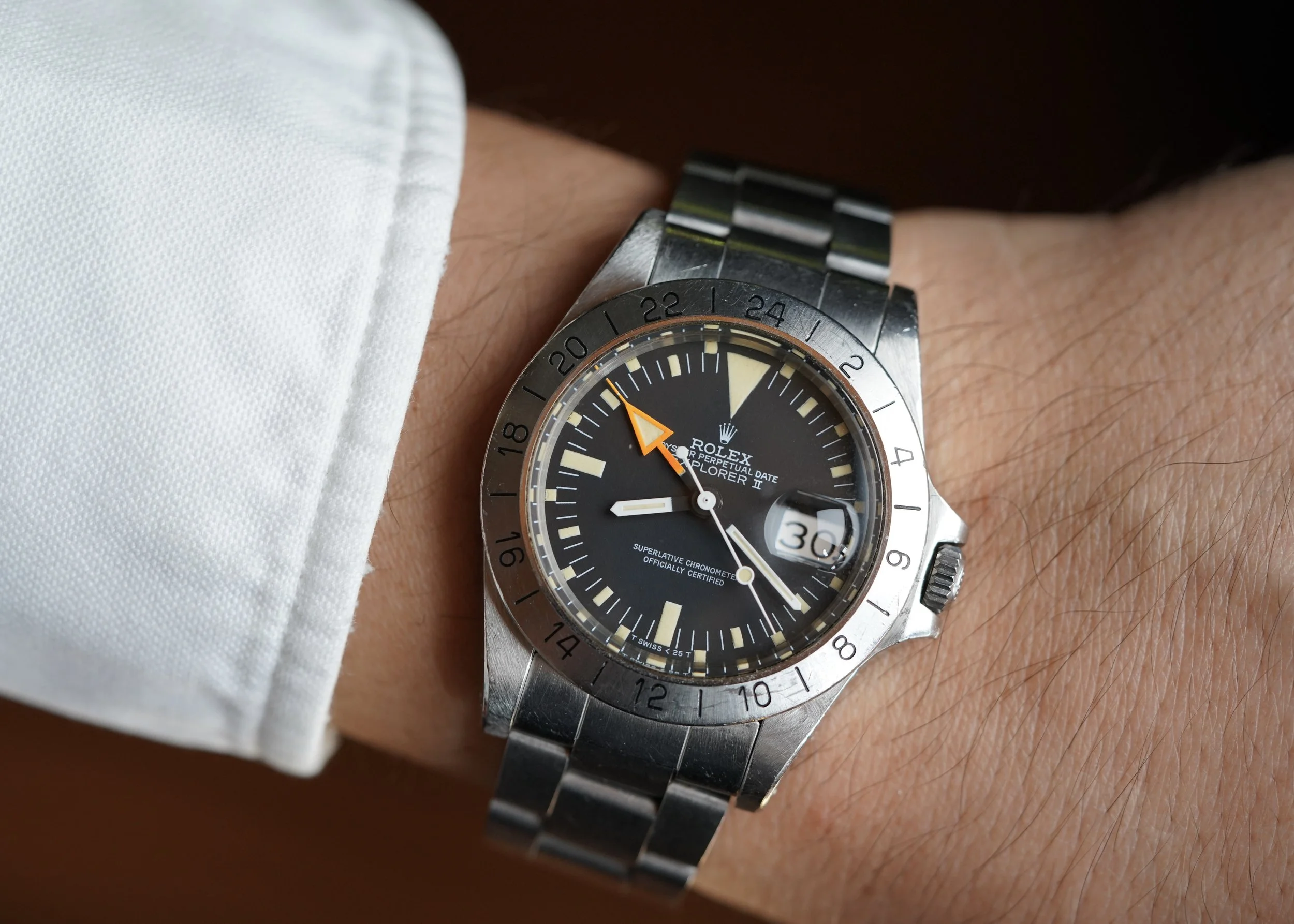 Rolex introduced the Explorer II reference 1655 for use by spelunkers (cave diving) and speleologists (cave researchers) where the use of a 24-hour hand is important for the wearer to be able to differentiate between night and day. These watches also have the nickname ‘Freccione’ meaning ‘big arrow’ in Italian and are sometimes falsely called the “Steve McQueen” despite no evidence he ever owned or wore one. A slow seller when initially released, the reference 1655 has gained a cult following due its unusual and distinctive design. The reference 1655 is one of the references I am asked most often to find for collectors.