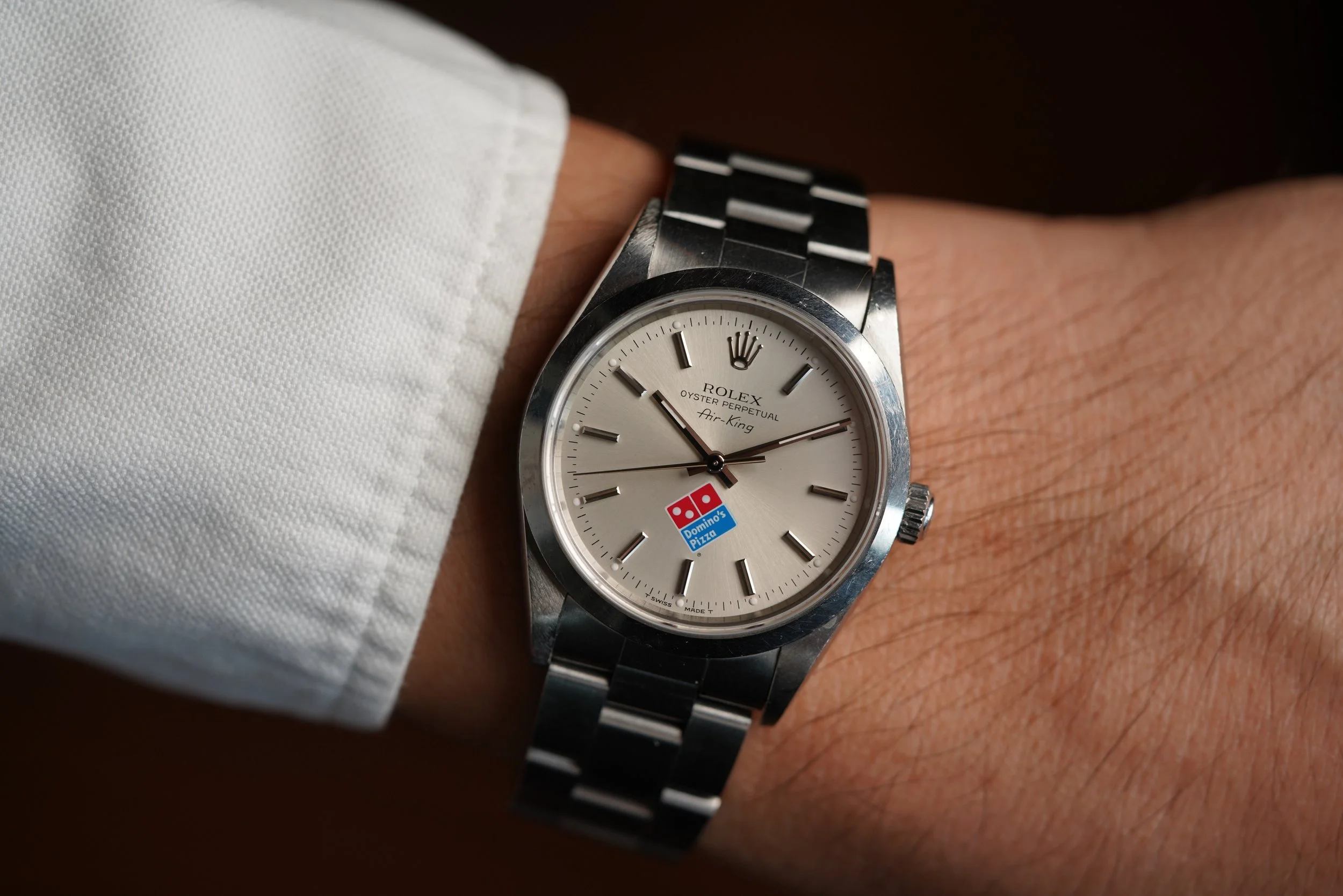 All these watches were originally ordered through Schlanderer and Sons in Ann Arbor, Michigan, where Domino’s has its headquarters. In the past, these watches on the secondhand market were generally the least expensive Rolex a person could purchase as few people wanted a pizza logo like this on their dial. Dealers would buy them, swap out the Domino’s dial, and polish off the case back initials. Over the last year, however, they have gained a massive following.