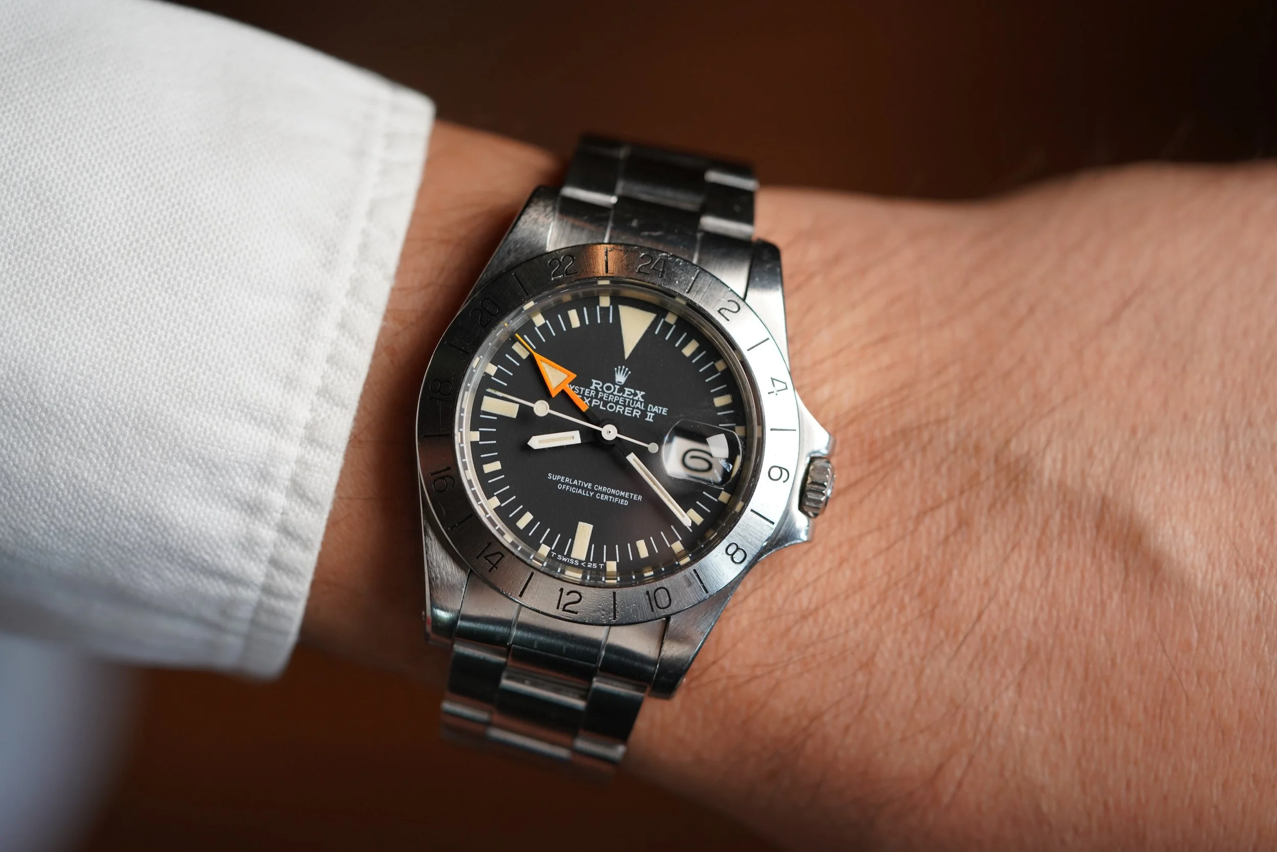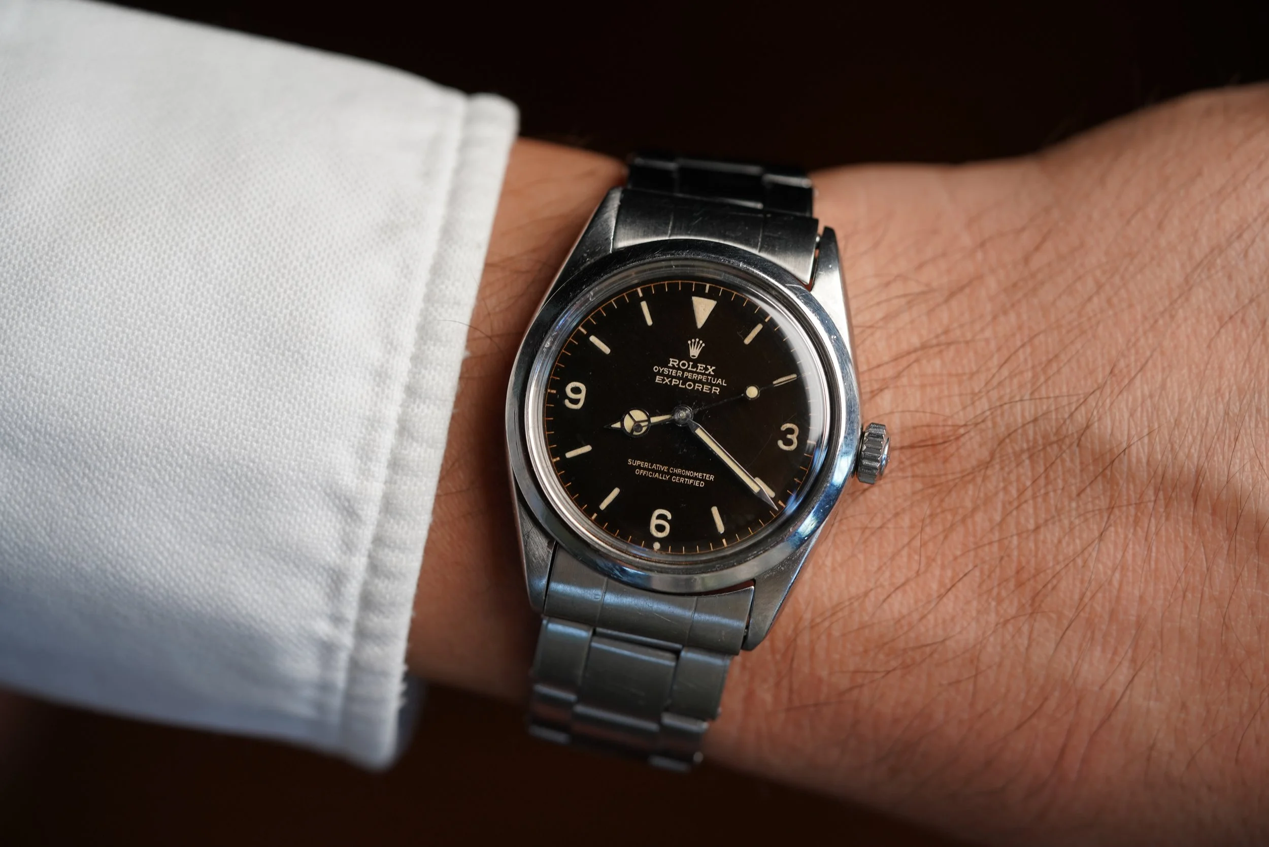 The Rolex Explorer reference 1016 is an icon of simplicity and function. The Explorer reference 1016 was produced from 1960 until circa 1989 and it was the first Explorer with “Superlative Chronometer Officially Certified" on the dial. The 1016 is one of the purest expressions of watch design and I am asked for great vintage Explorer reference 1016 examples more than any other watch.