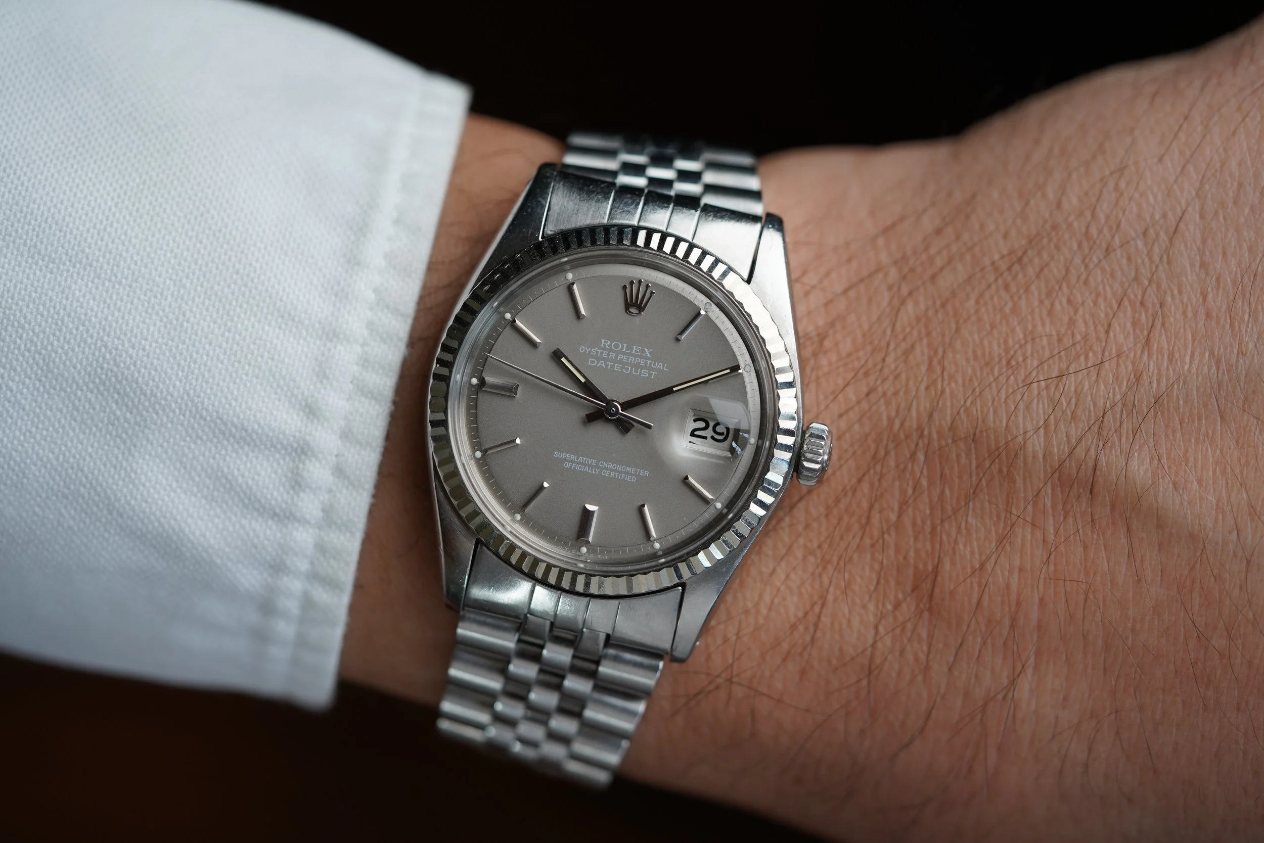 I absolutely love steel Rolex Datejusts. I recently wrote about them in our blog ‘Don't Sleep On This: The Simple Vintage Rolex Datejust In Steel’. I’m constantly amazed by the quality and differentiations of the dials that Rolex used in vintage Datejusts over the decades. I have found the Rolex Datejust to be one of the most versatile watches a person can have. This 1601 is no exception.
