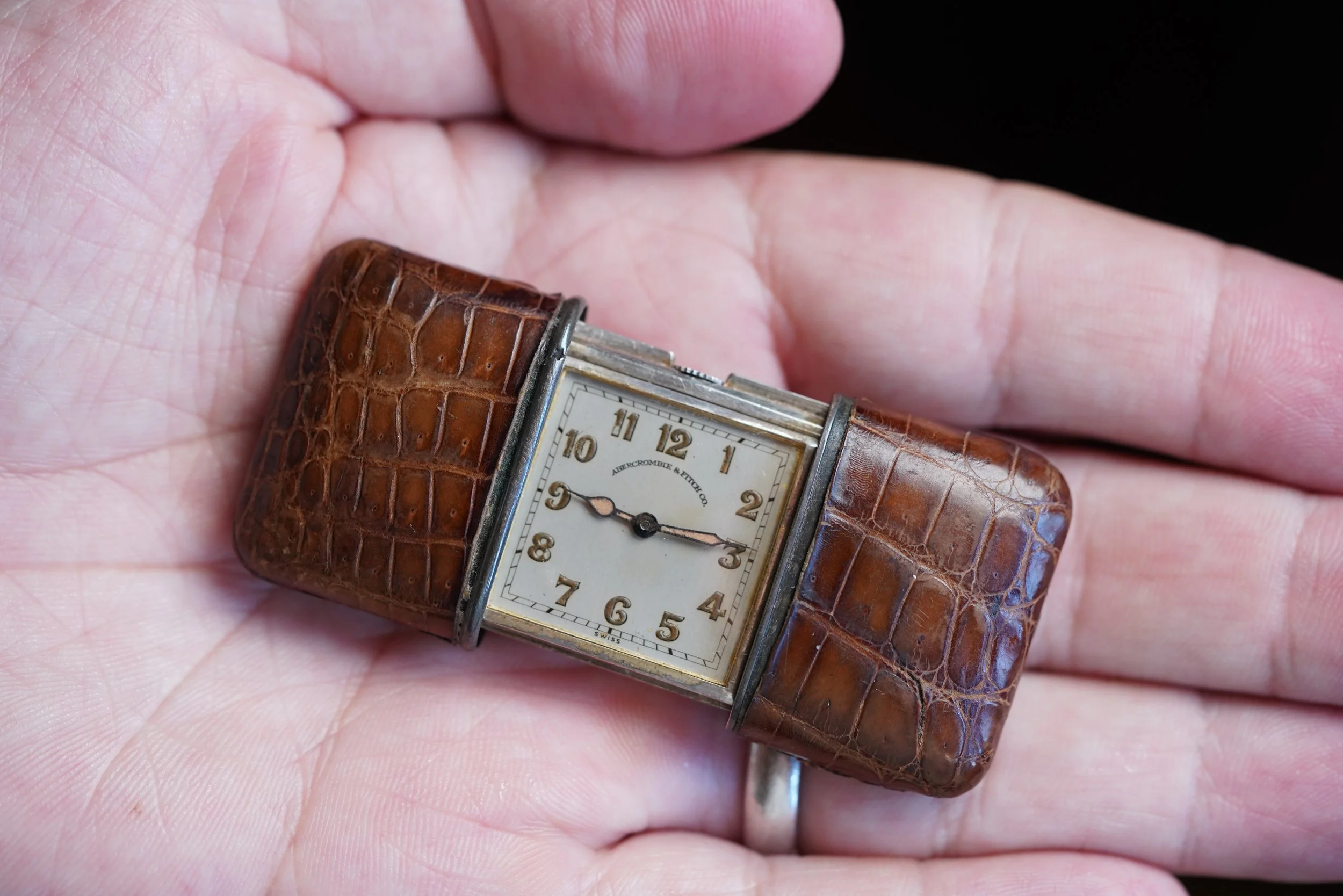 The Movado Ermeto “purse watch” is one of the coolest horological accessories. These watches are super interesting and have some great variations in both material on the sterling silver cases, as well as dial variants and complications. This example is a fantastic example from Abercrombie & Fitch. The watch dates to the 1940s.