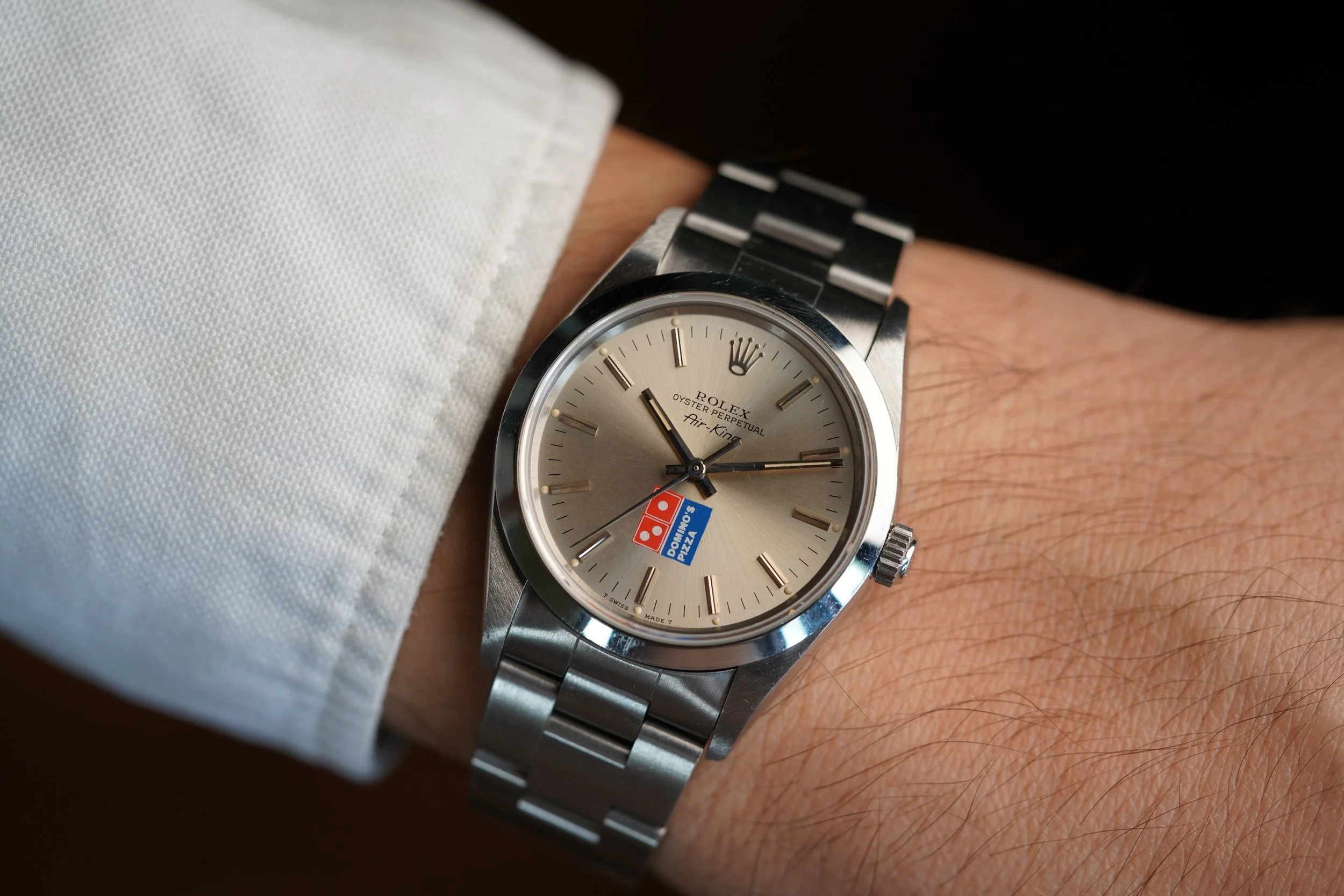 All these watches were originally ordered through Schlanderer and Sons in Ann Arbor, Michigan, where Domino’s has its headquarters. In the past, these watches on the secondhand market were generally the least expensive Rolex a person could purchase as few people wanted a pizza logo like this on their dial. Dealers would buy them, swap out the Domino’s dial, and polish off the case back initials. Over the last year, however, they have gained a massive following.