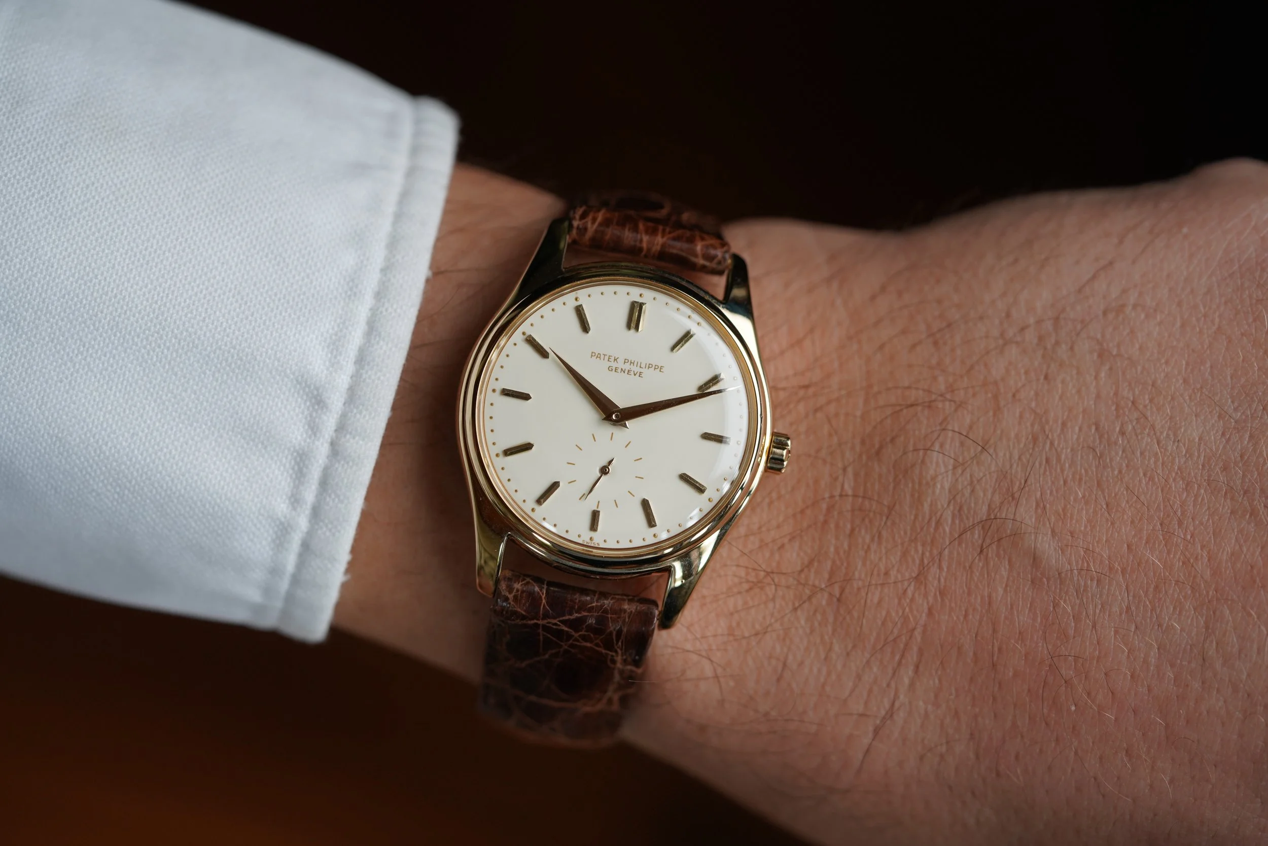 It was recently serviced by Patek Philippe. It is comes with an 18mm Patek Philippe leather strap and features gold Patek Philippe buckle. It is powered by the iconic self-winding movement from Patek Philippe, the calibre 12-600. It features the 2nd series dial.