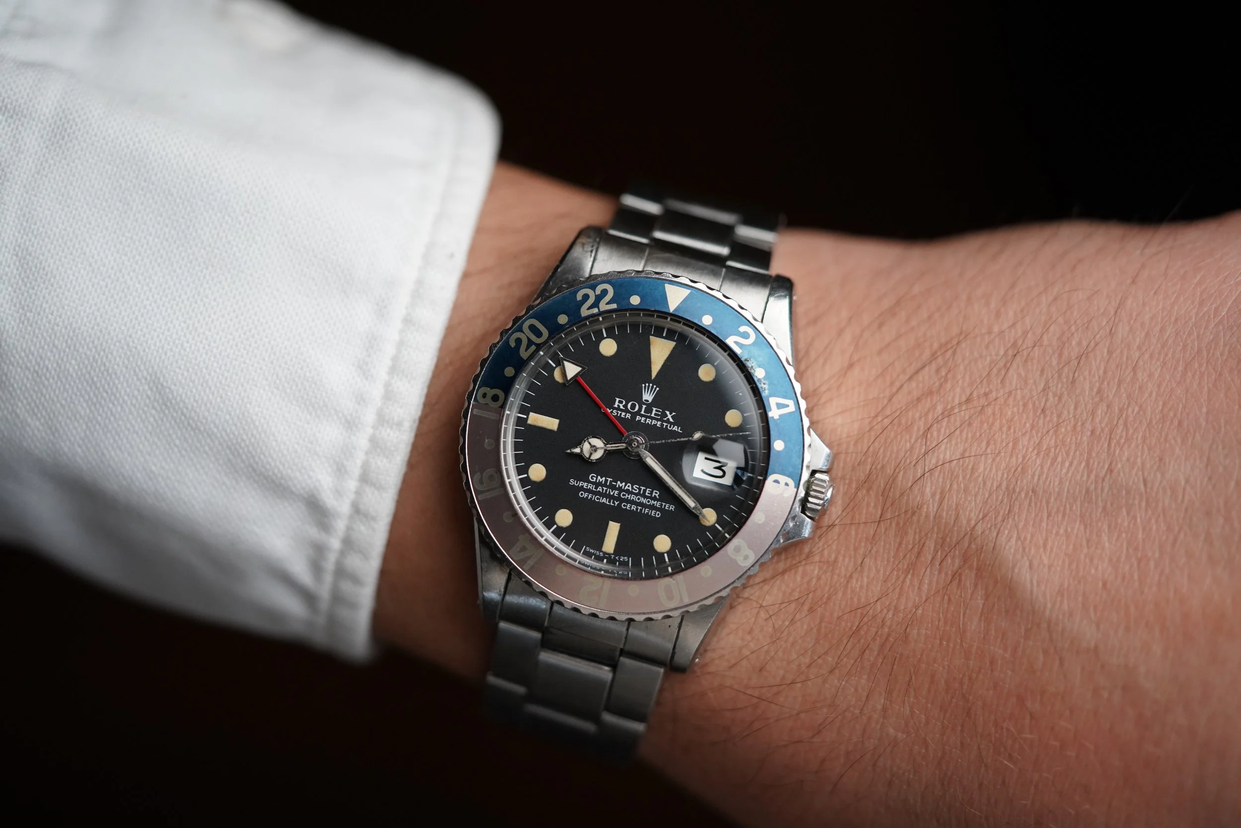 The Rolex GMT-Master was originally designed for Pan Am pilots in the 1950s and continues to be a flagship model for Rolex to this day. The reference 1675 was introduced in 1959 and remained in production until 1980.