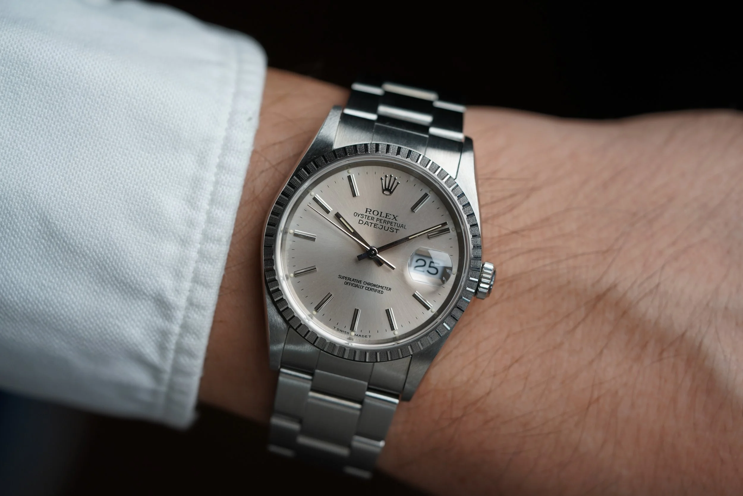 I absolutely love steel Rolex Datejusts. I recently wrote about them in our blog ‘Don't Sleep On This: The Simple Vintage Rolex Datejust In Steel’. I’m constantly amazed by the quality and differentiations of the dials that Rolex used in vintage Datejusts over the decades. I have found the Rolex Datejust to be one of the most versatile watches a person can have and the simplicity in this silver-dial reference 16220 is so beautiful. The watch dates to circa 1991 and features an X serial. The case measures 36mm in diameter and is paired on a 78360 Rolex Oyster bracelet and 558 end links.
