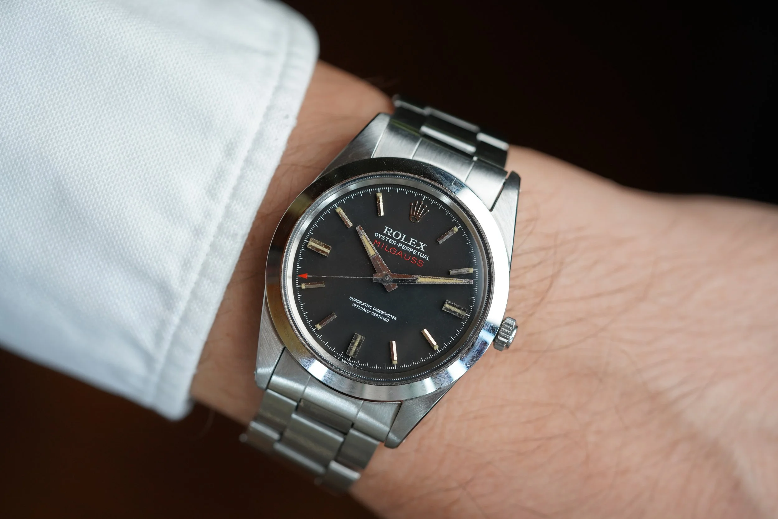 The Rolex Milgauss reference 1019 was the successor for the reference 6541. Like many of the Milgauss models over the years, the dial features a distinctive look that deviates from the consistent aesthetics from Rolex models.