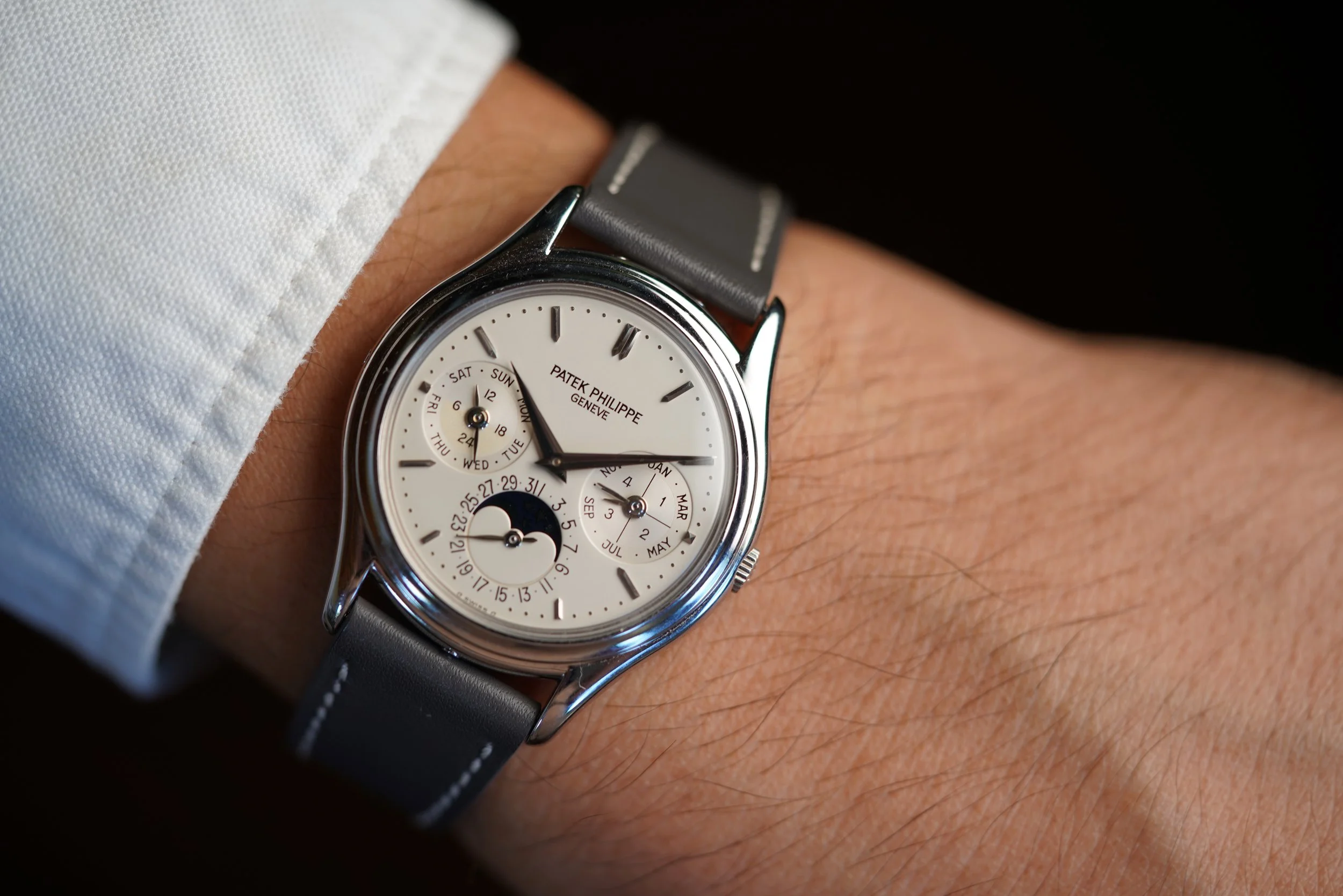 The Patek Philippe reference 3940 perpetual calendar is one of the most elegant complicated timepieces one can find from any manufacturer. The calendar is in English. The Patek Philippe reference 3940 is one of the ultimate in discreet complications.