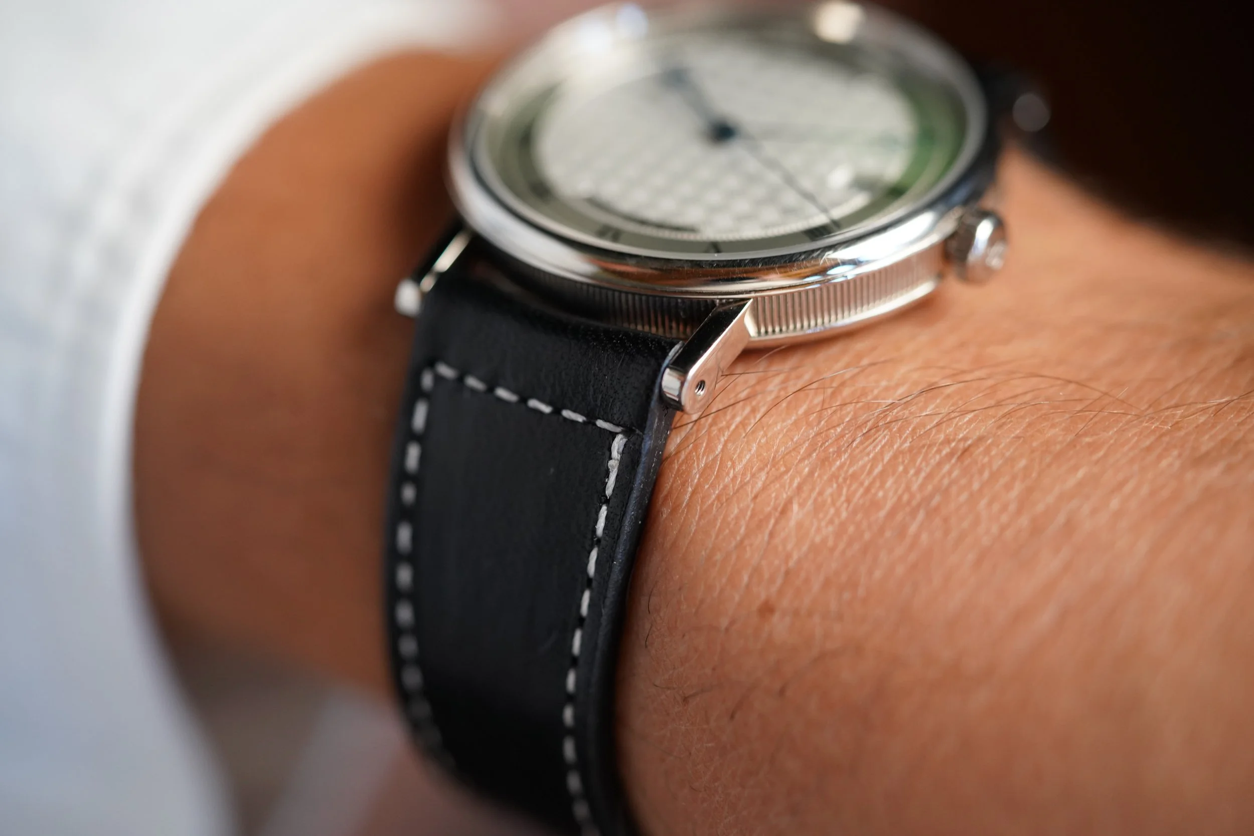 The watch comes with a certificate of origin and instruction papers. We do not know the service history, but it is running well. It dates to 2018.