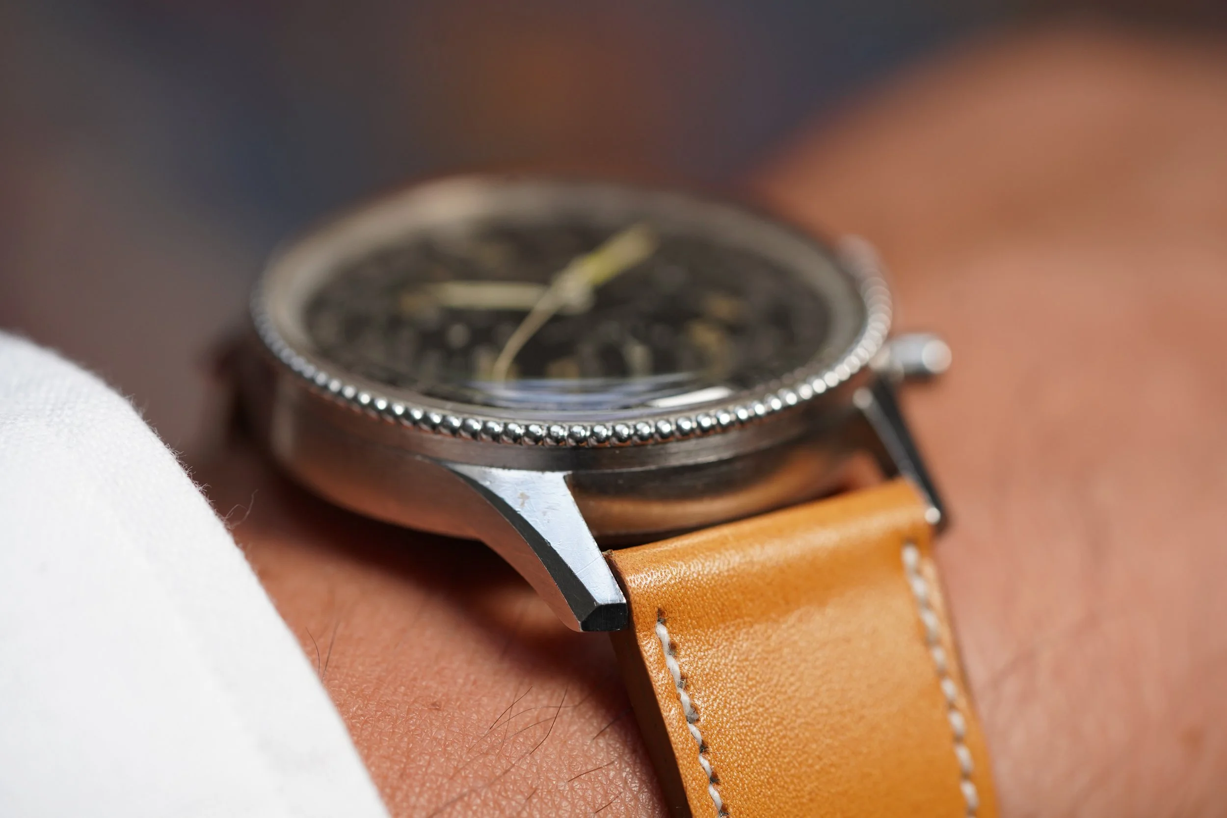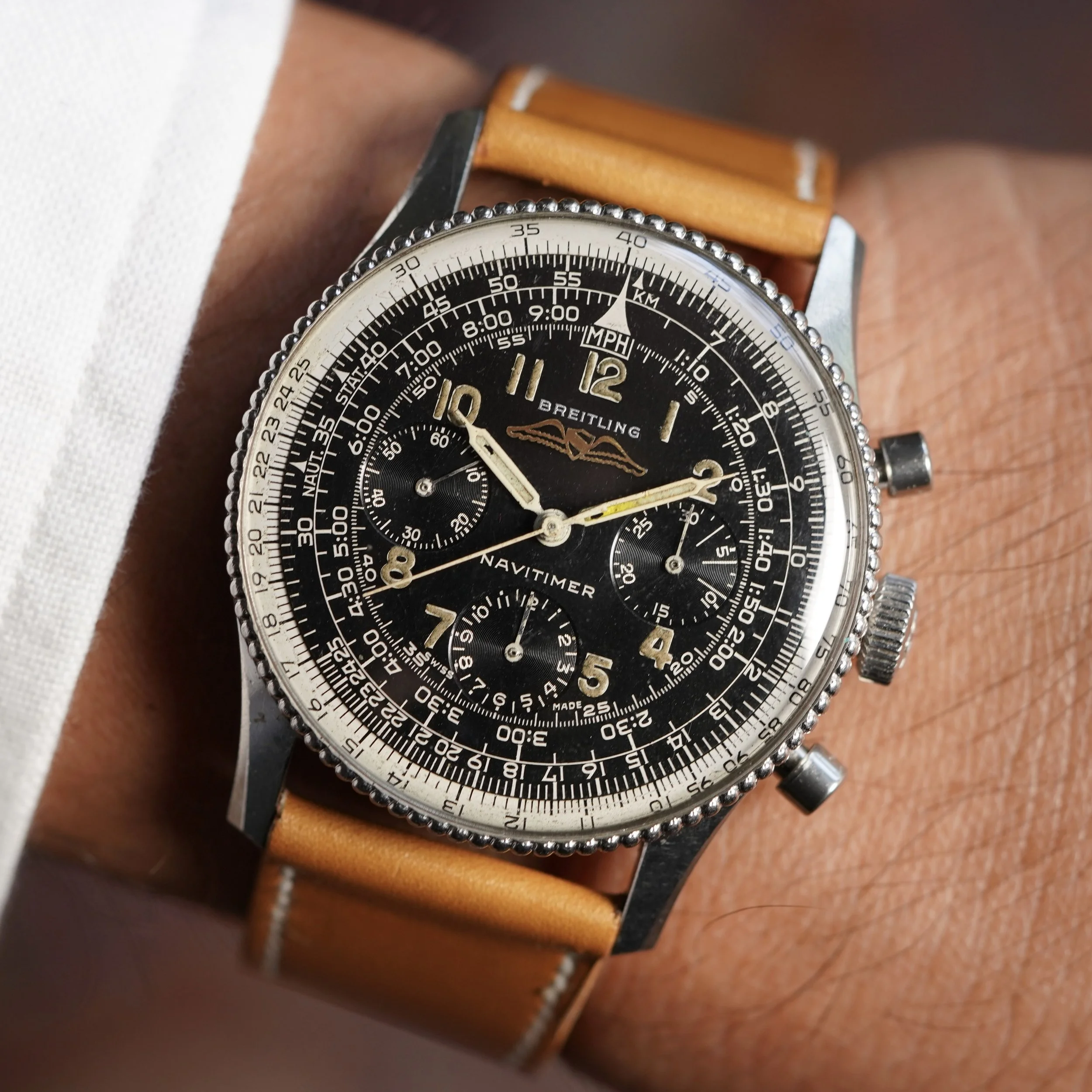 This Breitling Navitimer reference 806 is a super cool vintage chronograph. We believe the stainless steel case is unpolished. It is powered by the Venus calibre 178.