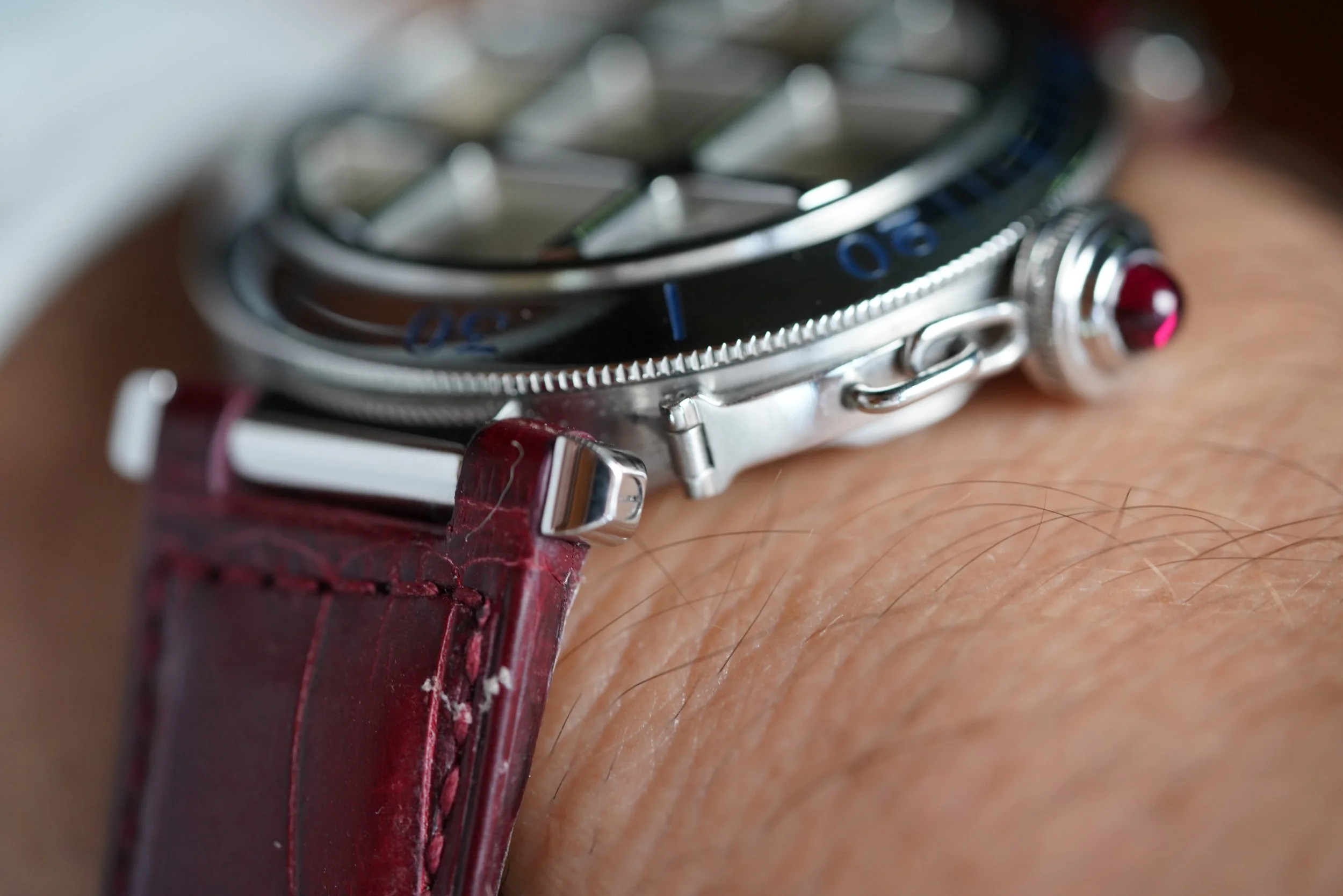 This Cartier Pasha is an all around great and interesting timepiece. The watch features the classic grid over the Roman numeral dial. The watch number 1003 of 1847. The year of production is 1997.