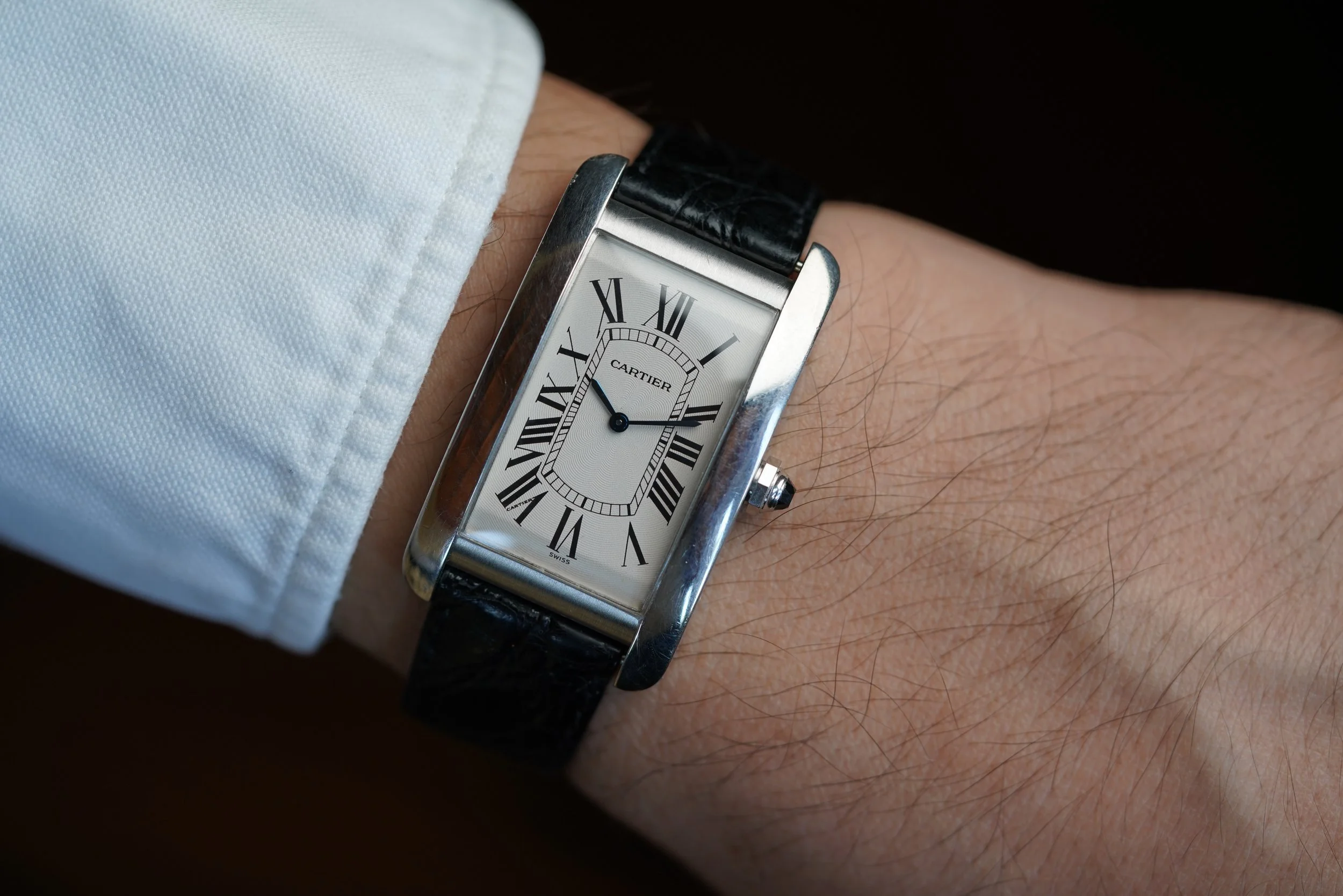 This Cartier Tank Americaine reference 1736 1 is a very important watch. It was given by Ralph Lauren to Senior Adviser and Senior Creative Director of Ralph Lauren Women’s Collections Buffy Birrittella for 25 years of employment. Ralph Lauren has been a prolific collector, with a penchant for beautiful vintage Cartier watches. To own a watch given by Ralph Lauren is quite the timepiece, but to have one specifically from Cartier - a brand that he loves - is very special.