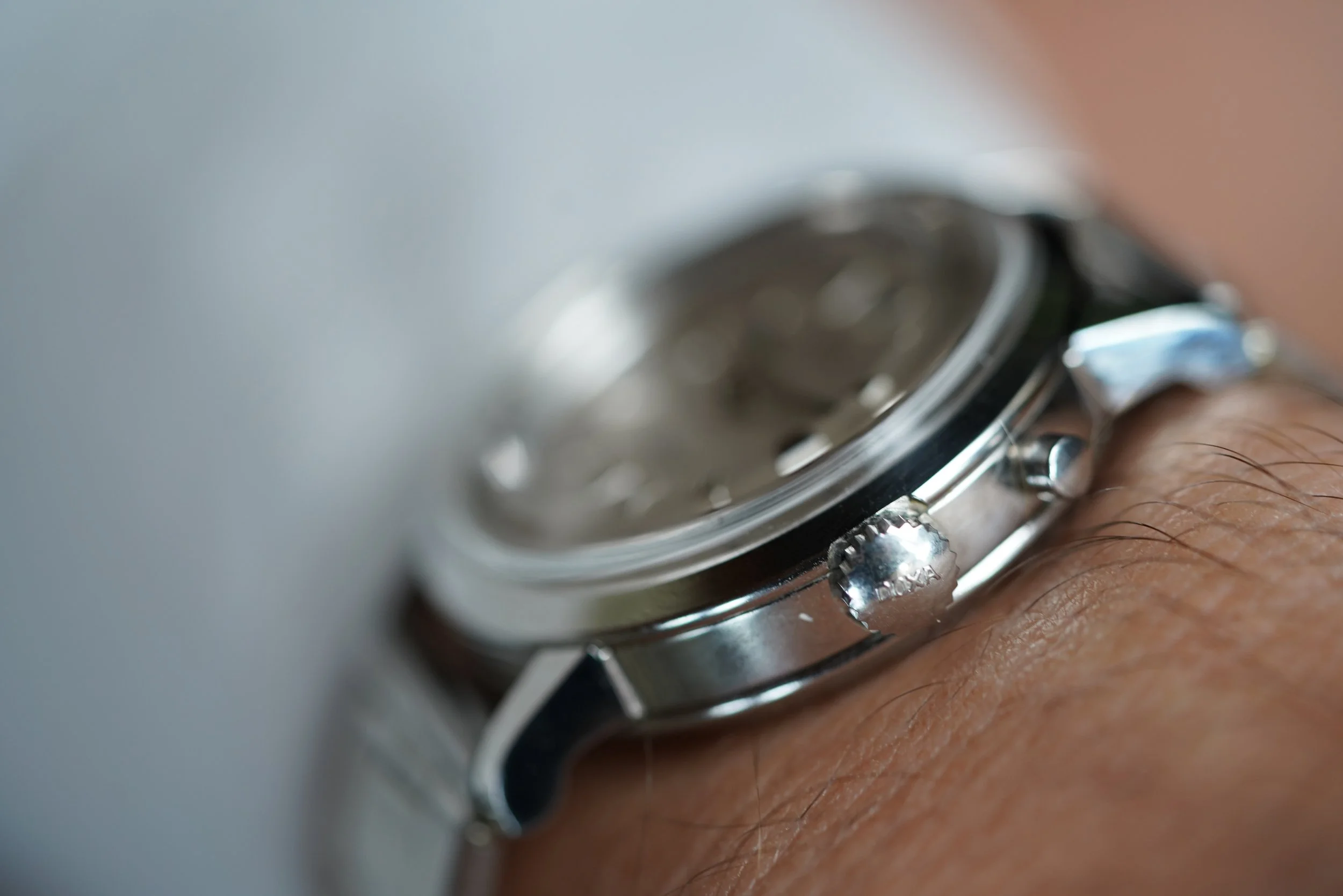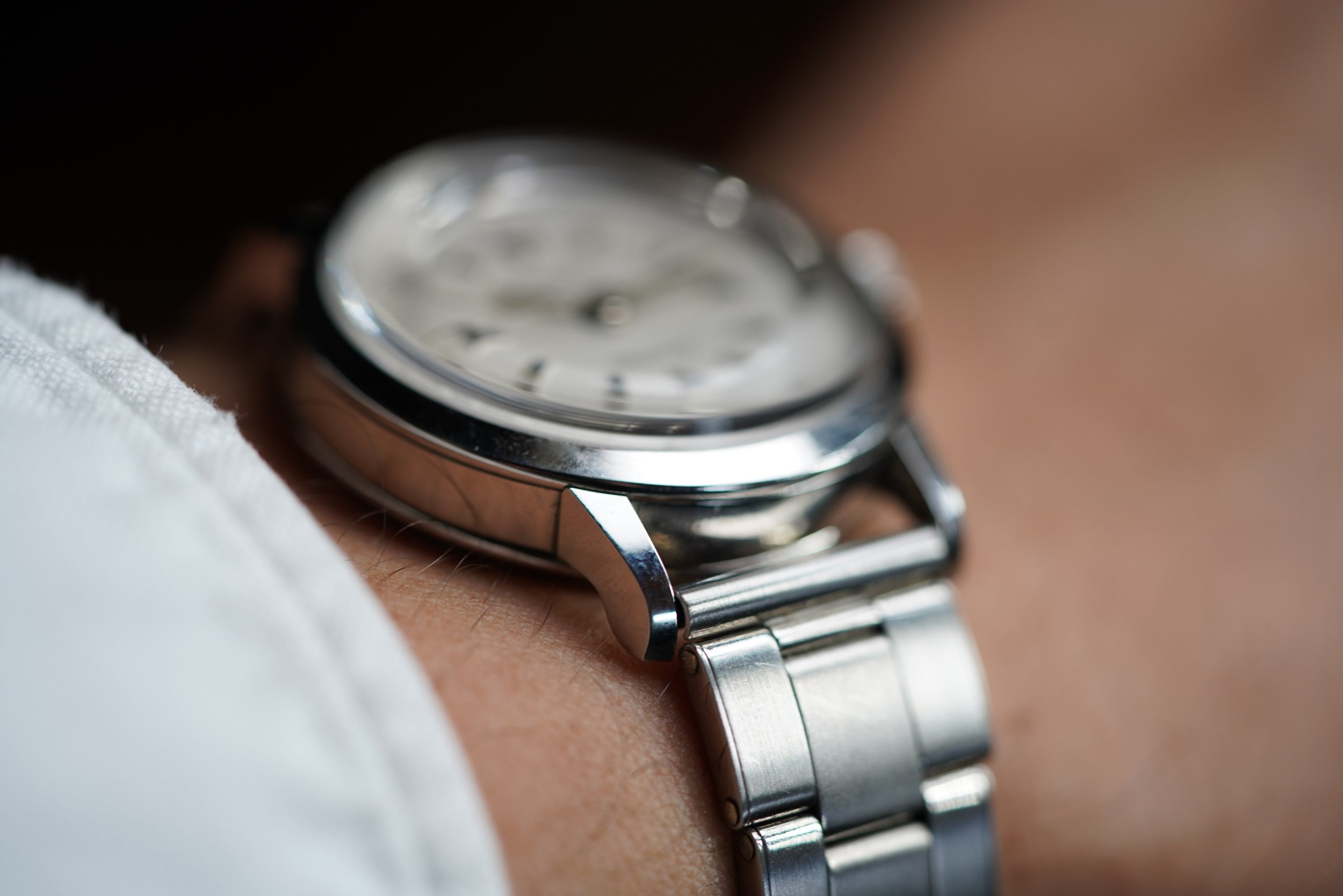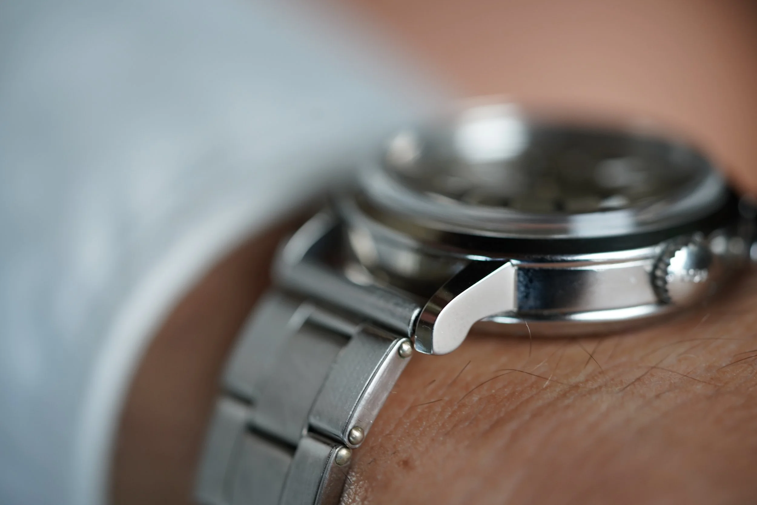 It is paired on a vintage steel rivet bracelet that was made in Japan and is a bit short and fits up to 6.75 inches. It also comes with a Doxa buckle that can be fitted to a strap. This is a super interesting and cool watch that is fun to share!