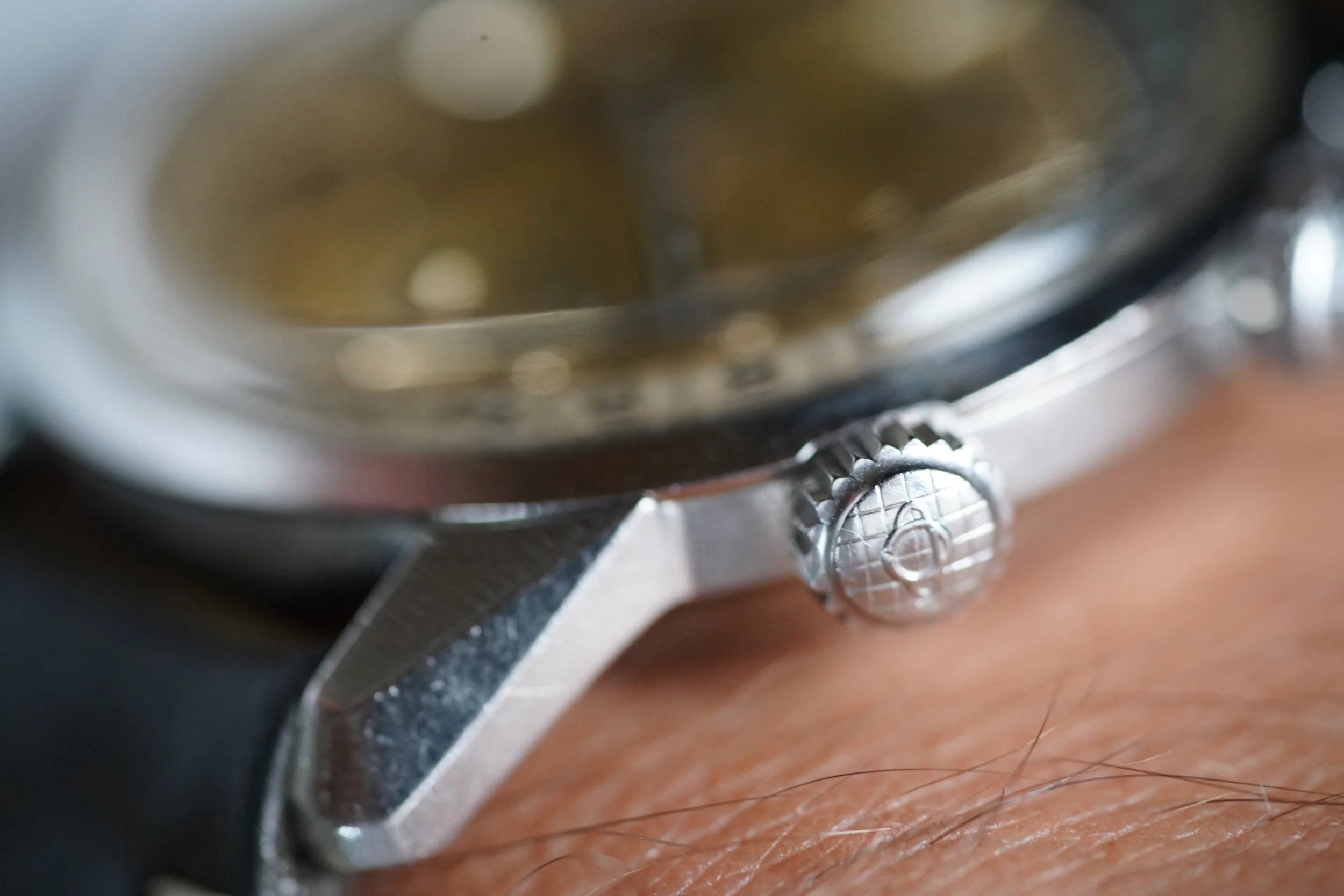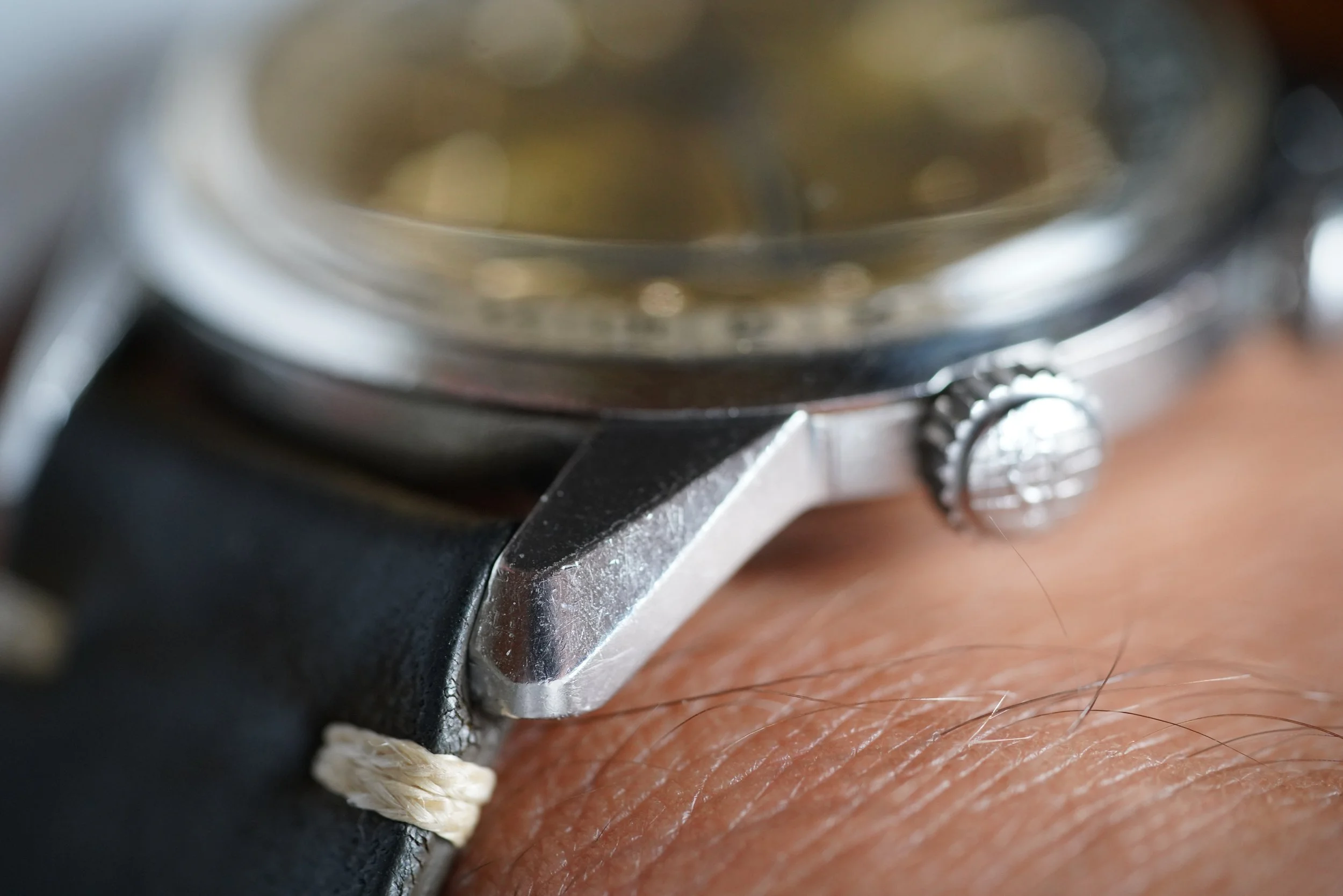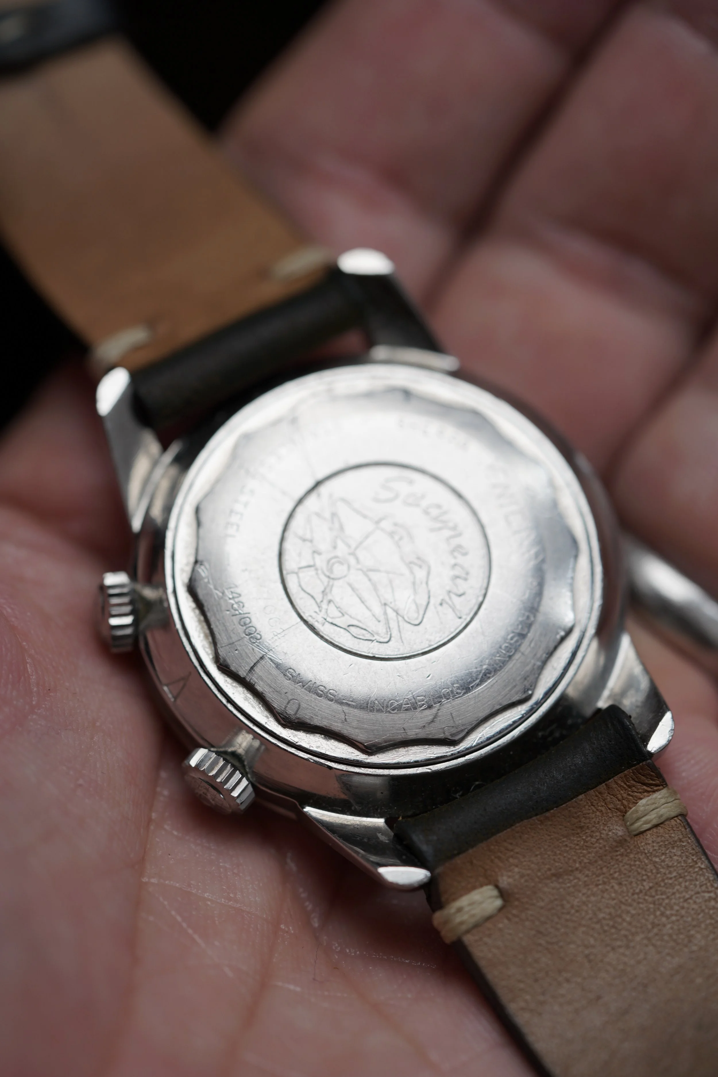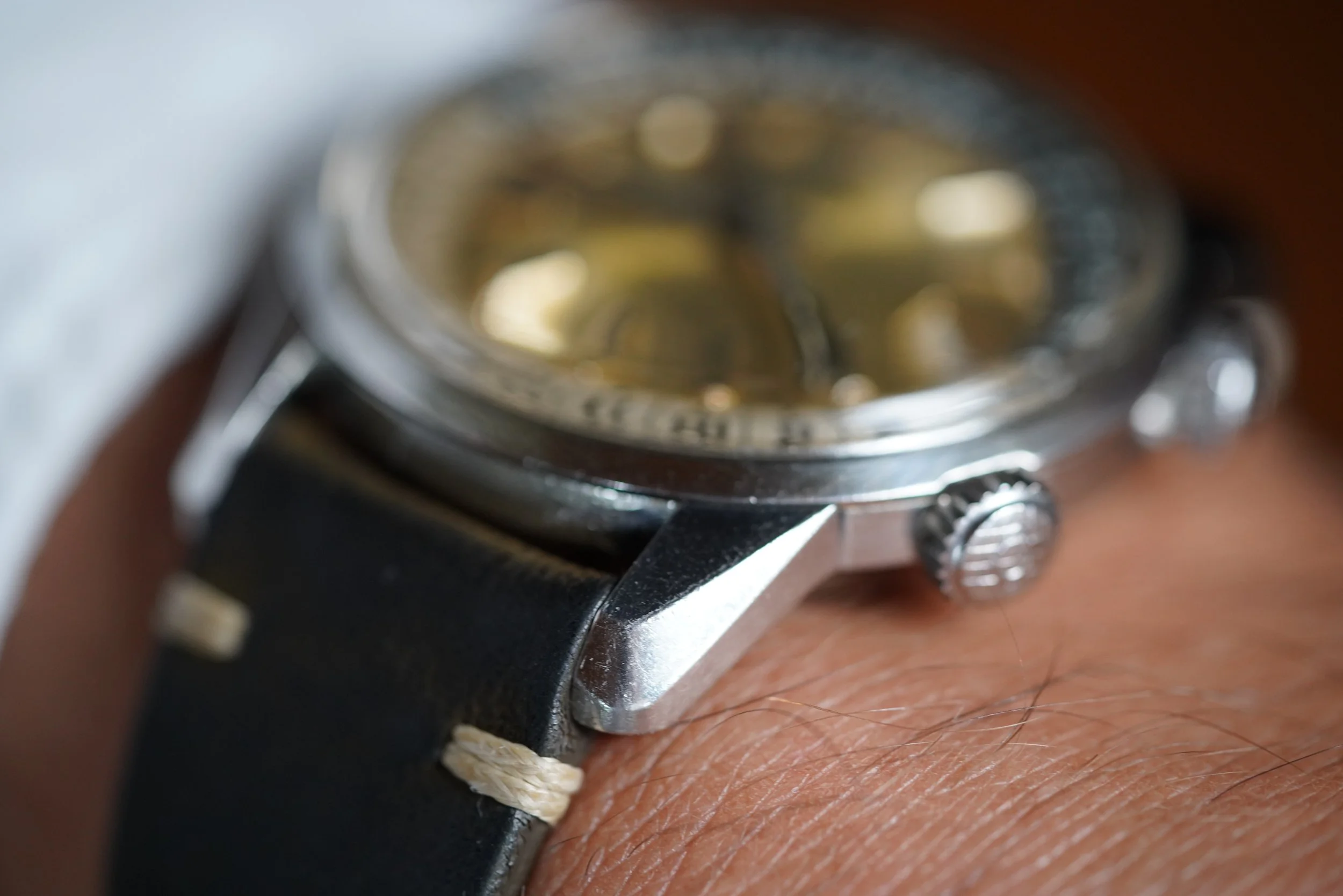 The Enicar Sherpa Super Jet models are extremely cool and uncommon watches. This example is in very fun with a silvery champagne dial. The case made by E. Piquerez SA (also called EPSA). Enicar was way ahead of other companies with the large dimensions. The case appears to be unpolished and is approximately 40mm in diameter.