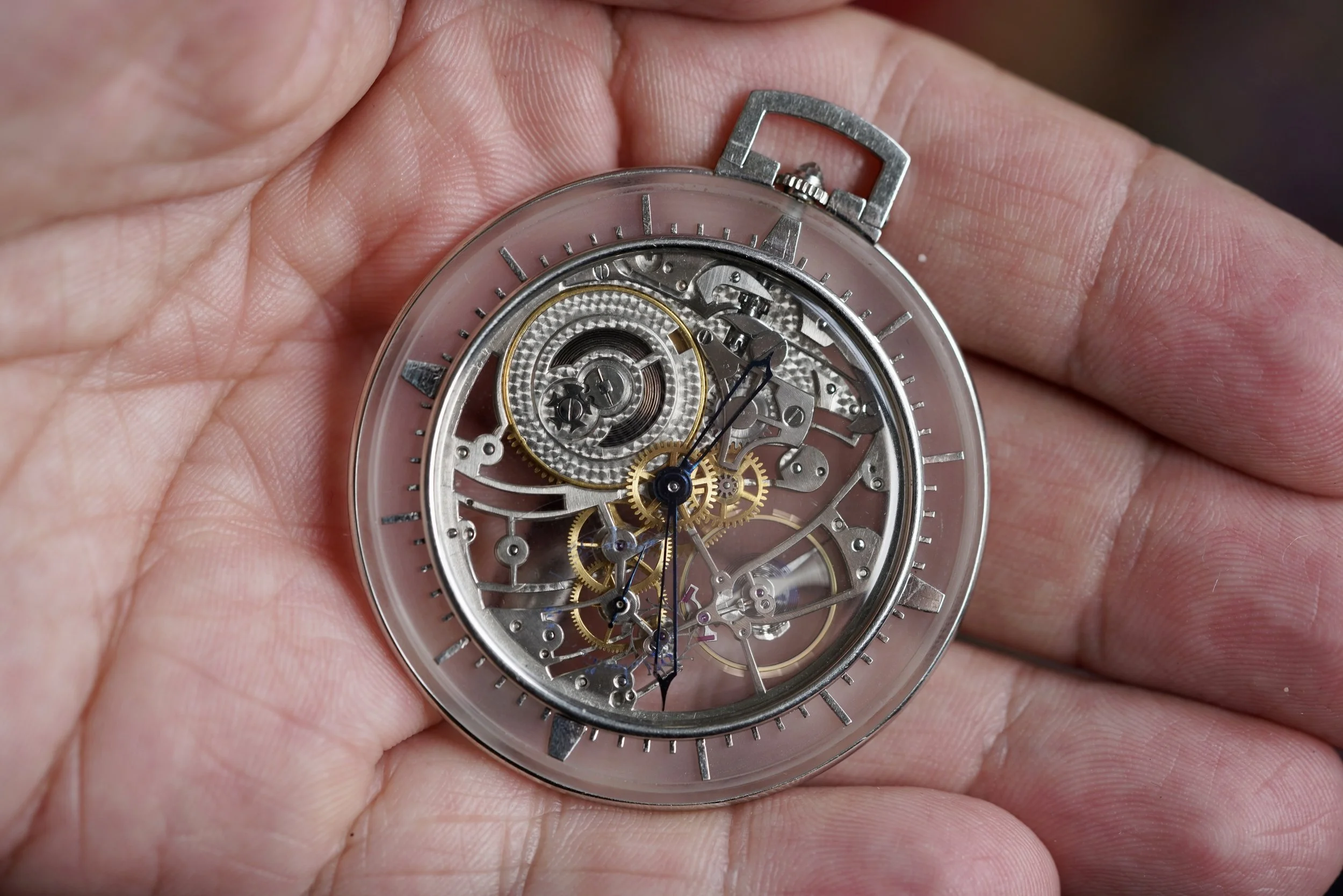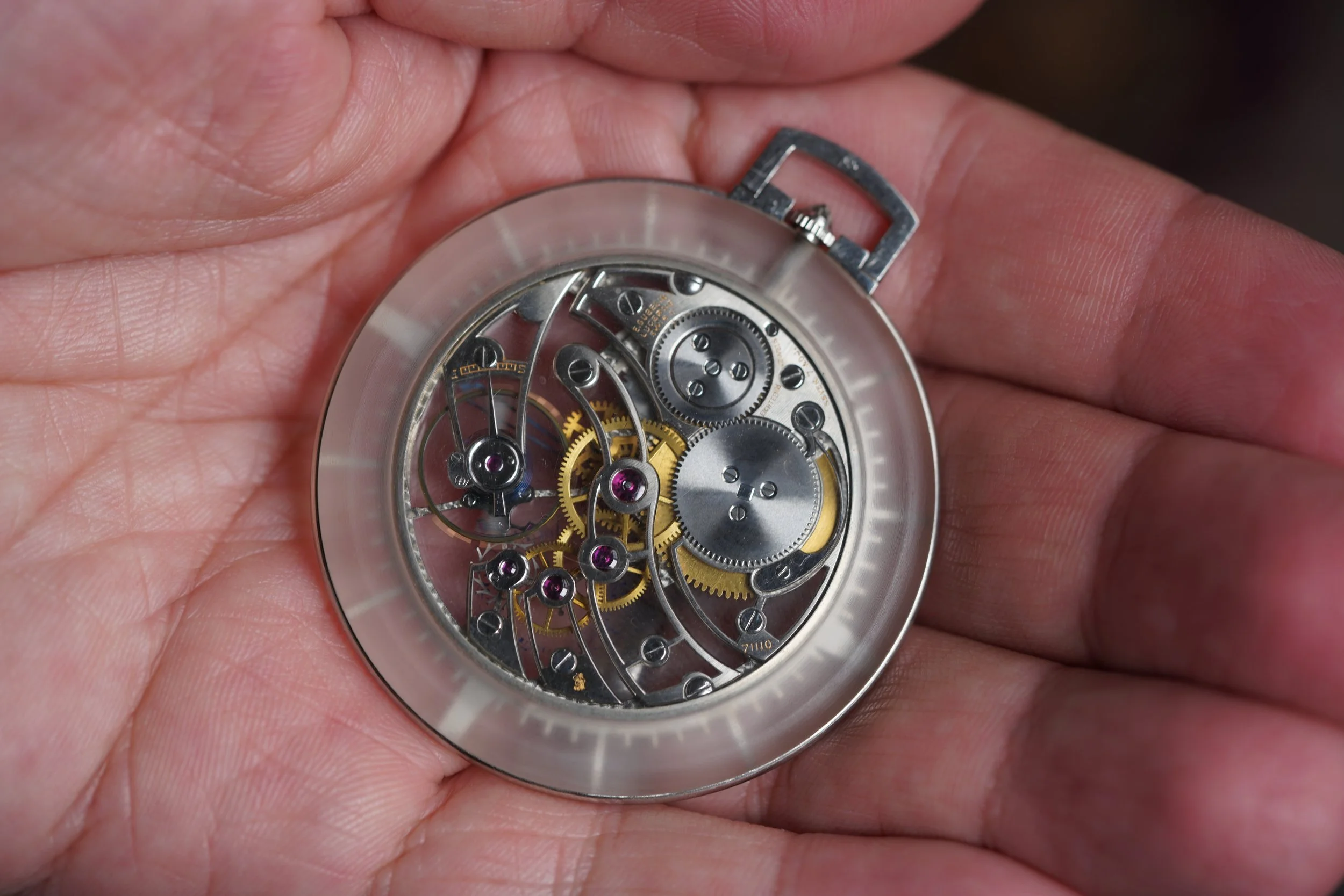 Gübelin Platinum and Rock Crystal Skeleton Pocket Watch