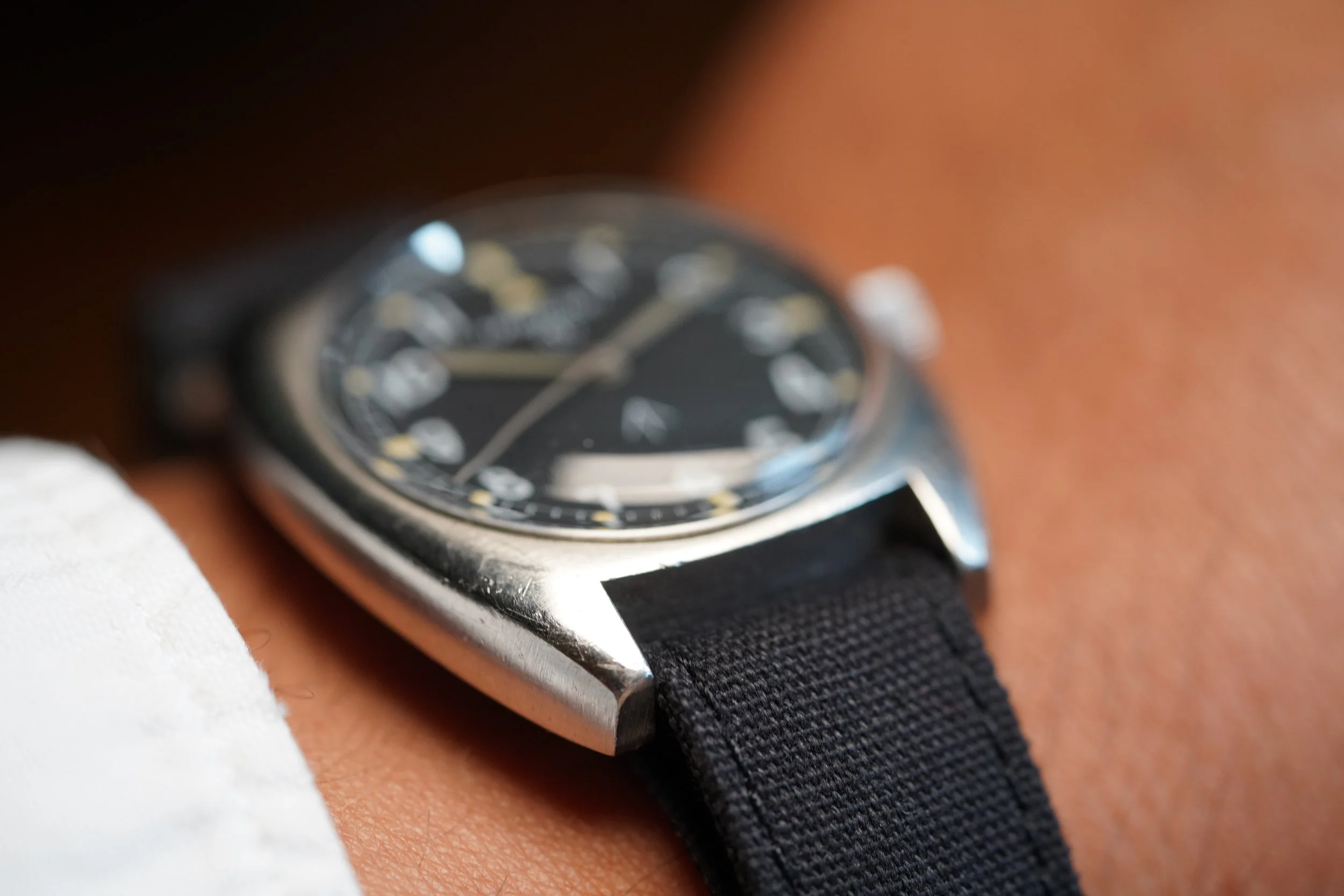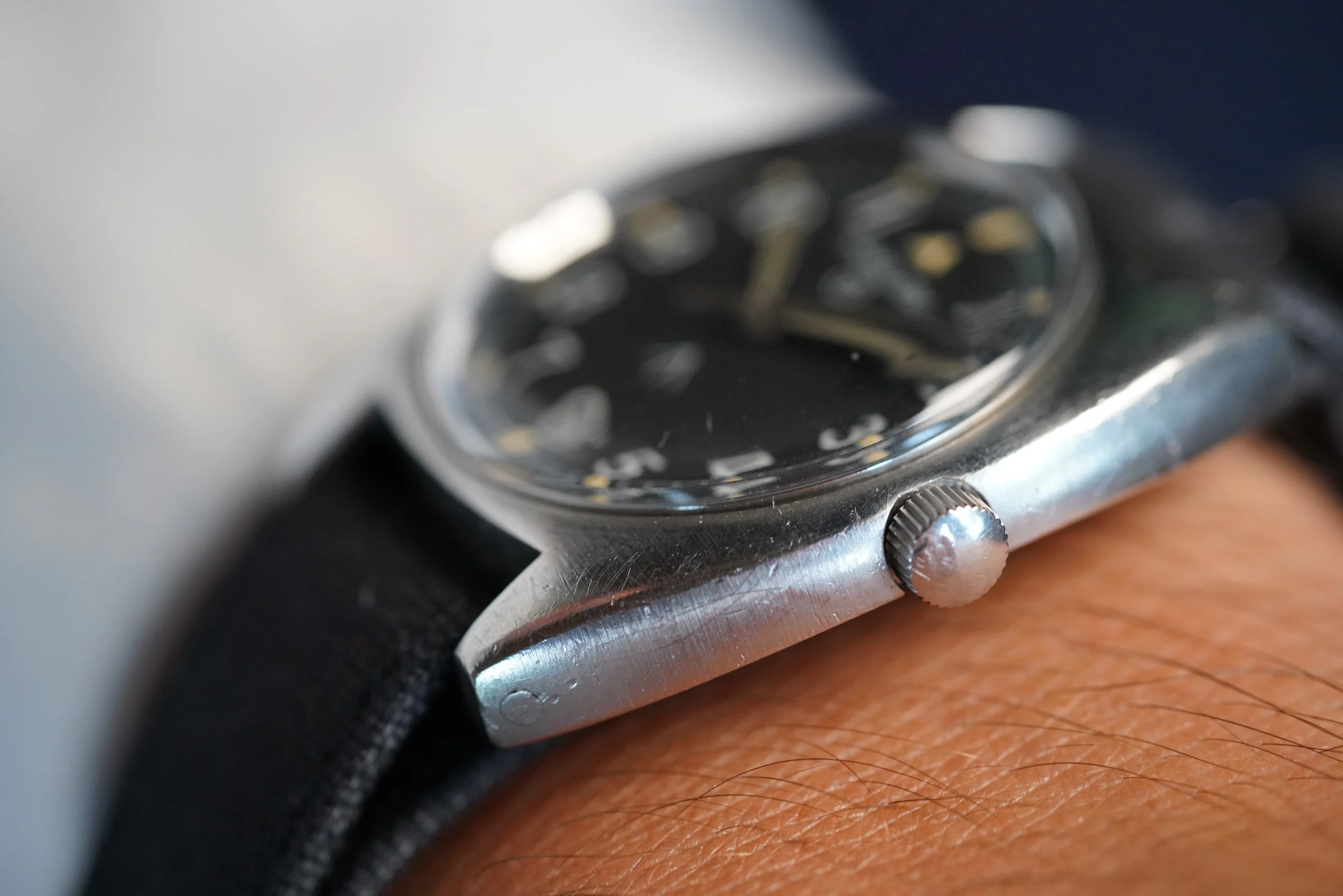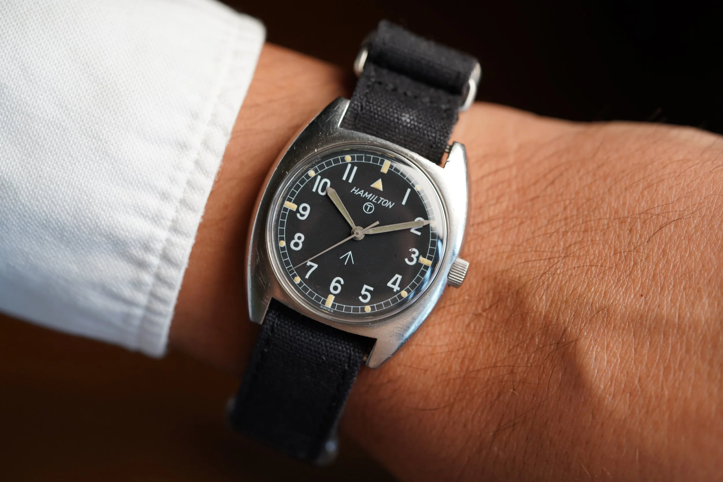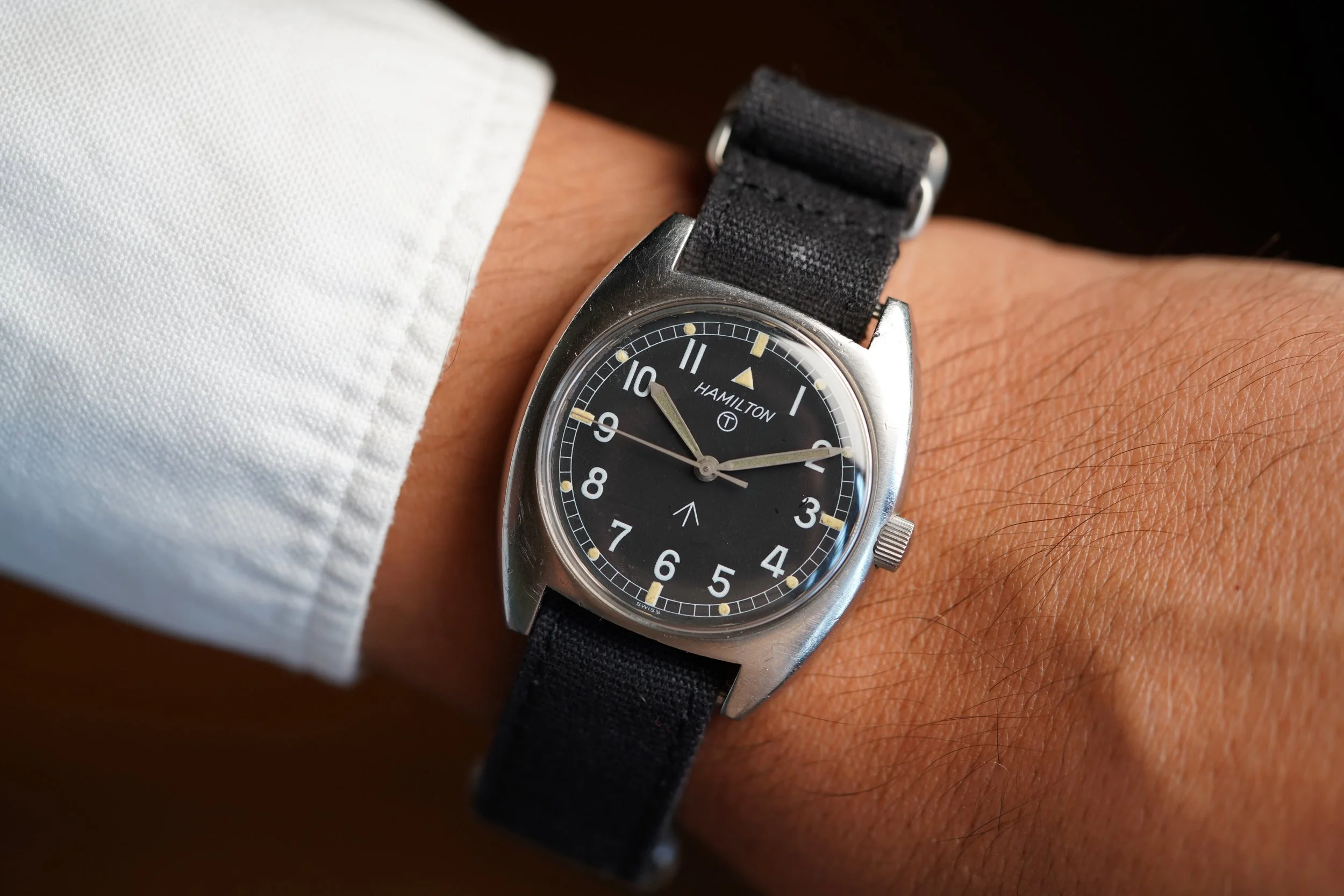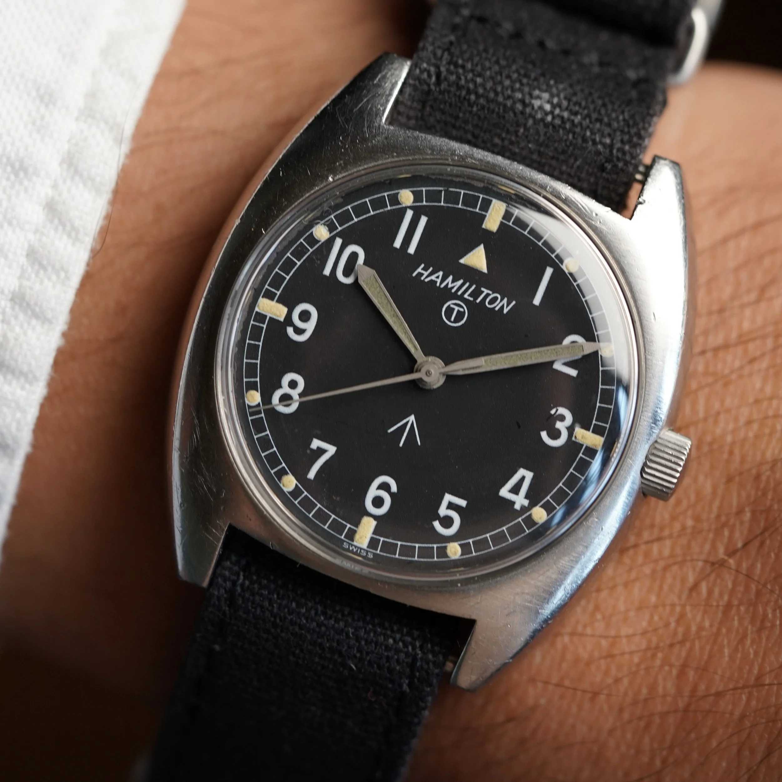 This Hamilton W10-6645-99 is a very cool watch issued for the British Military in 1973. The case measures 36mm in diameter. It appears to be unpolished. In the event you are not ready to make a four-figure investment, this Hamilton is a great option!