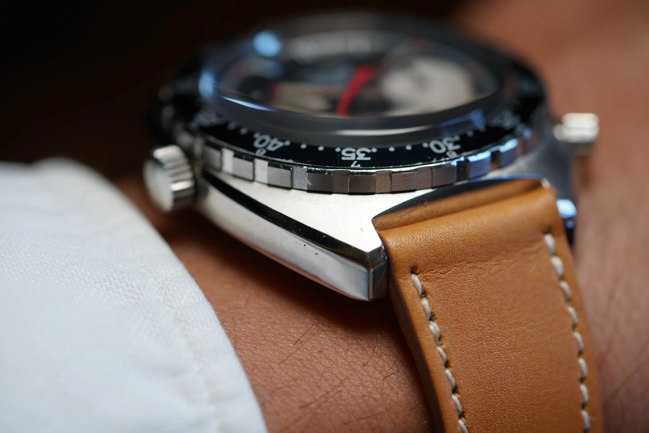 This Heuer Viceroy Autavia Reference 1163 is a very cool sports watch with the HM bezel. This is the non-Viceroy style - which features the tachymeter bezel. The case appears to be unpolished. The lume is very attractive. The watch is a robust automatic chronograph and a great value in vintage Heuer. It 204,XXX serial.
