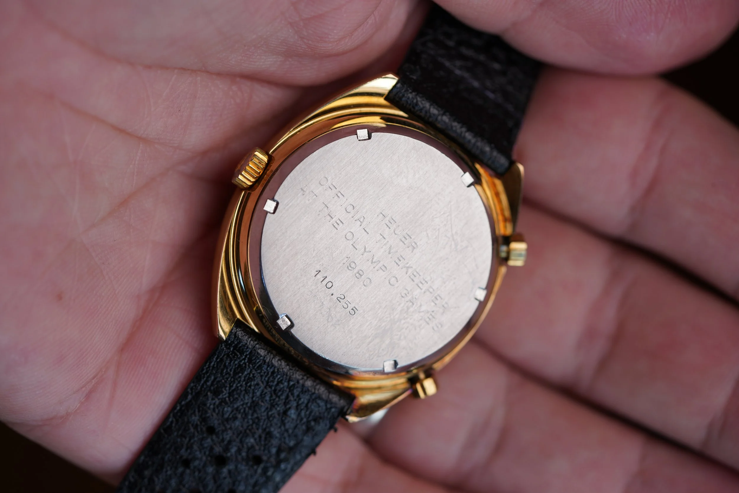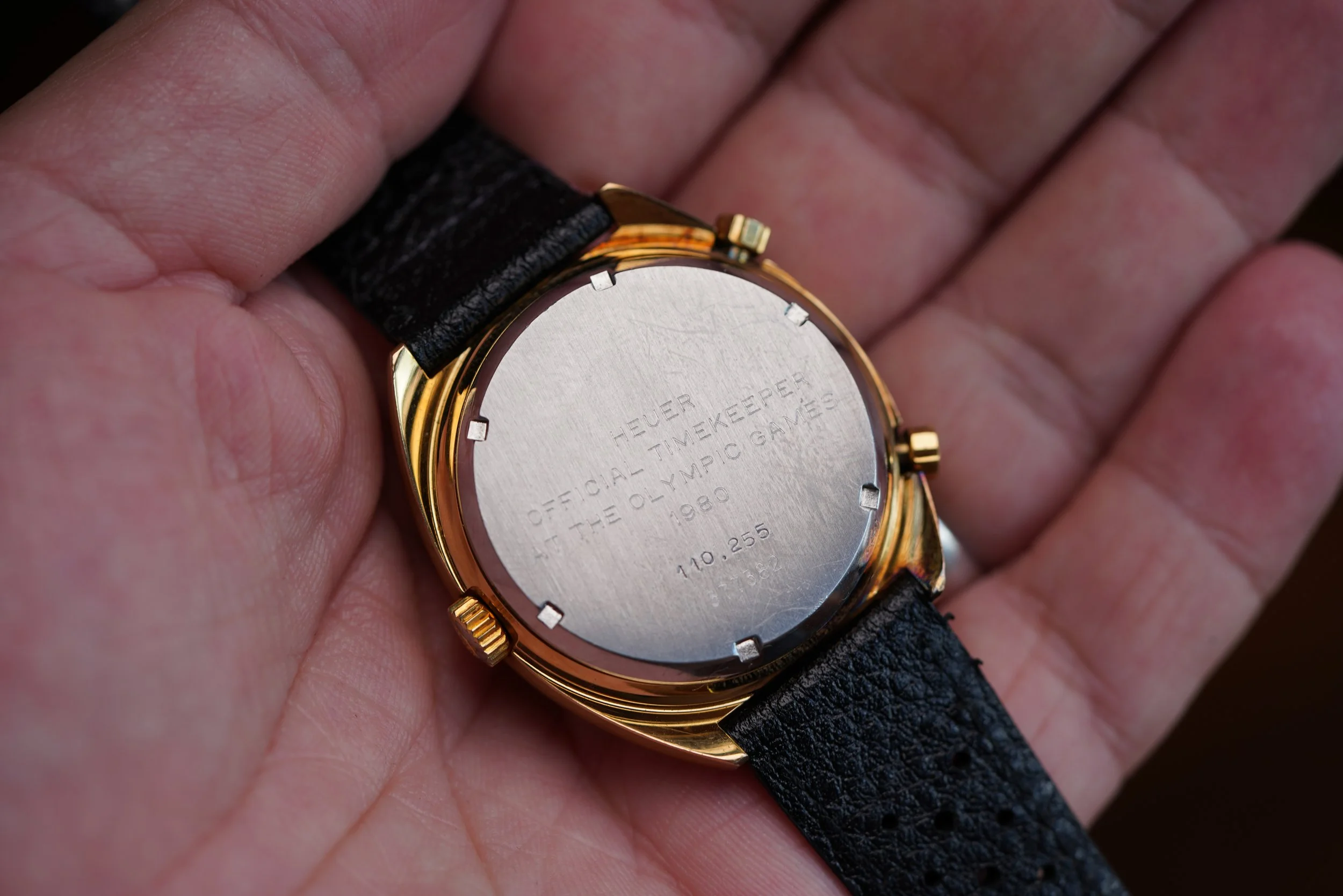 Heuer Carrera Ref. 110.255 “1980 Bahrain Olympic Team” Gold Plated w/ Ephemera Unpolished