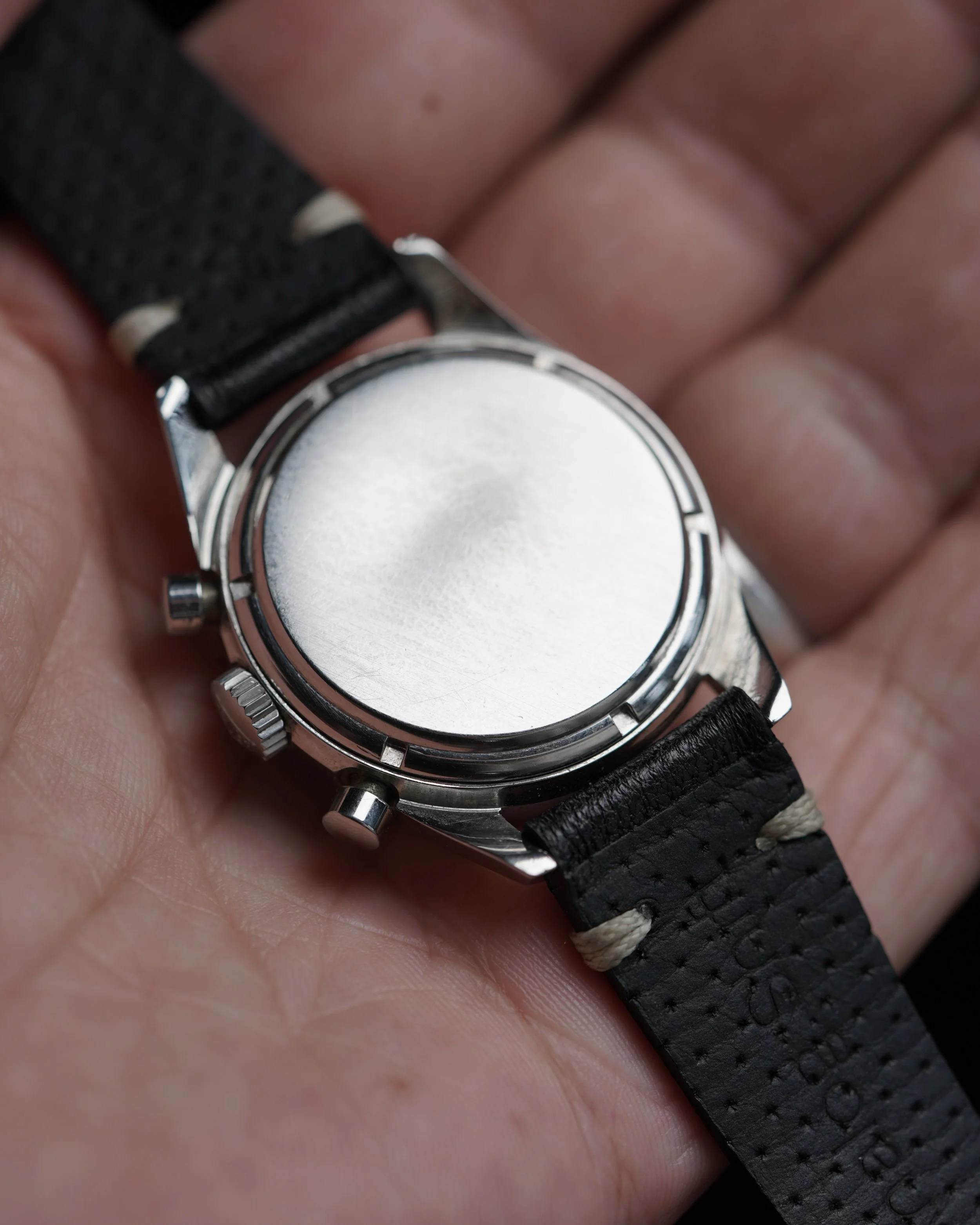 The only time better than now to buy a vintage Heuer was back in the 1960s! The Carrera is an iconic sports chronograph which is one of the most versatile watches to have in a collection. This is an attractive example with the black dial and unpolished case. It measures 36 millimeters in diameter and 45mm lug-to-lug. The watch is powered by the Valjoux manual-winding calibre 72. The case has been polished.