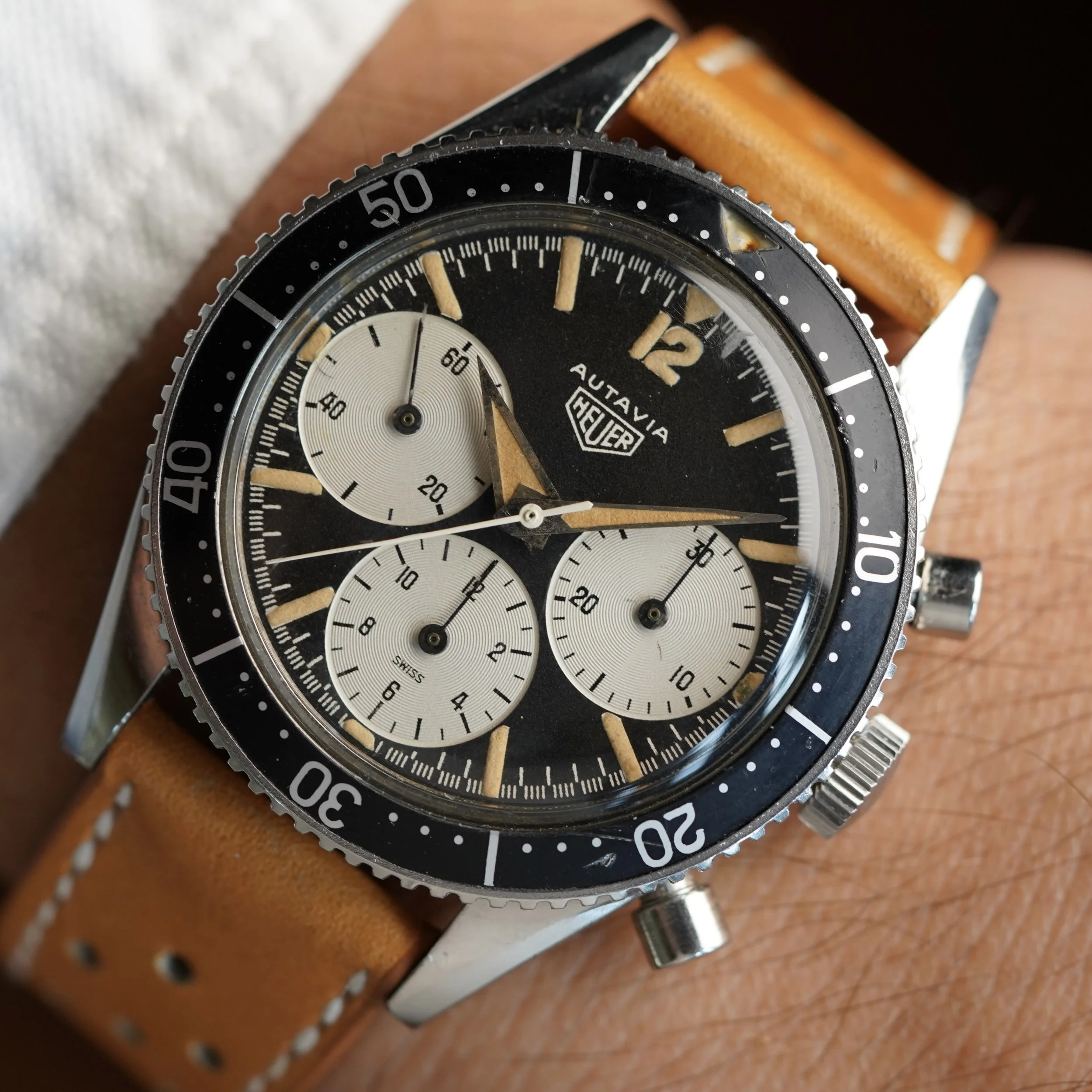 The Heuer Autavia is recognized by collectors as one of the great sports chronographs of the 1960s and arguably the greatest Autavia wristwatches ever made were the powerful first execution “Big Subs” models that defined the genre. They were introduced by Heuer in 1962 and continued with this design through 1963, before becoming slightly more refined and less brash examples with the second and third execution models that had smaller registers, and white gold hour markers more similar to the Heuer Carrera that was introduced in 1963 and the Rolex Daytona reference 6239 also introduced in 1963.