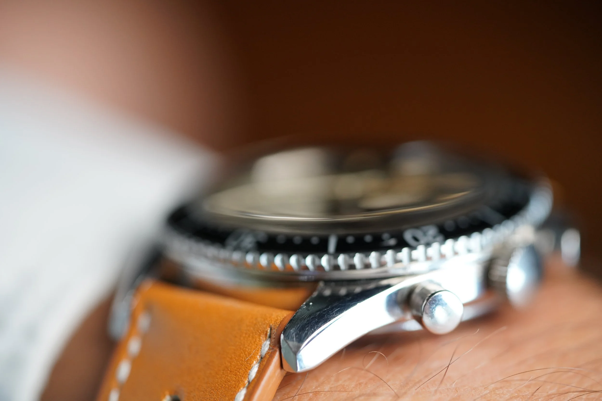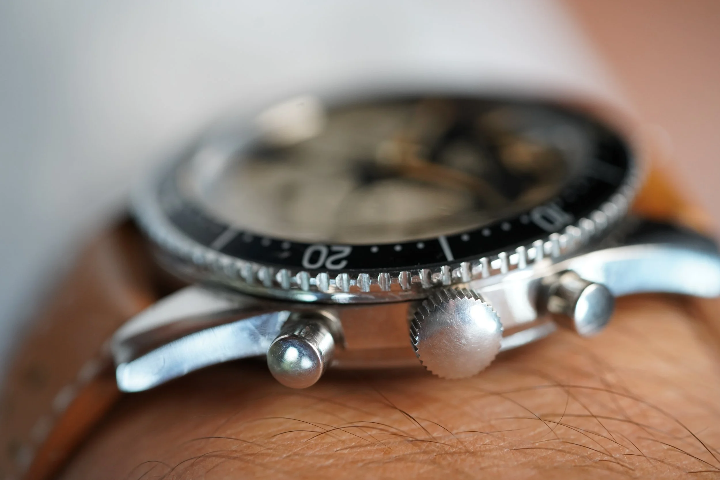 The case appears to be unpolished. The watch features a 52,XXX serial, making it among the last run of Autavias made. The hour and minute hand are color matched, which is likely due to lume cracking and loss (and is common for these models). I believe these are the original second execution hands to the watch and they are certainly correct for the serial range.