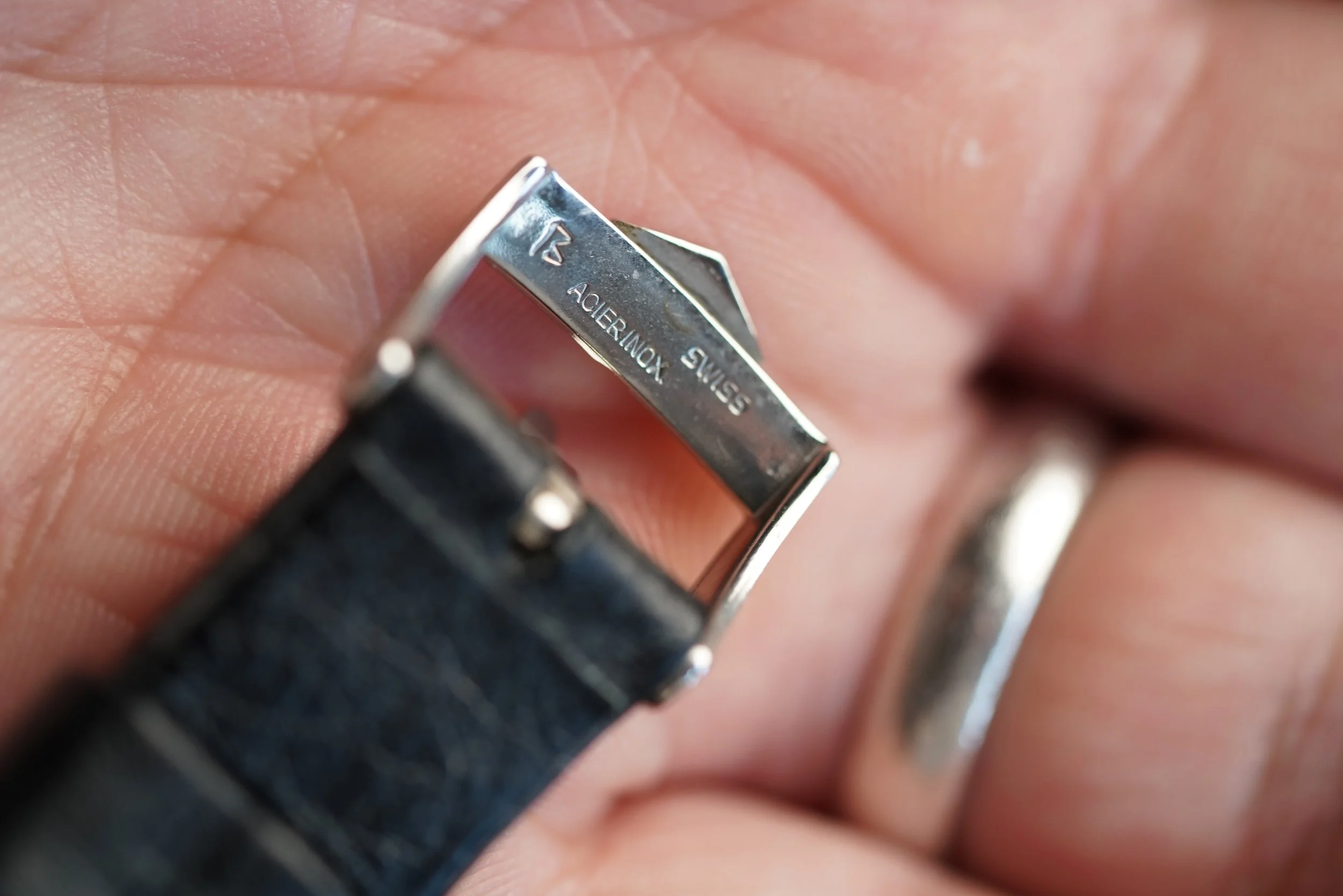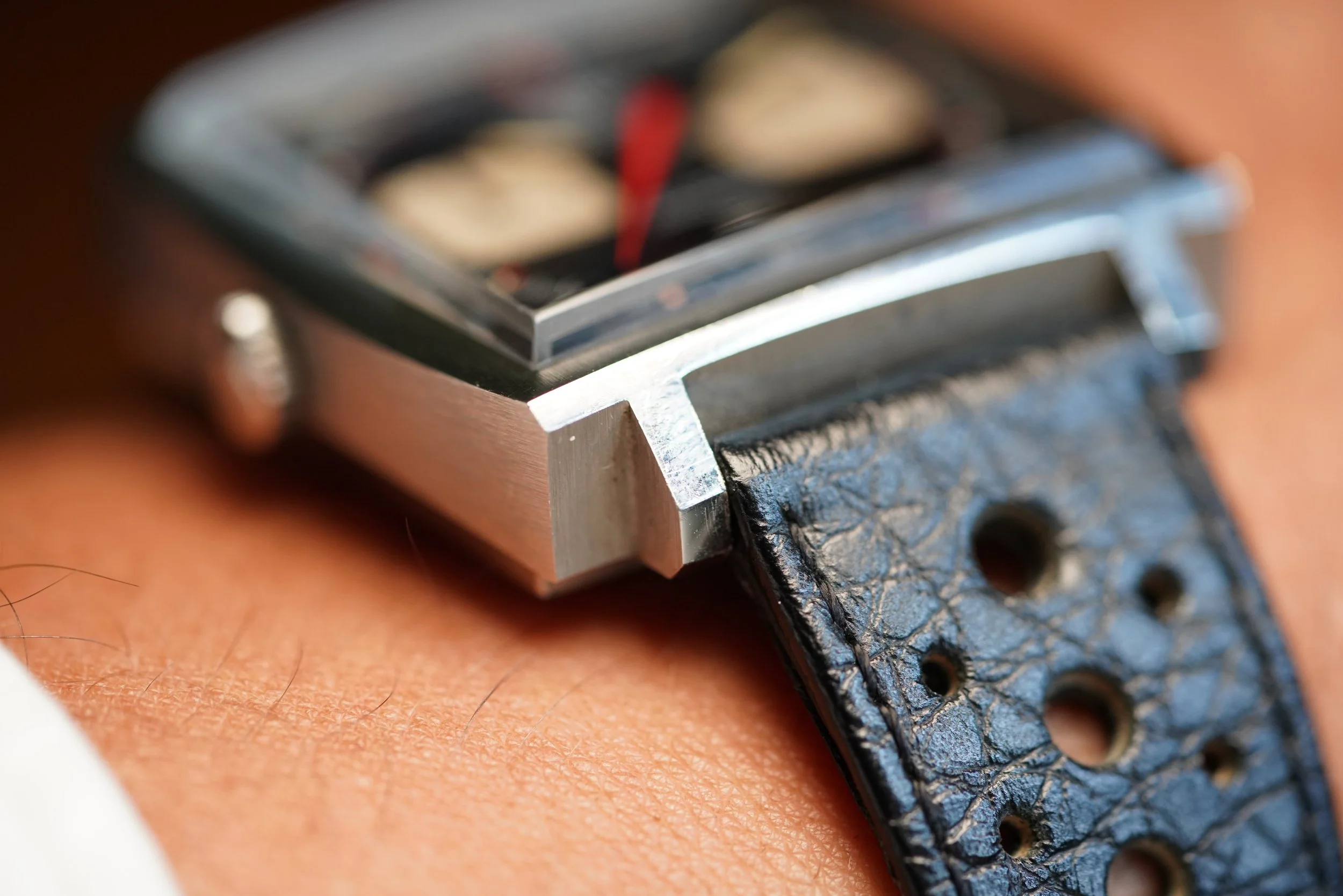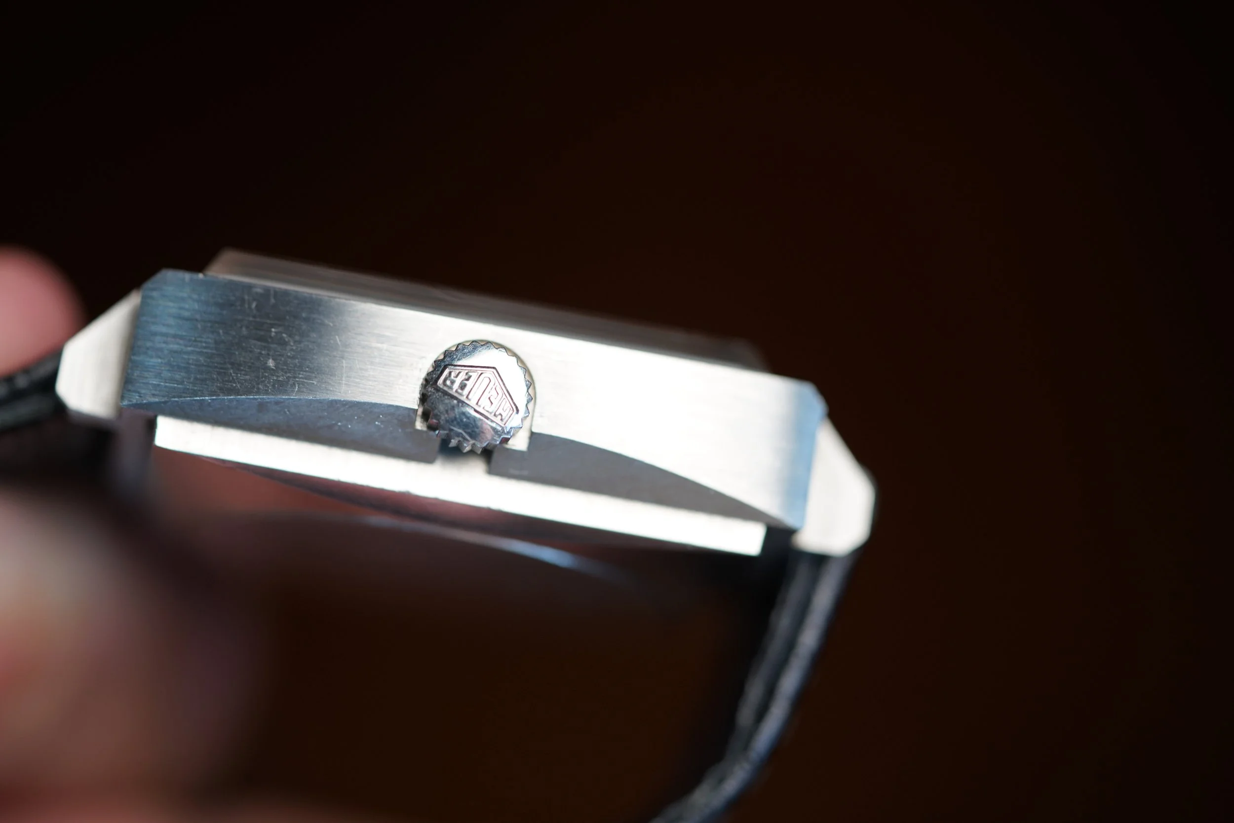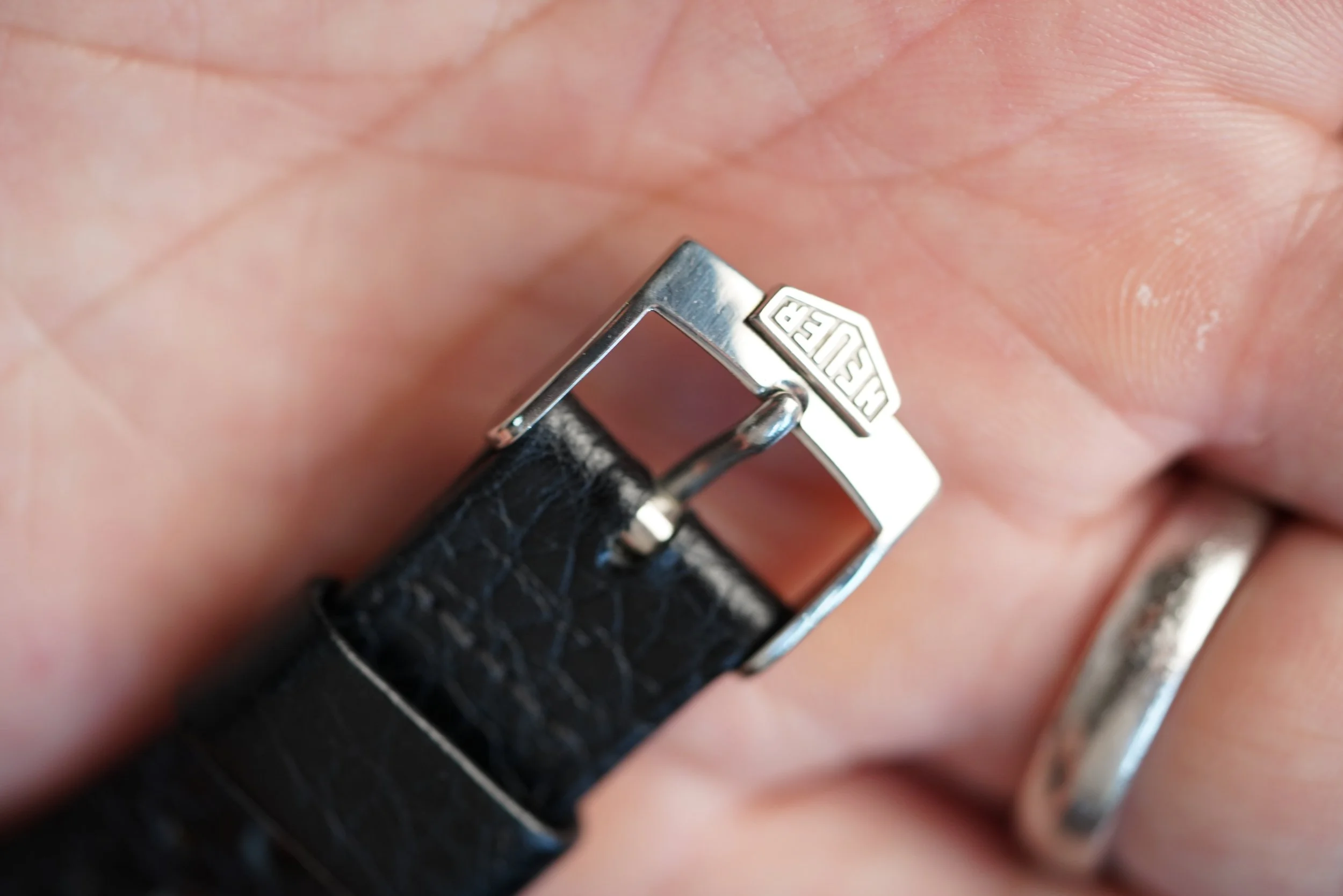The Heuer Monaco was introduced in 1969 with the first automatic chronograph movement, the calibre 11. Coupled by the association of Steve McQueen’s decision to wear the watch in the film ‘Le Mans’, the watch is nothing short of iconic. This example is in great condition. It features a stunning blue dial. The watch comes with an additional stainless steel Heuer Bracelet. It is paired with a black rally strap and a stainless steel Heuer Buckle. The case appears to be unpolished.