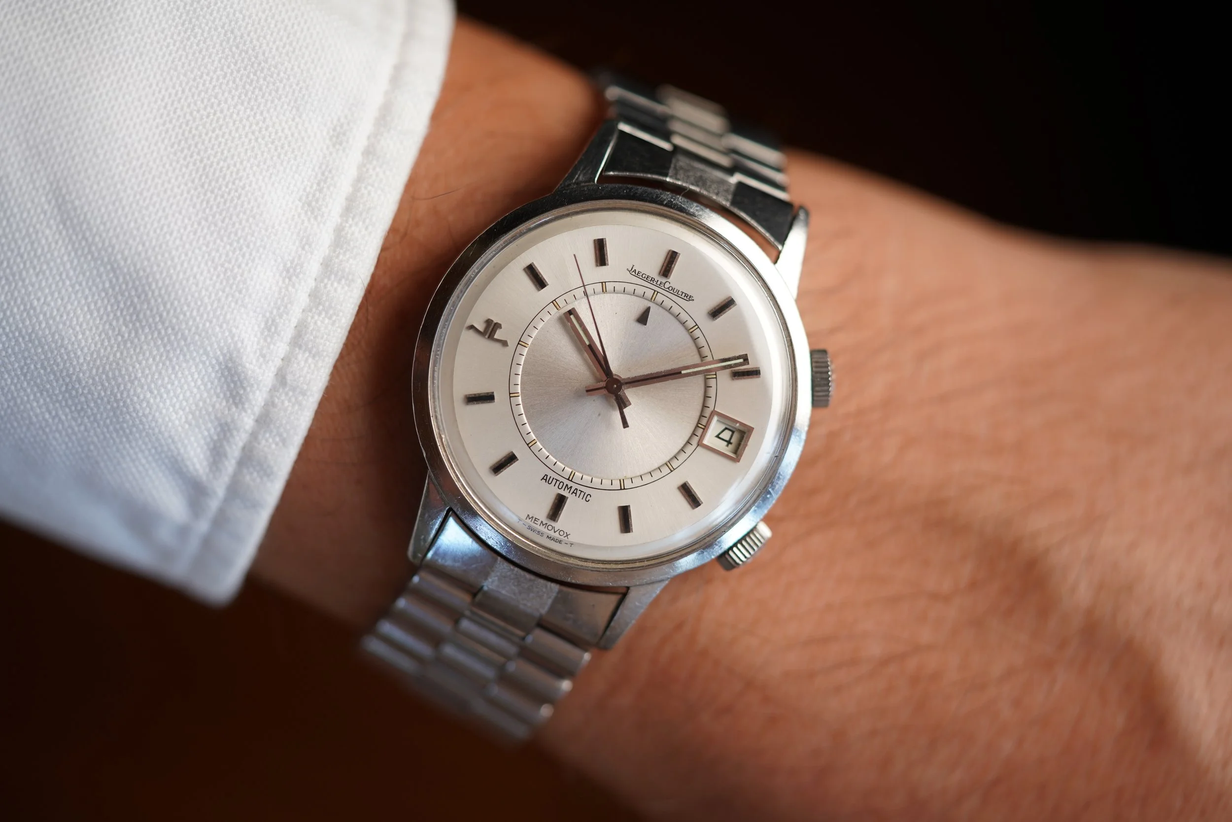 The Jaeger-LeCoultre Memovox reference E 875 is one of my favorite Memovox references. The cases are really great with fantastic proportions at 37mm in diameter (or 45.5mm lug-to-lug). It features a high-beat calibre 916. For those with an appreciation for alarm watches and Jaeger-LeCoultre this is a phenomenal option.