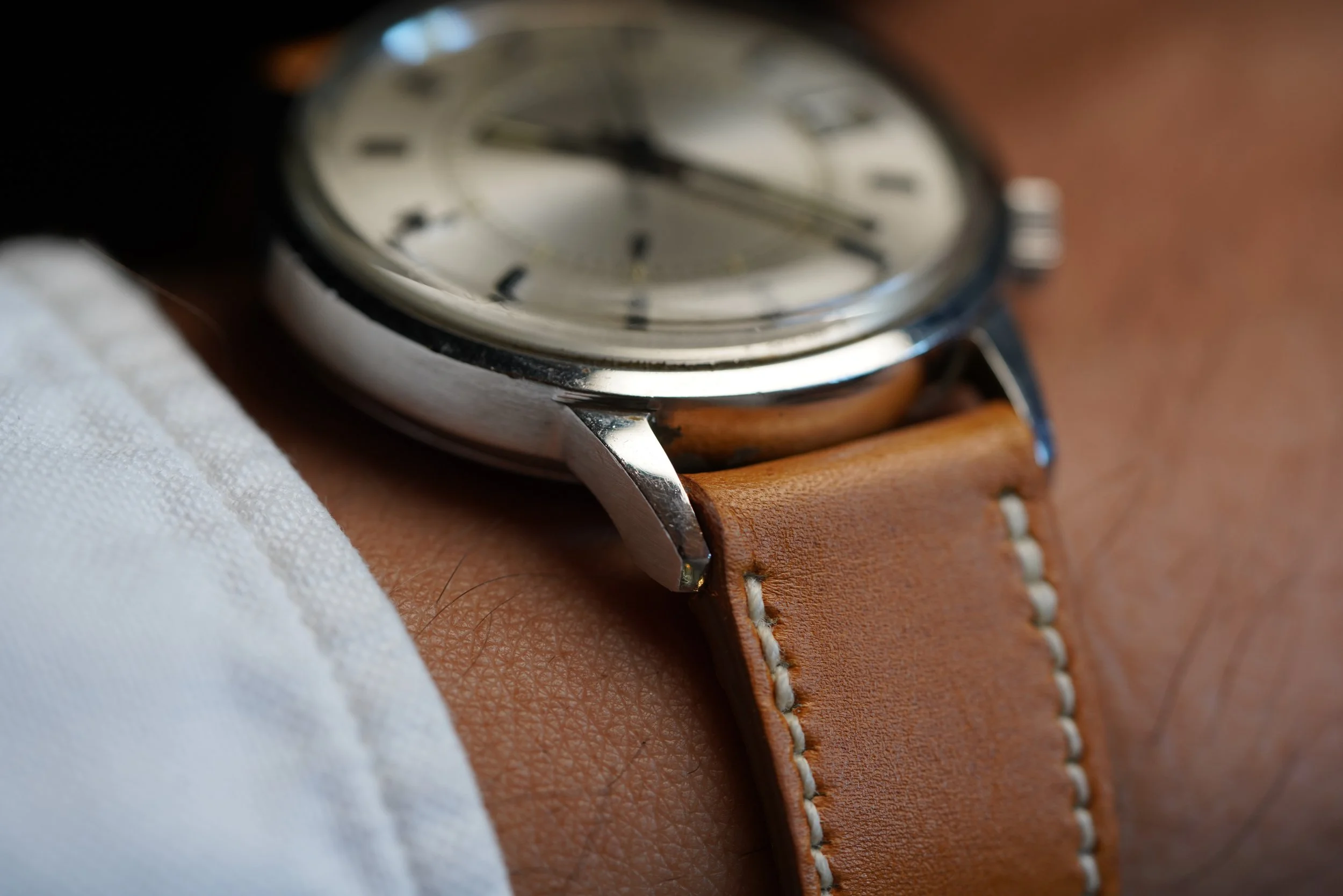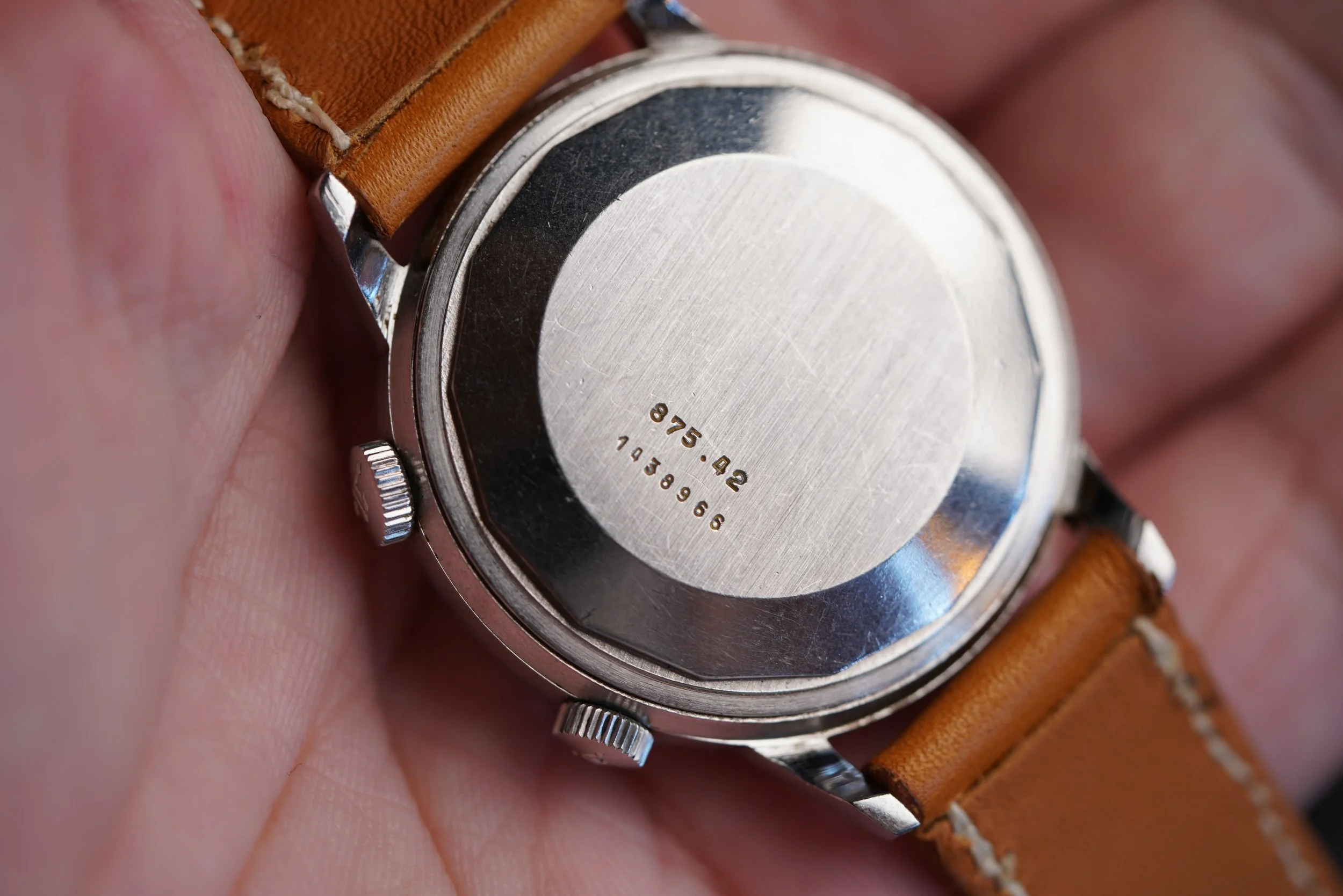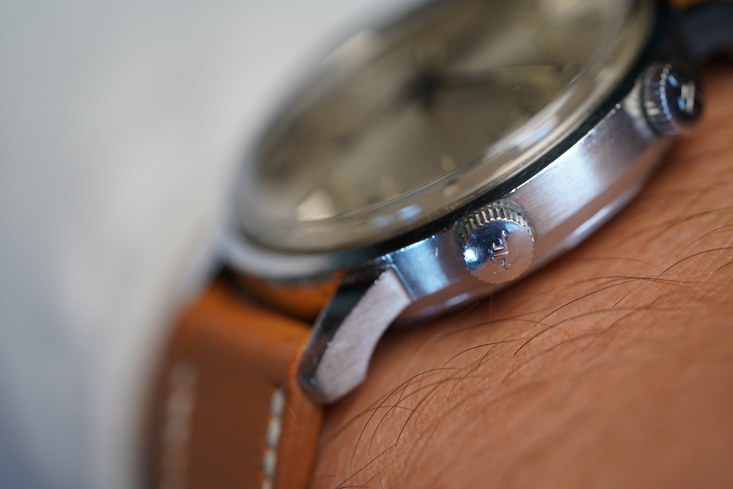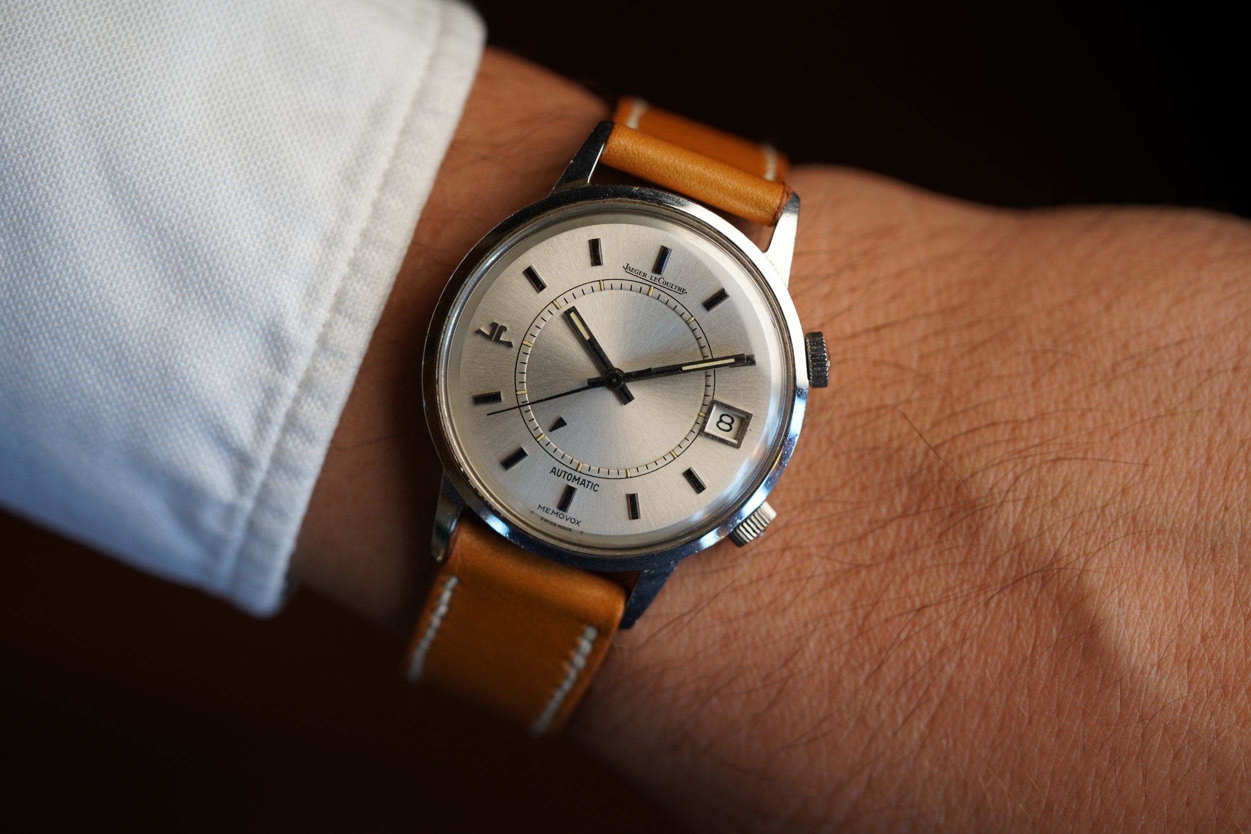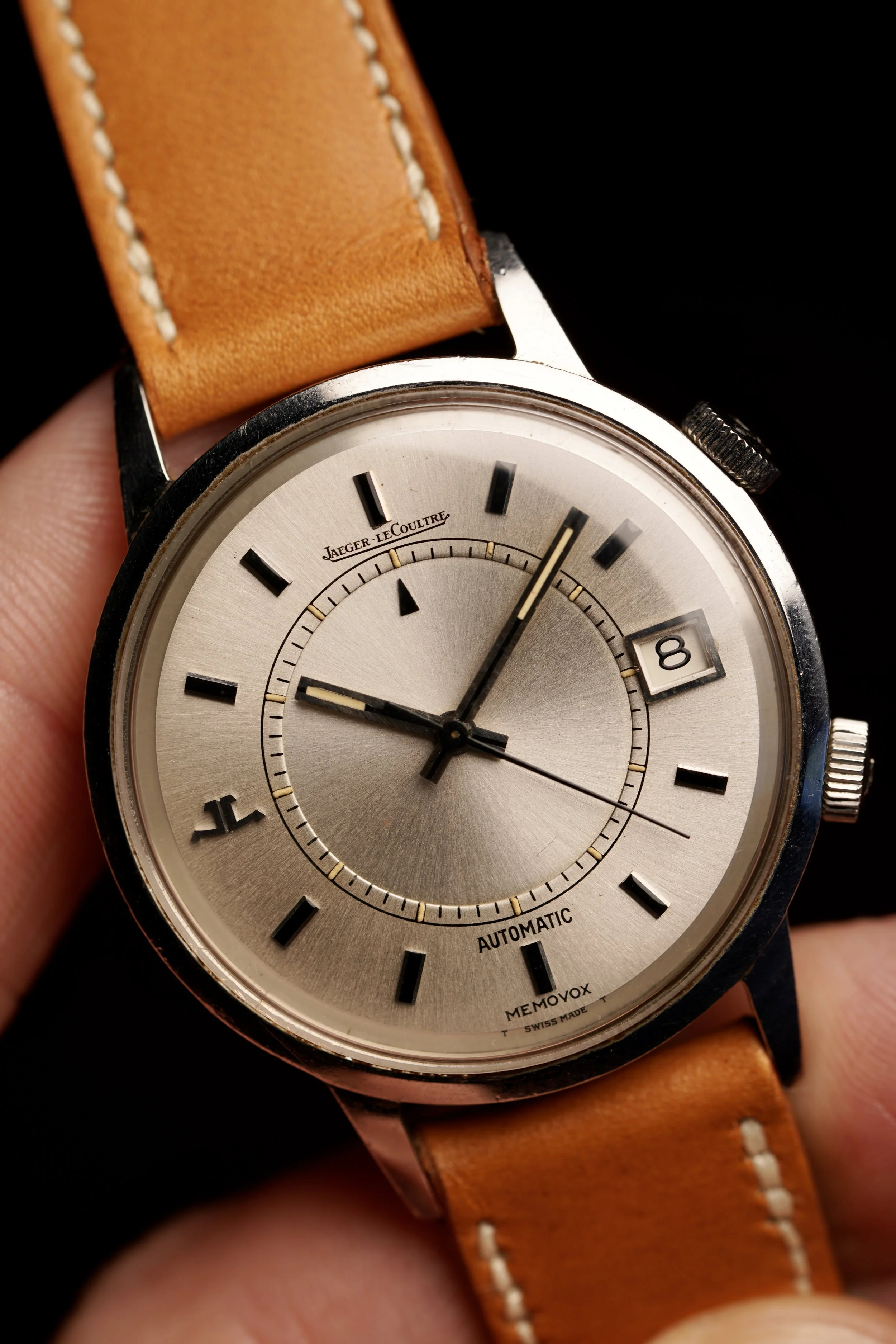 The Jaeger-LeCoultre Memovox reference E 875 is one of my favorite Memovox references. The cases are really great with fantastic proportions at 37mm in diameter (or 45.5mm lug-to-lug). This particular example has a beautiful unpolished case. It features a high-beat calibre 916. For those with an appreciation for alarm watches and Jaeger-LeCoultre this is a phenomenal option.