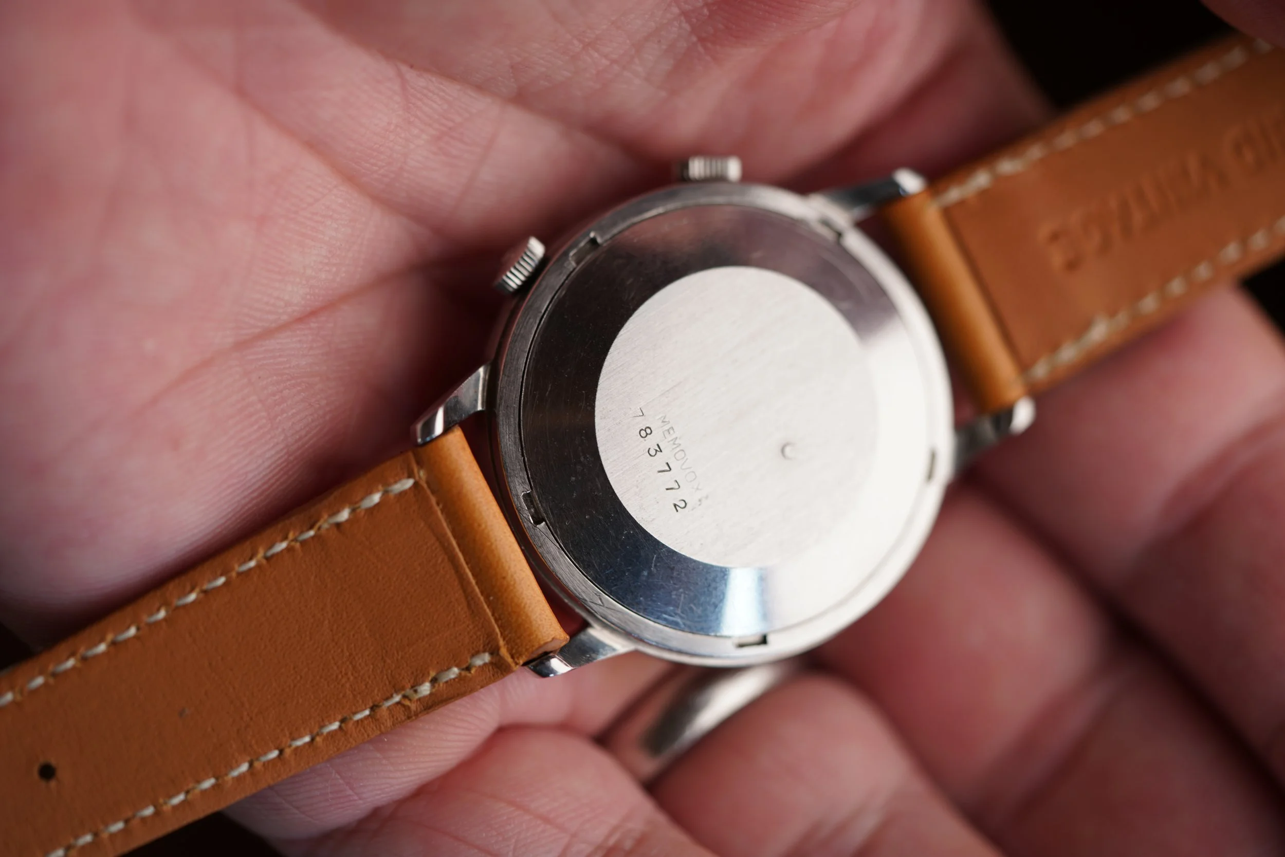 Along with the Atmos clock and Reversos, Jaeger-LeCoultre’s advancements in alarm timepieces throughout the 20th century are certainly one of the most iconic genres from the Le Sentier manufacturer. Perhaps the quintessential Memovox is the reference E 855 from the 1960s. The reference’s “E” stands for Etanche, which indicates the case is a water-resistant model.