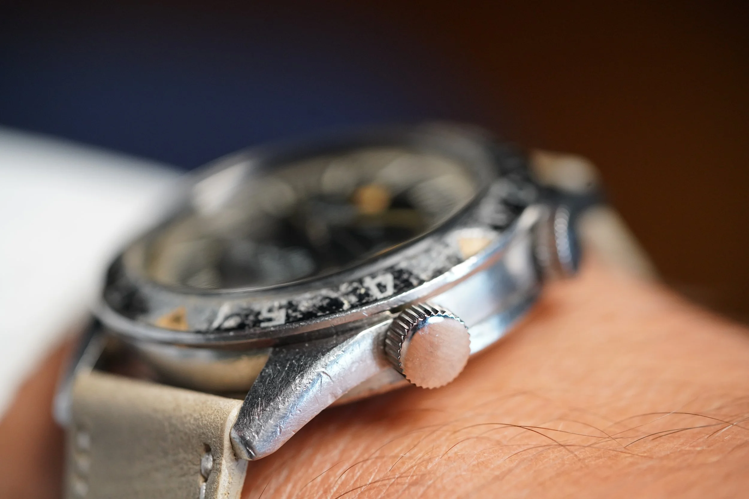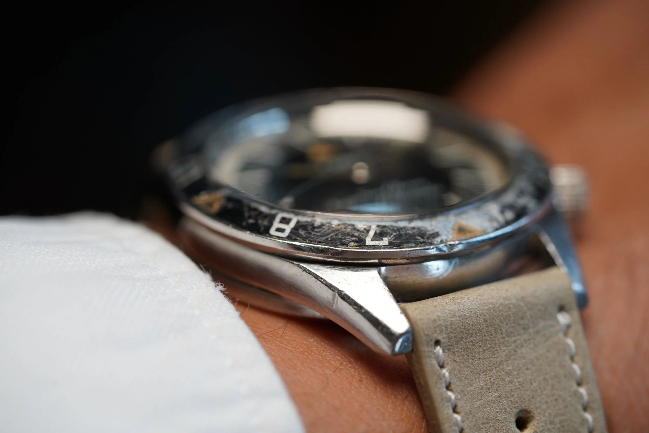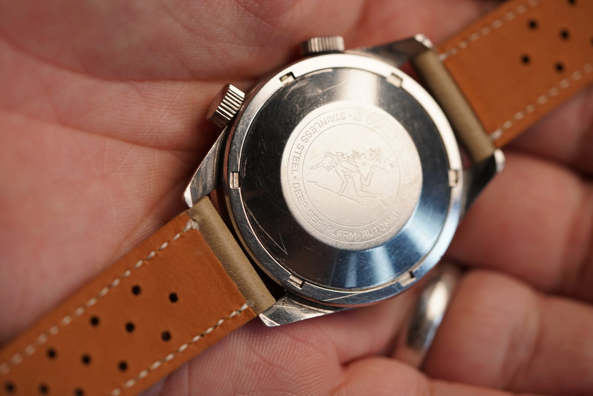The LeCoultre Deep Sea Alarm Automatic reference E 857 is one of the most exciting vintage dive watches. These cases were made by Huguenin Frères and powered by the automatic alarm Jaeger-LeCoultre calibre 815.