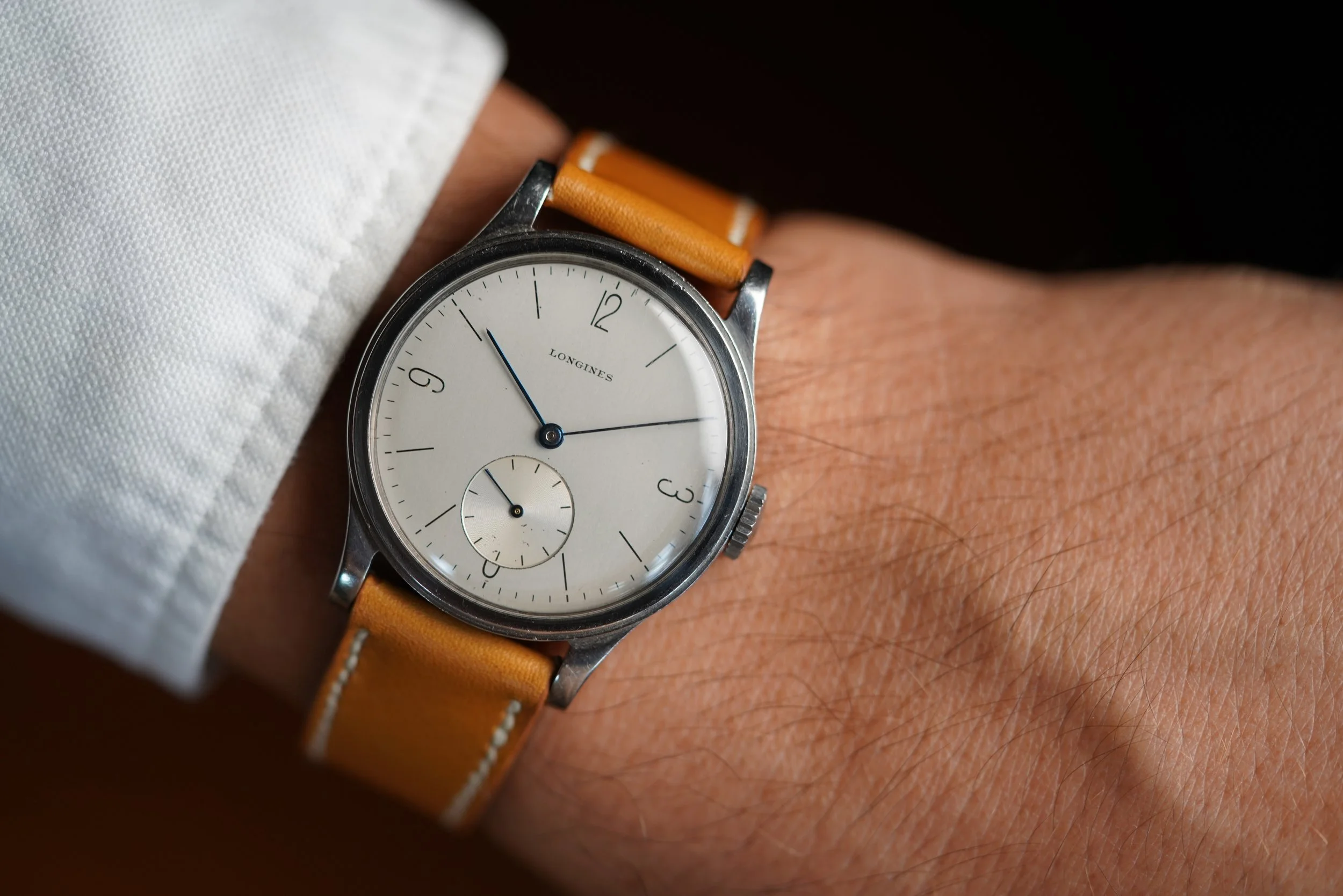 The dial is similar to a Longines previously owned by Ben Clymer that sold for $6,300 at Christie’s in December 2024.